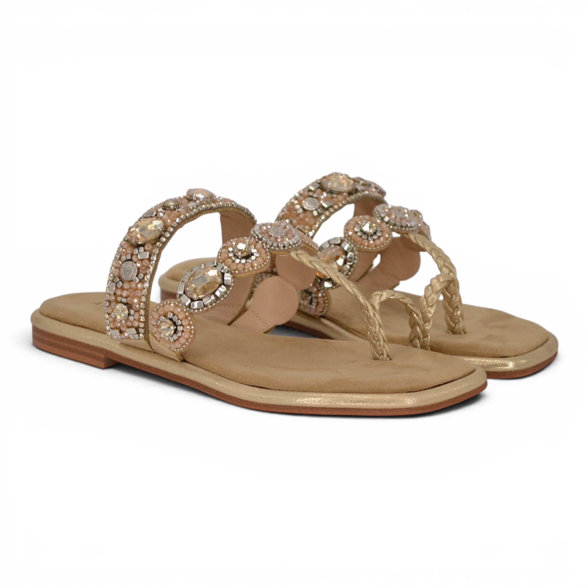 Fascette in pelle, fodera interna in pelle, sottopiede in camoscio imbottito, suola in gomma, altezza tacco cm.2.