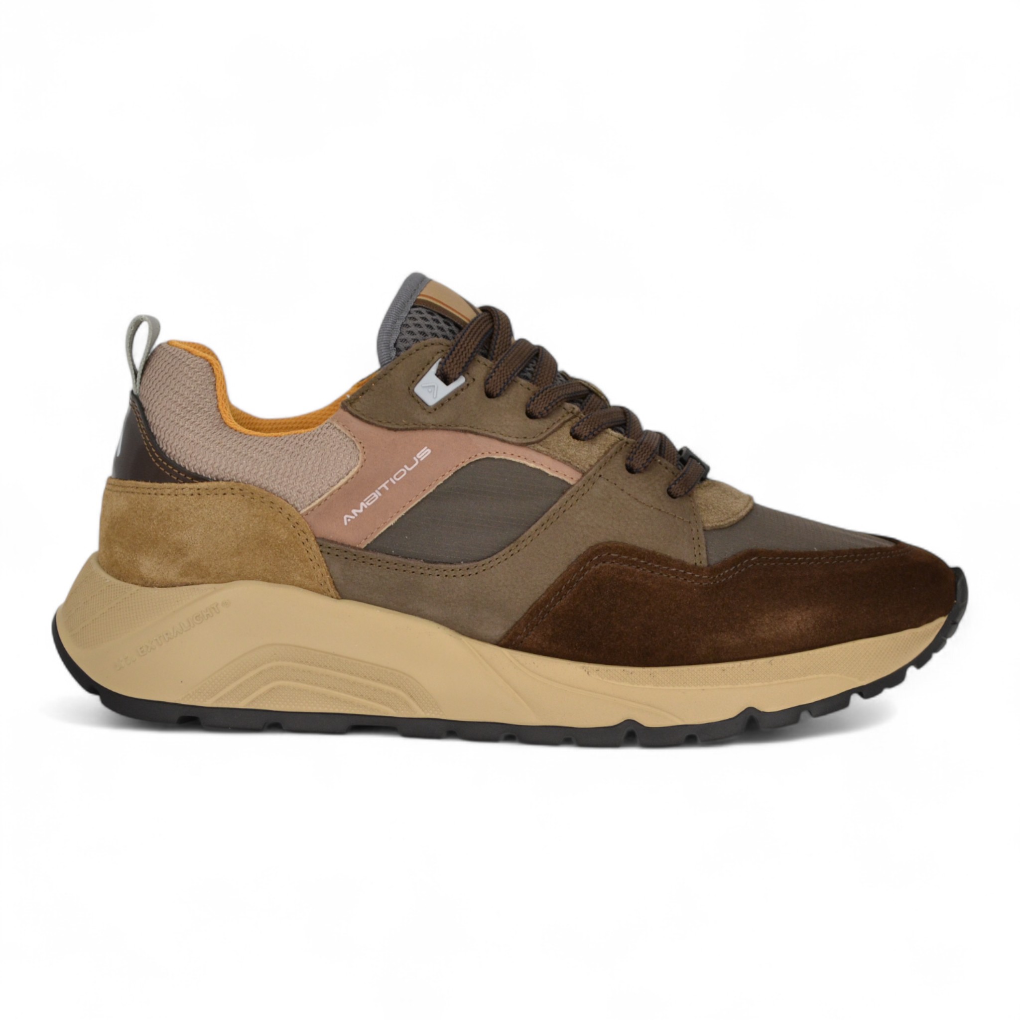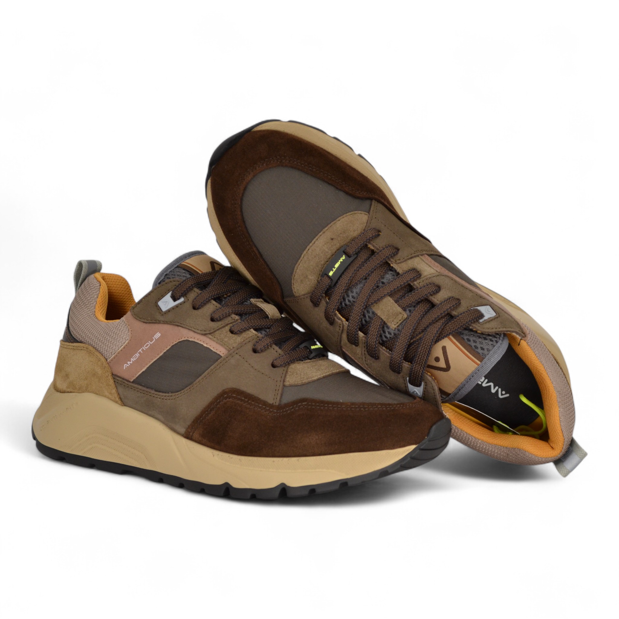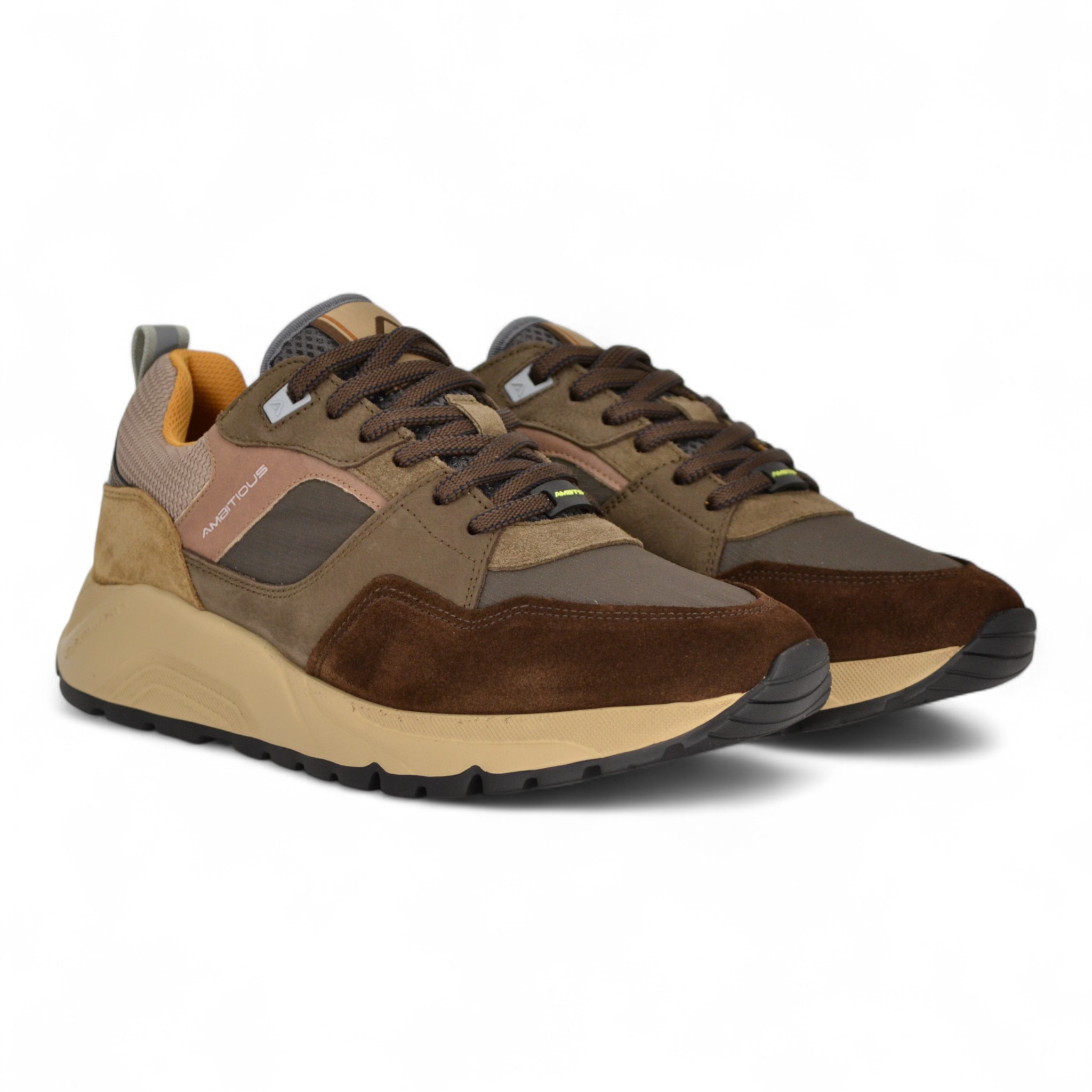 Sneaker uomo in camoscio e nylon colore testa di moro.