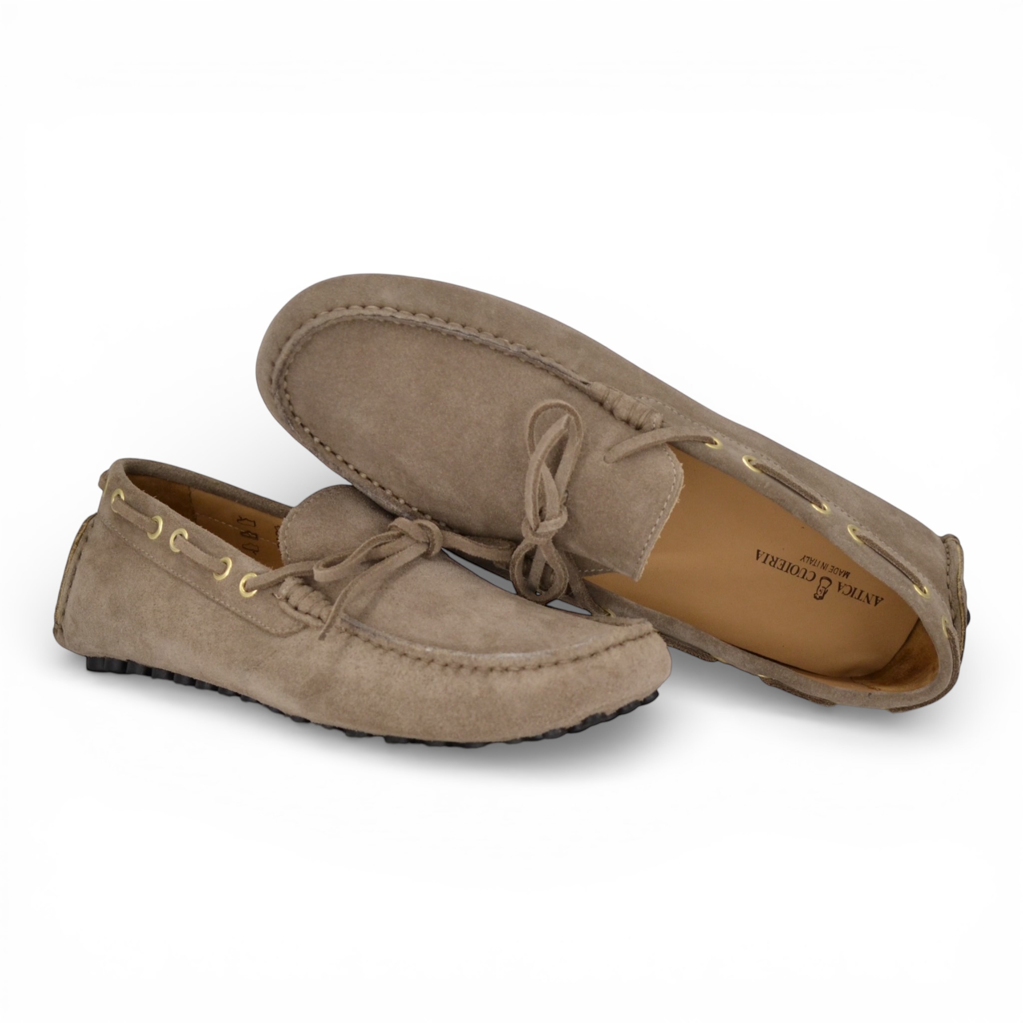 Mocassino uomo Antica Cuieria in camoscio colore beige.