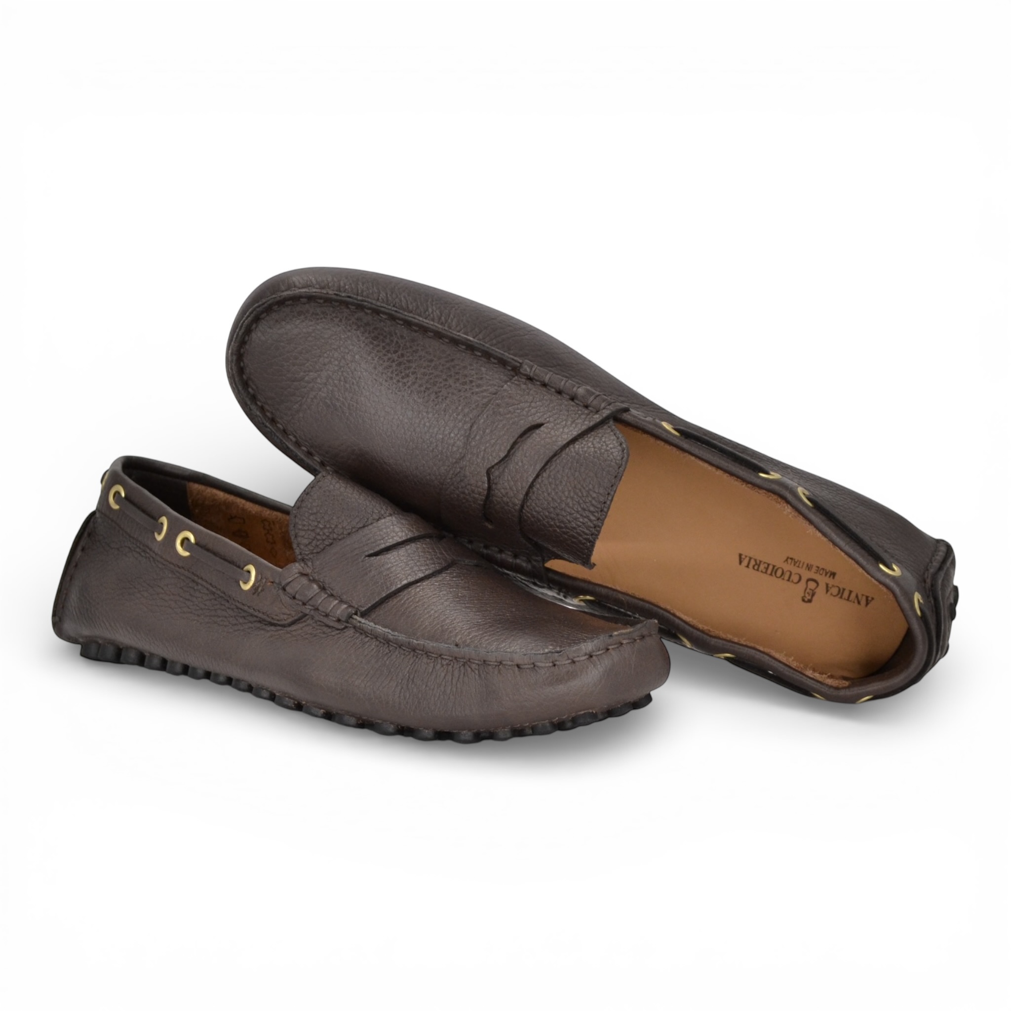 Mocassino uomo Antica Cuieria in pelle colore testa di moro.