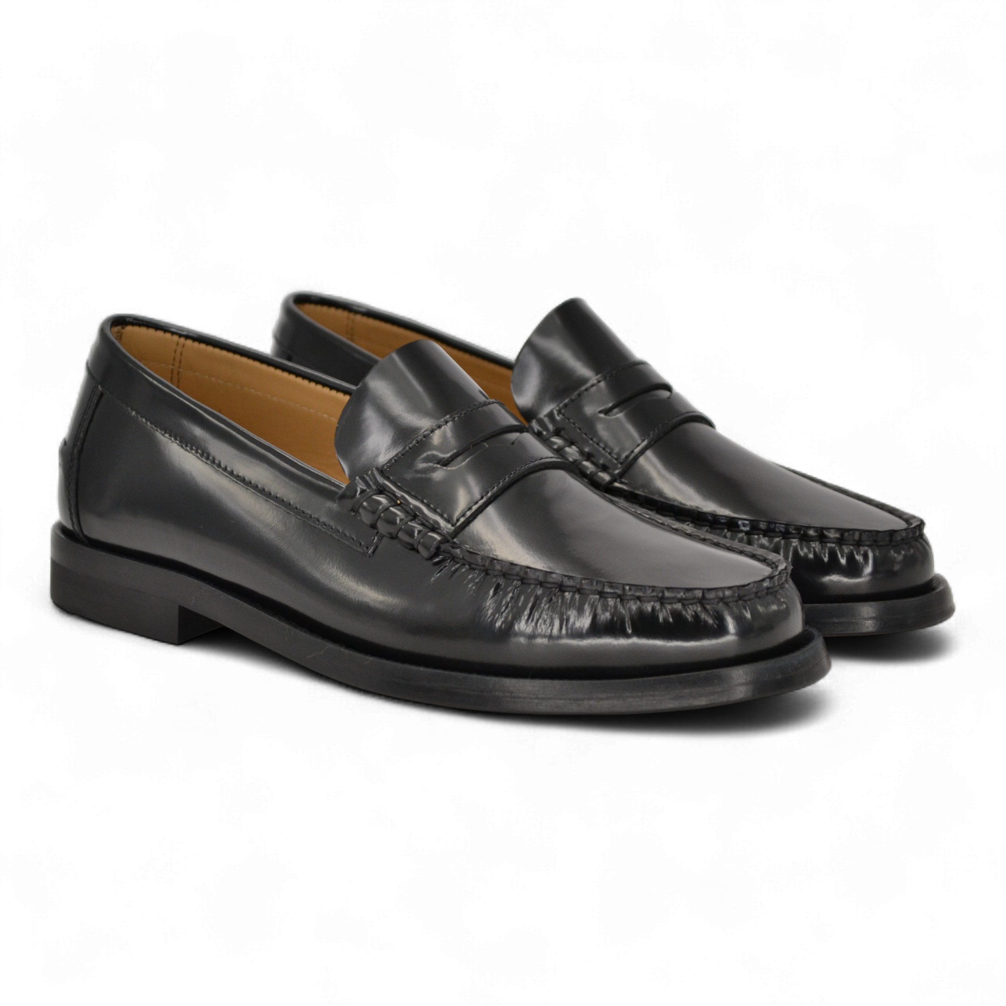 Tomaia in vitello spazzolato, fodera interna e sottopiede in pelle, suola in cuoio, altezza tacco cm.3.