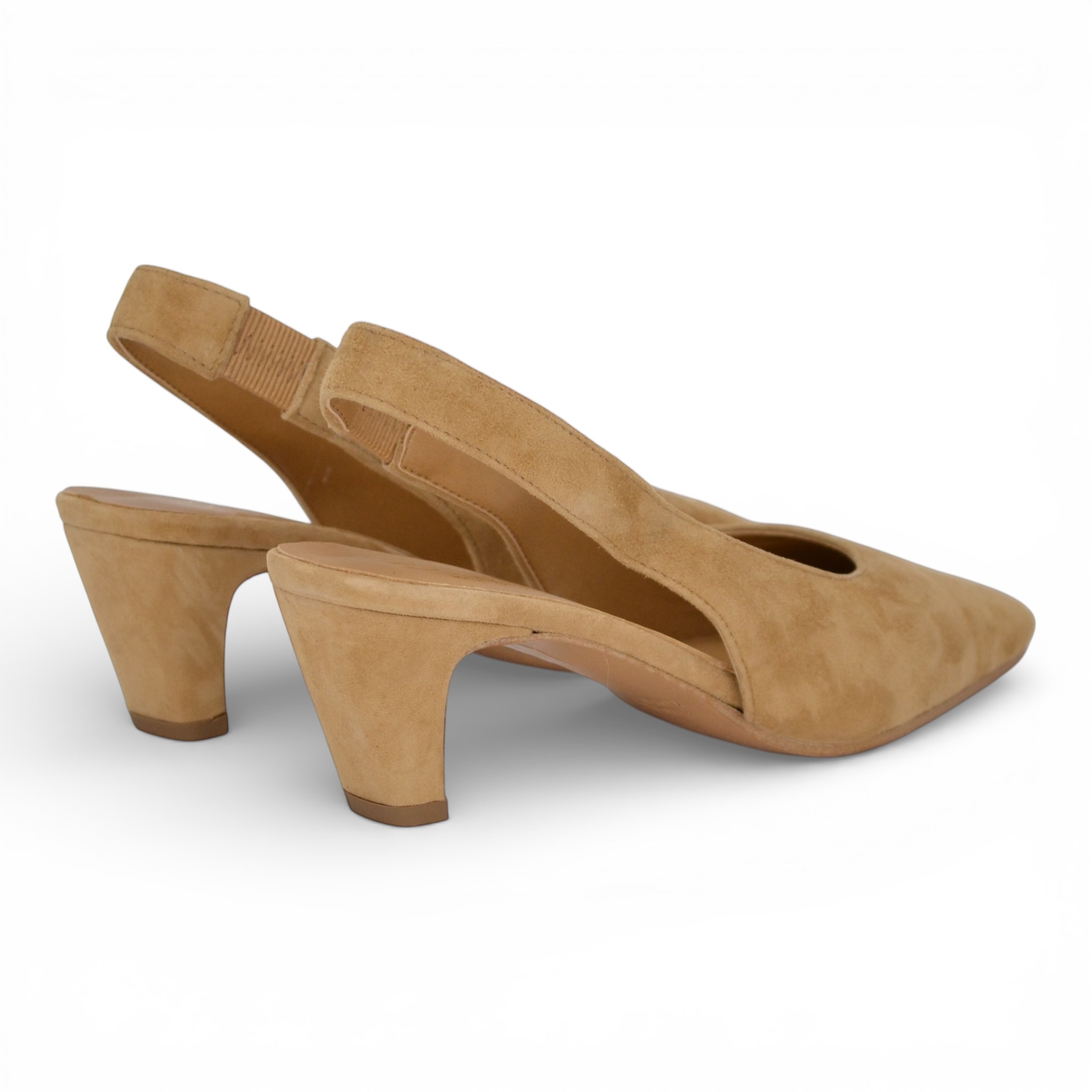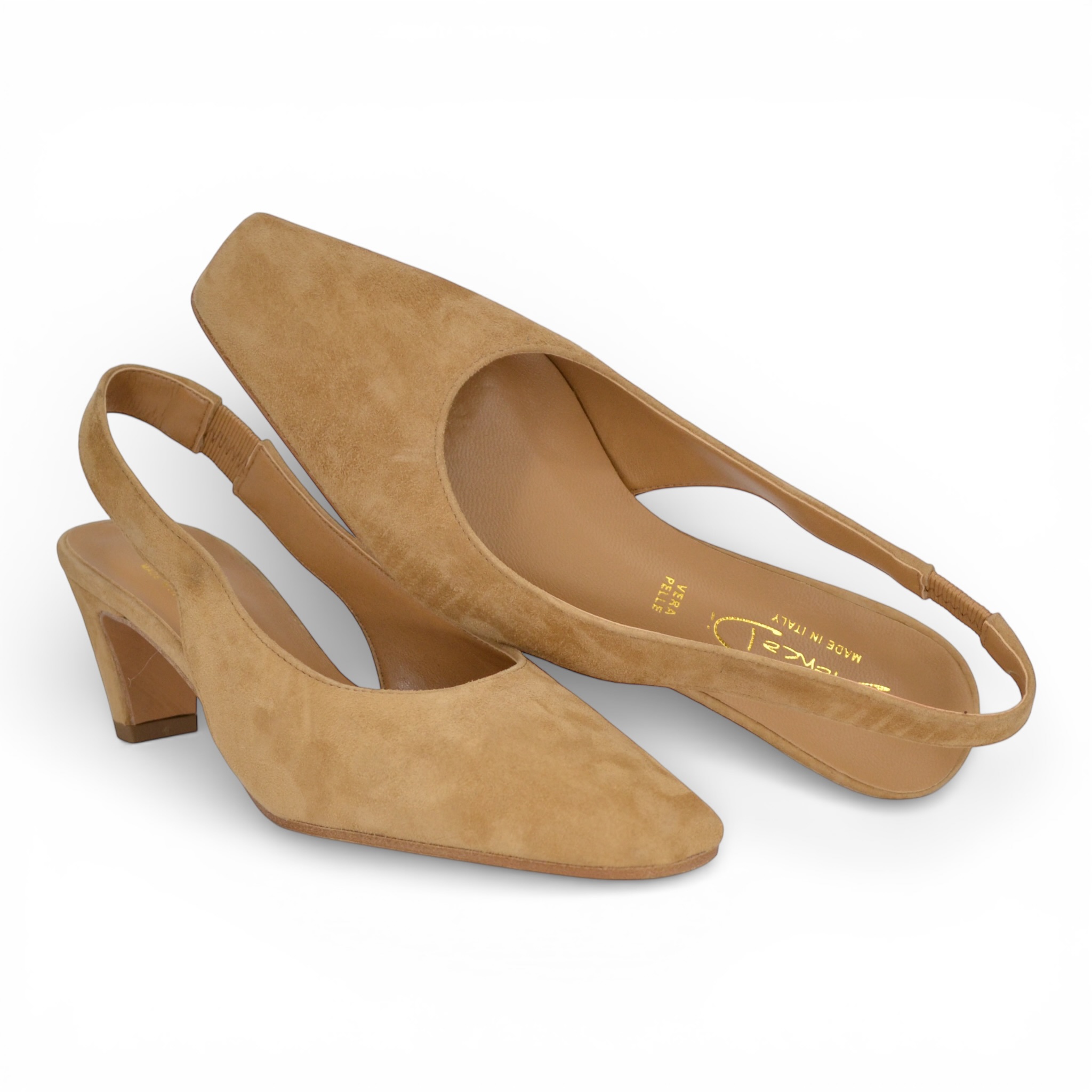 Tomaia in camoscio, fodera interna in pelle, sottopiede in pelle, suola in cuoio, altezza tacco cm.6.