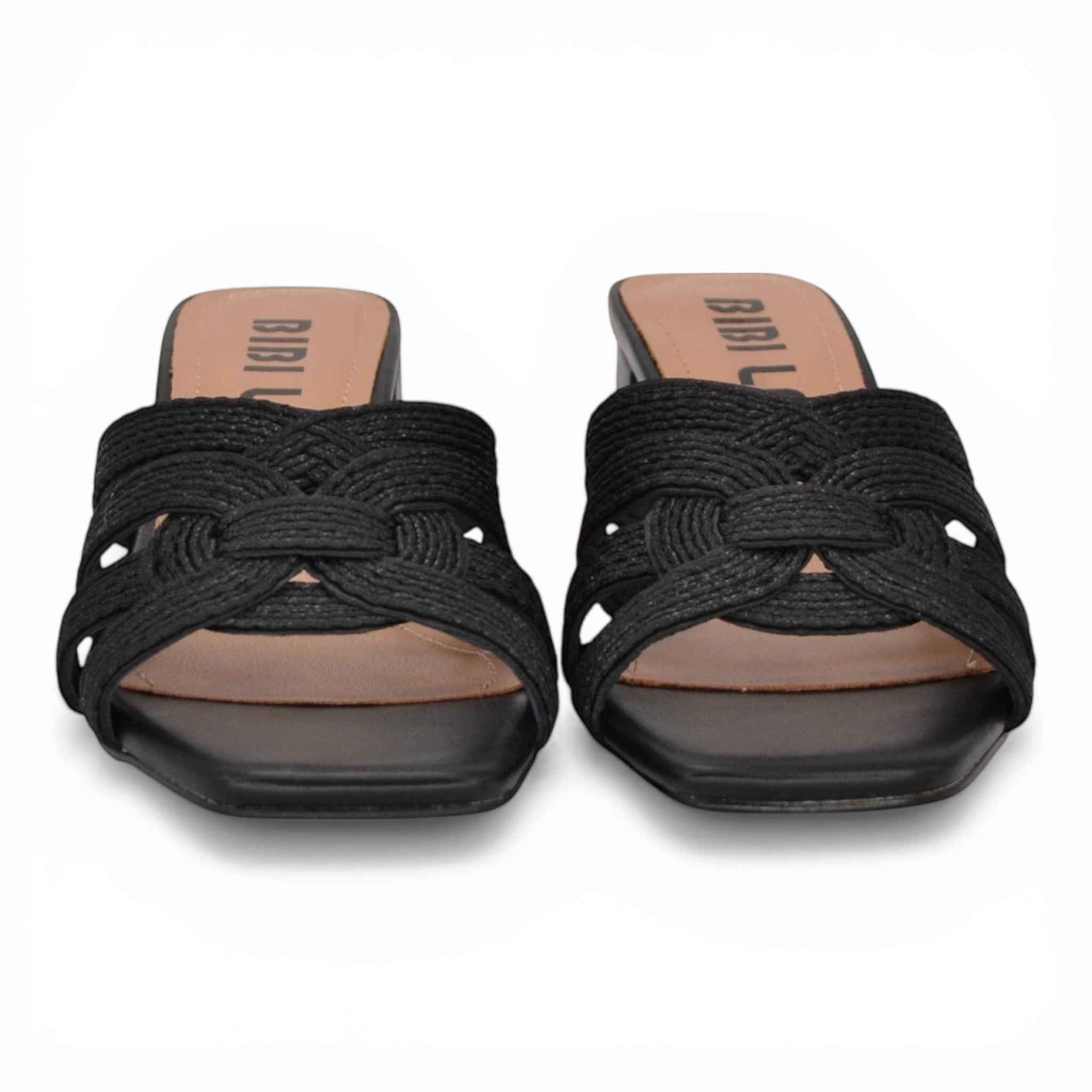 Tomaia in corda intrecciata, fodera e sottopiede in pelle, suola in gomma, altezza tacco cm.6,5.