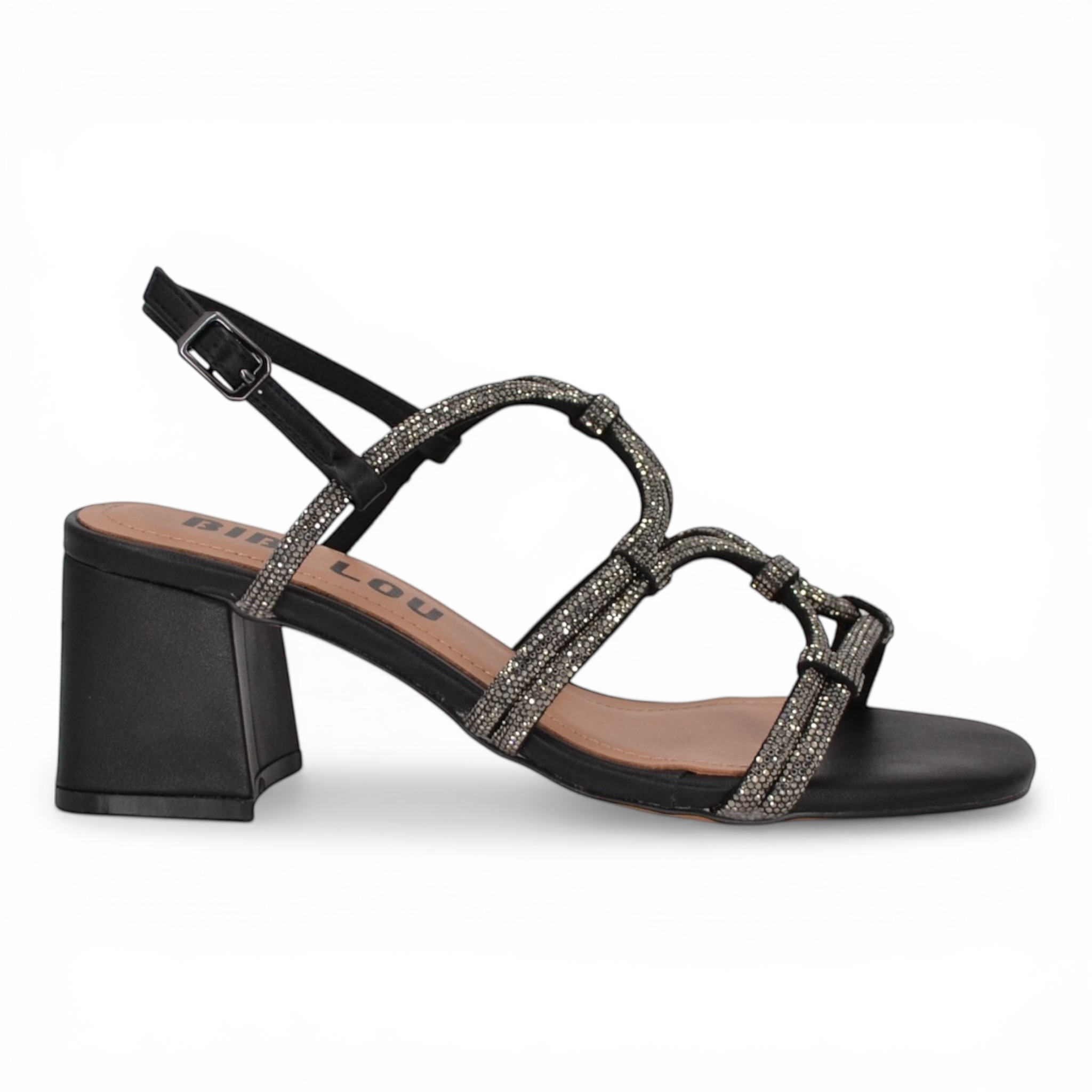 Sandalo donna Bibi Lou in microstrass colore nero.