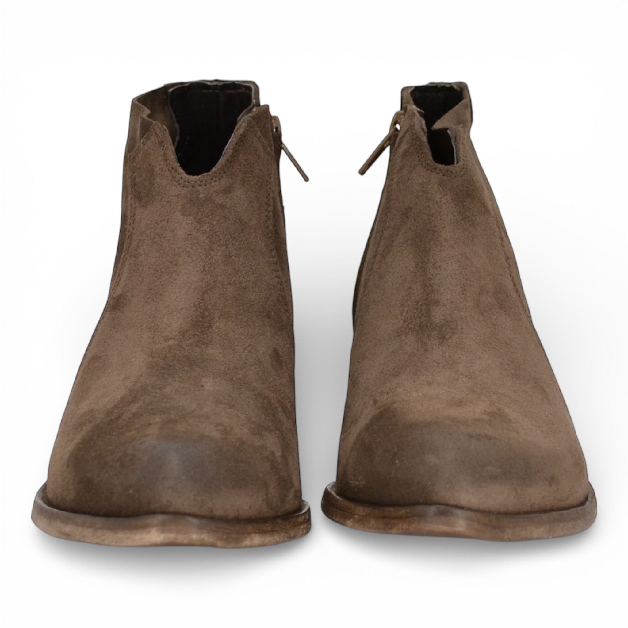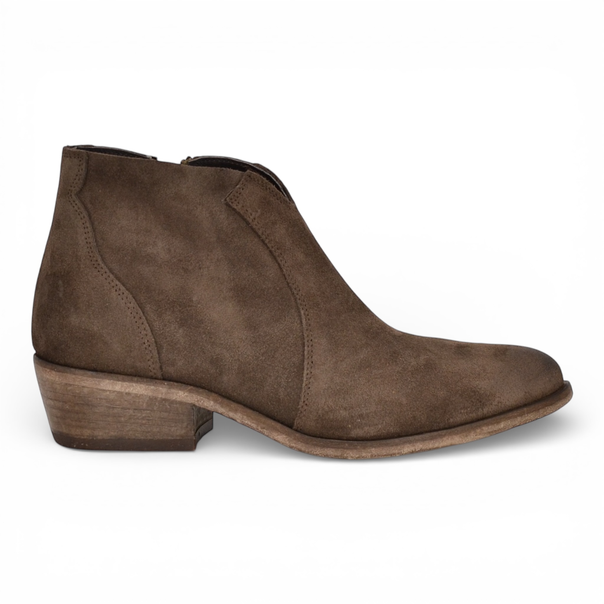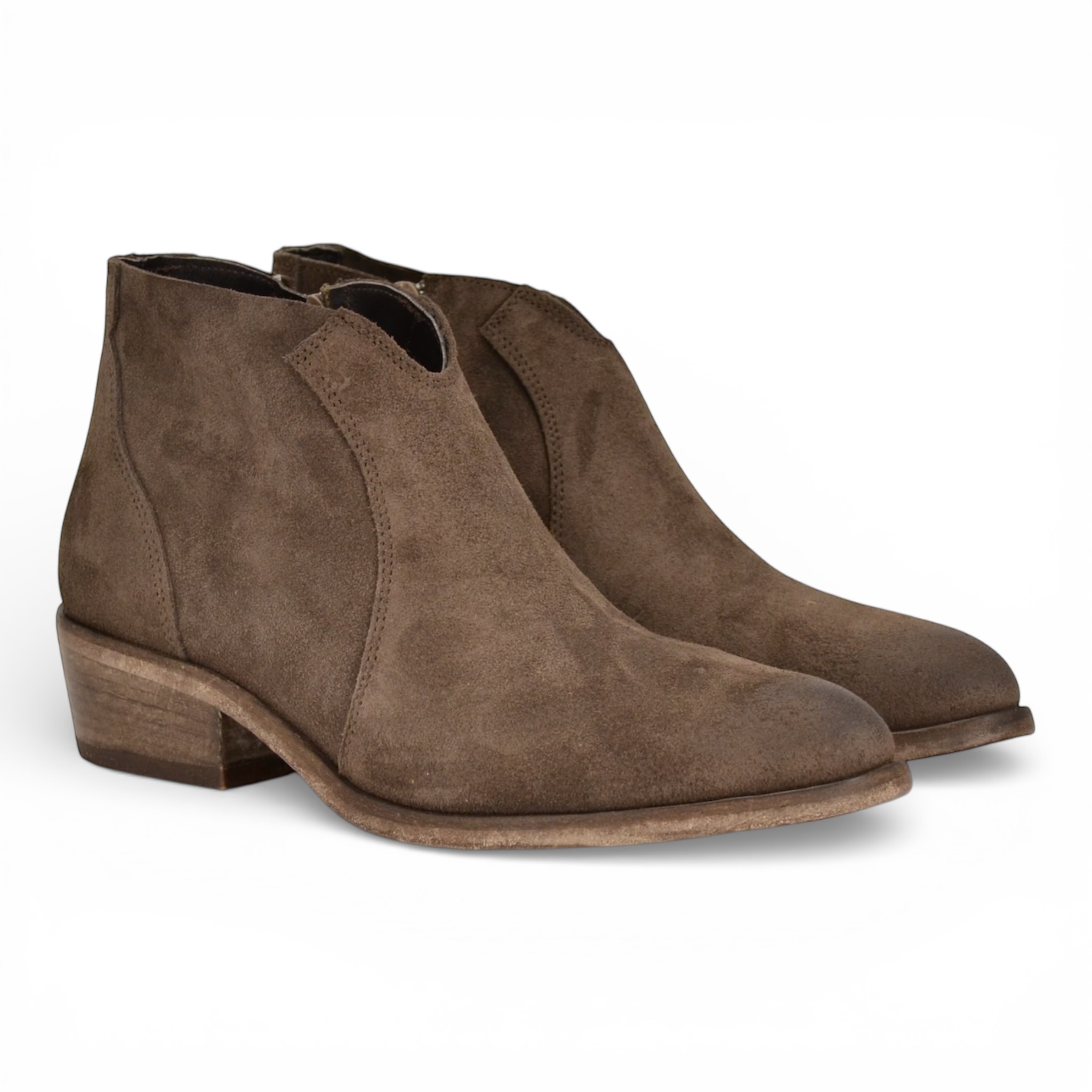 Tomaia in camoscio, fodera interna in pelle, sottopiede in pelle, zip laterale all'interno, suola in cuoio, altezza tacco cm.4,5.