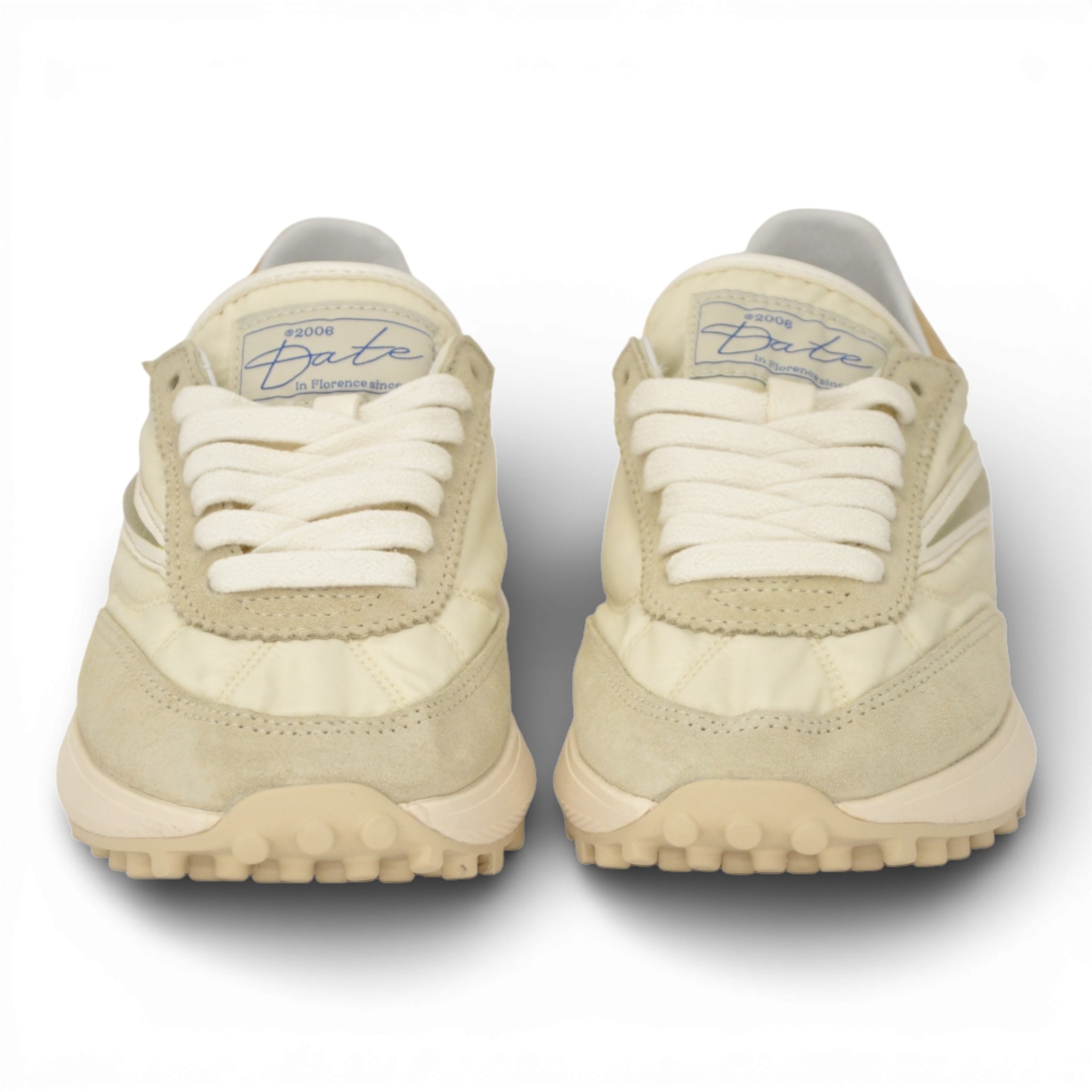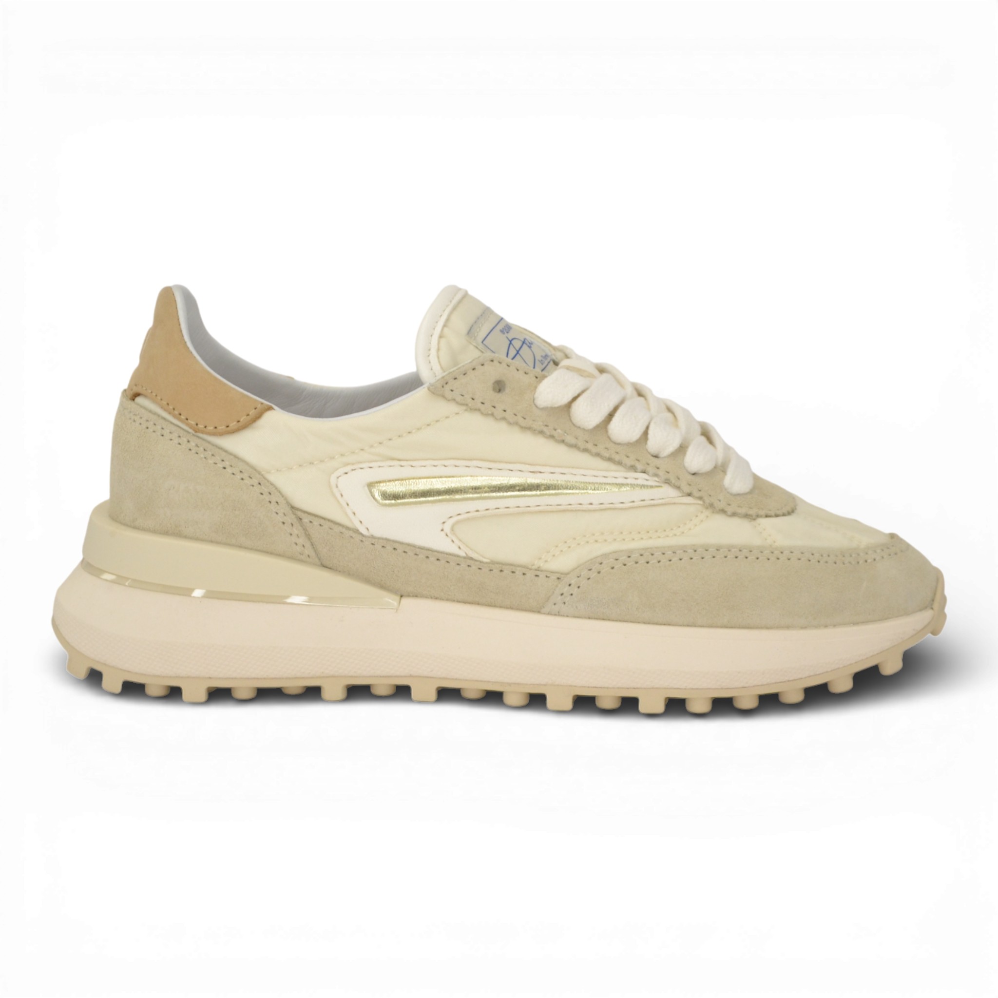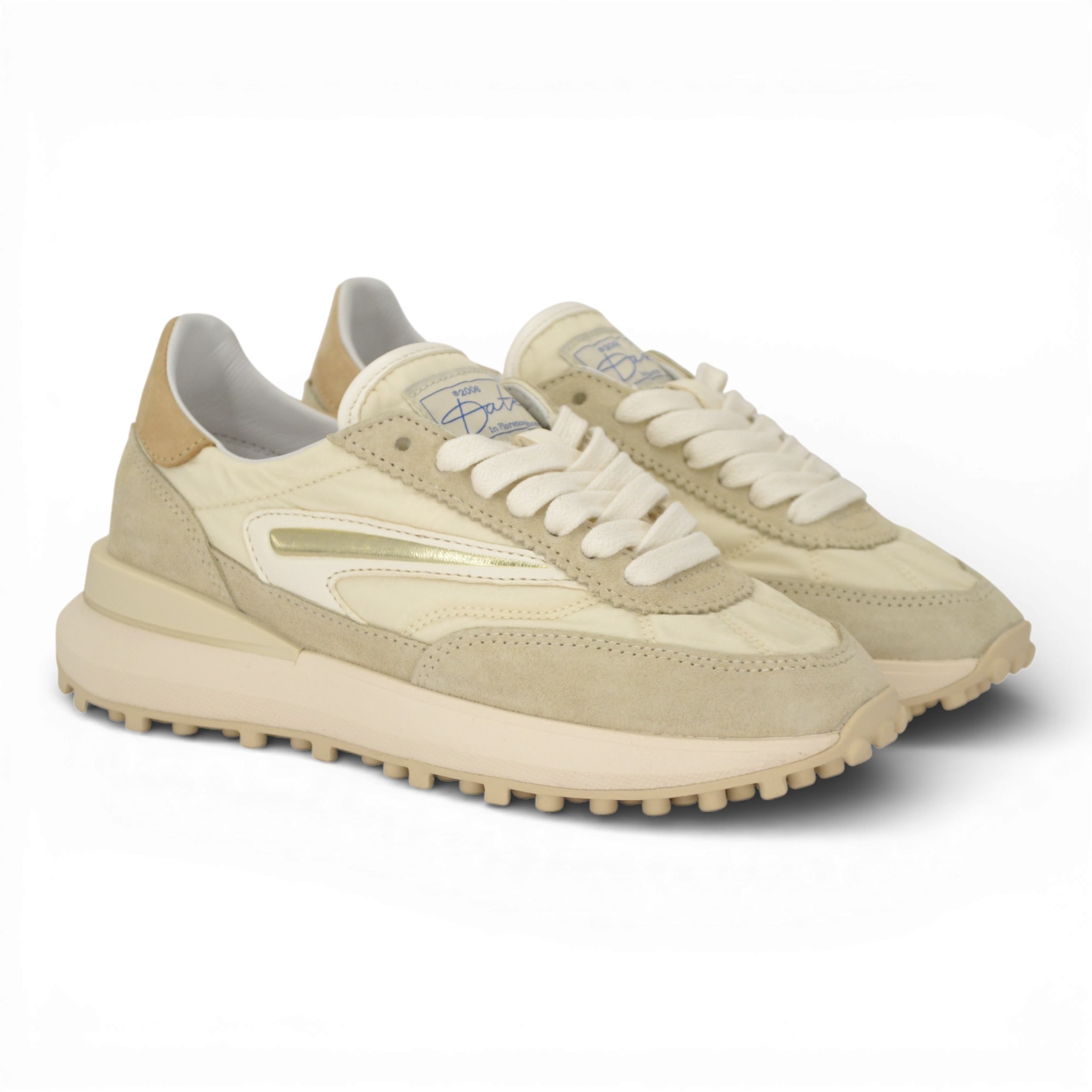 Tomaia in camoscio e tela, fodera interna in tessuto, plantare interno rialzato estraibile, suola in gomma, altezza tacco cm.7.