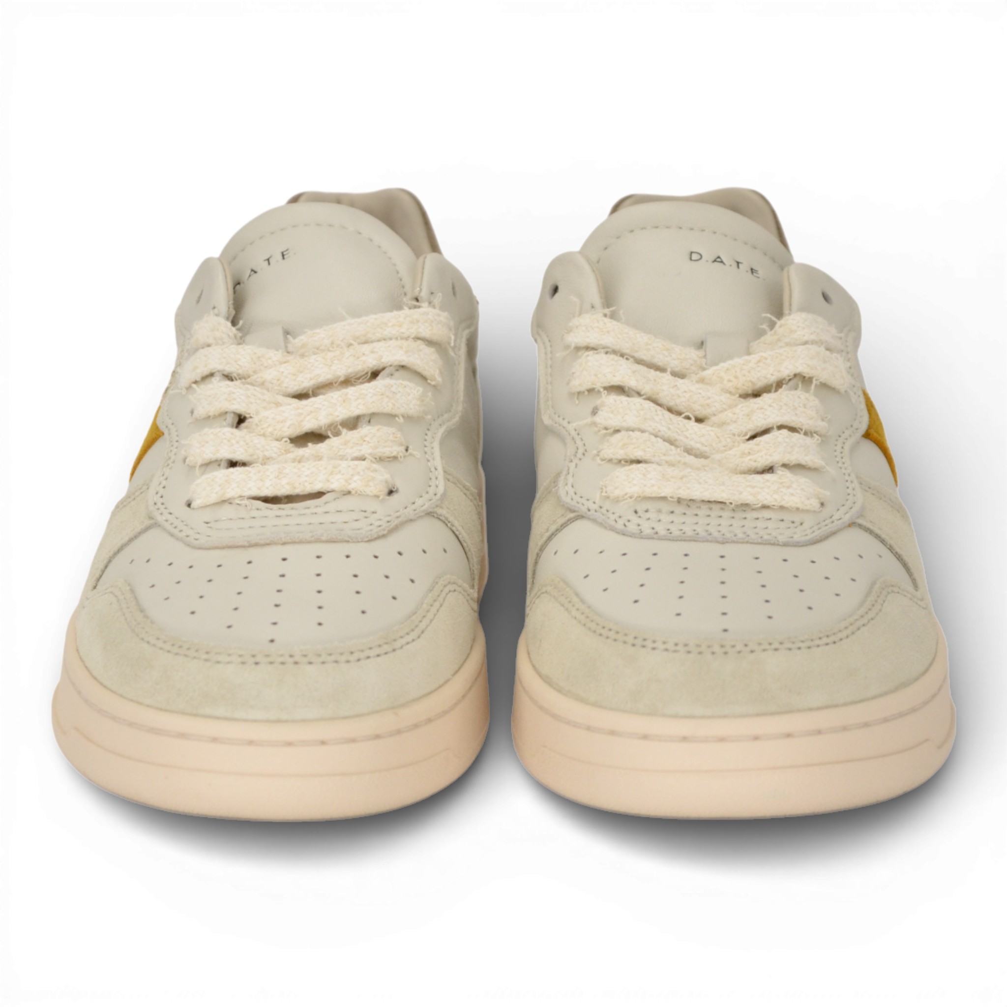 Tomaia in pelle con inserti in camoscio, fodera interna in spugna, plantare rialzato estraibile, suola in gomma, altezza tcco cm.3,5.