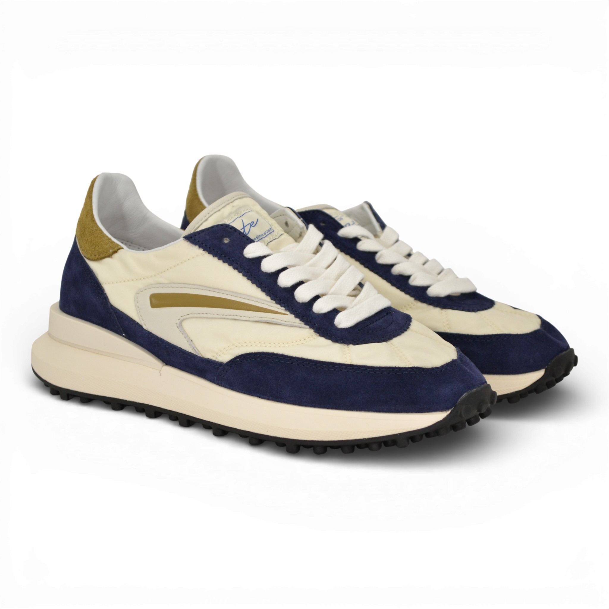Sneaker uomo Date in tessuto e camoscio colore panna.