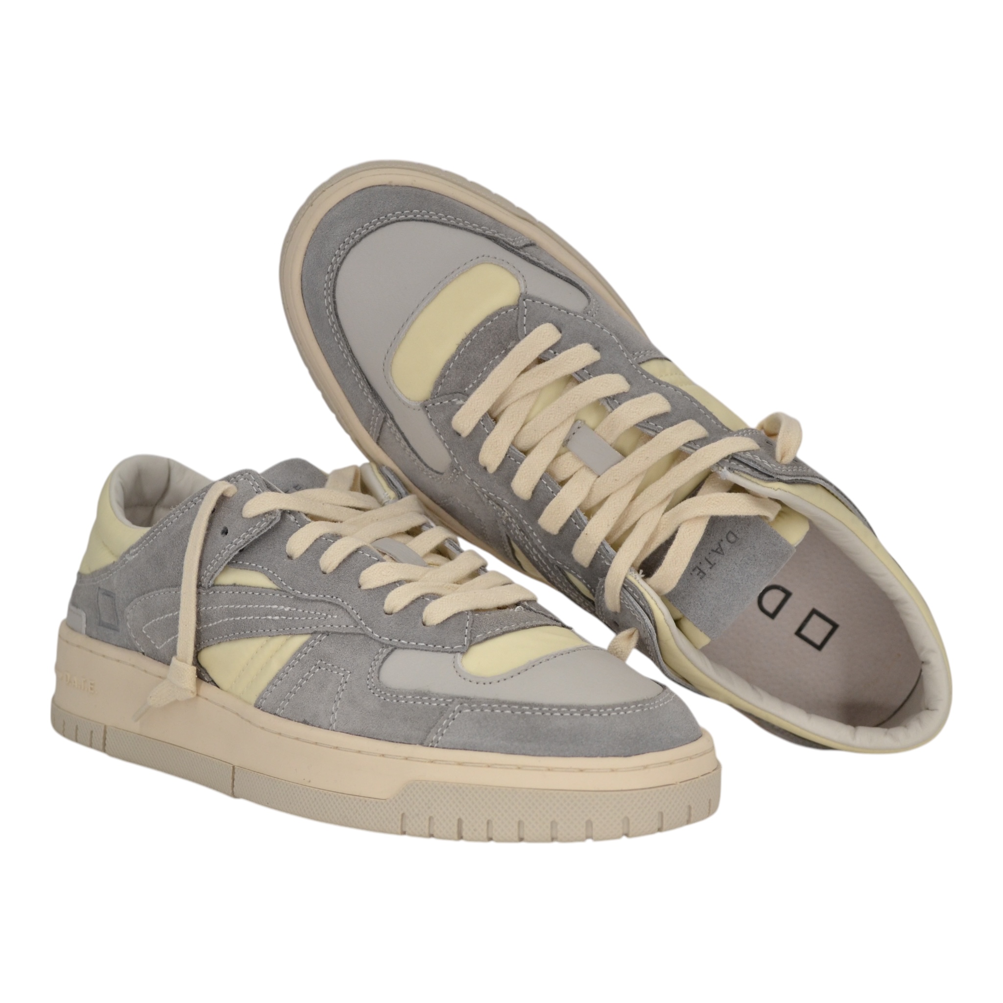 Tomaia in nylon, inserti in pelle e camoscio, fodera interna in spugna, suoletta interna in pelle rialzata estraibile, fondo in gomma, altezza tacco cm.3,5.