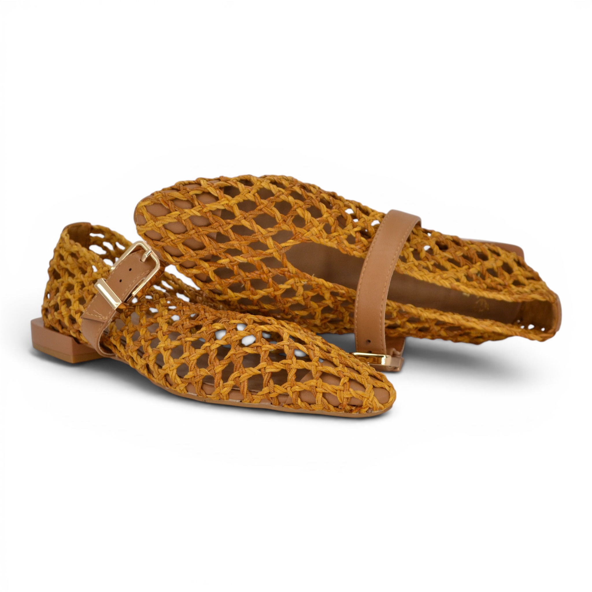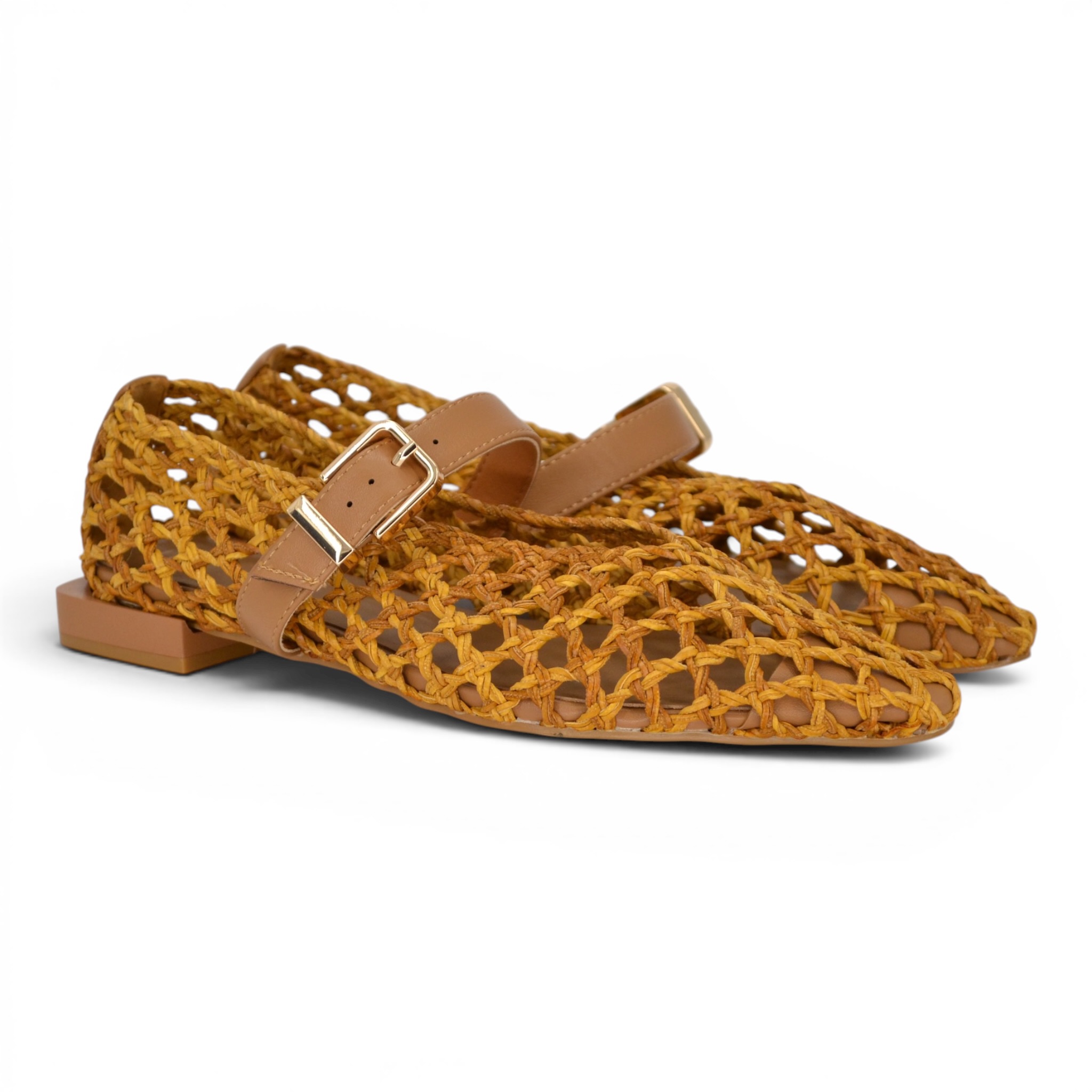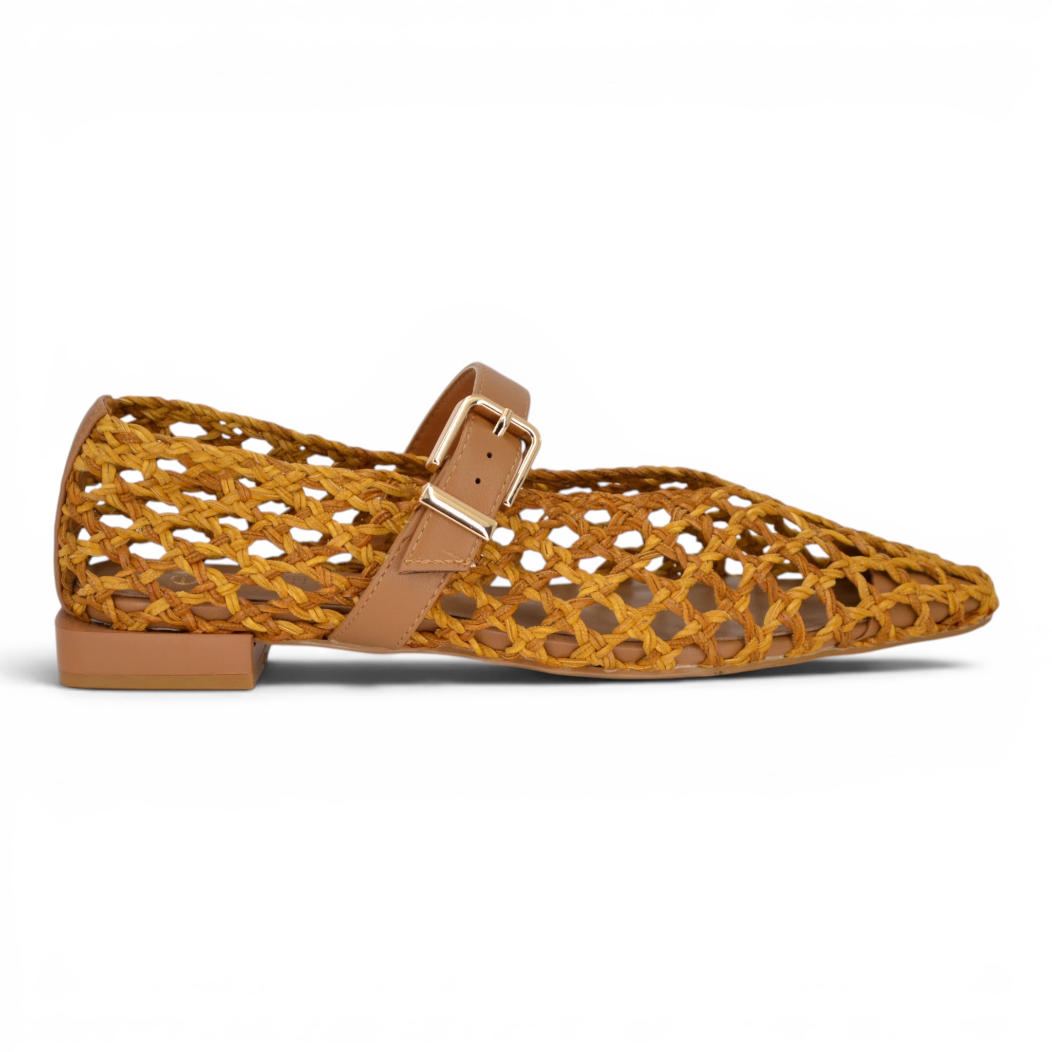 Ballerina Exè intrecciata colore cuoio.