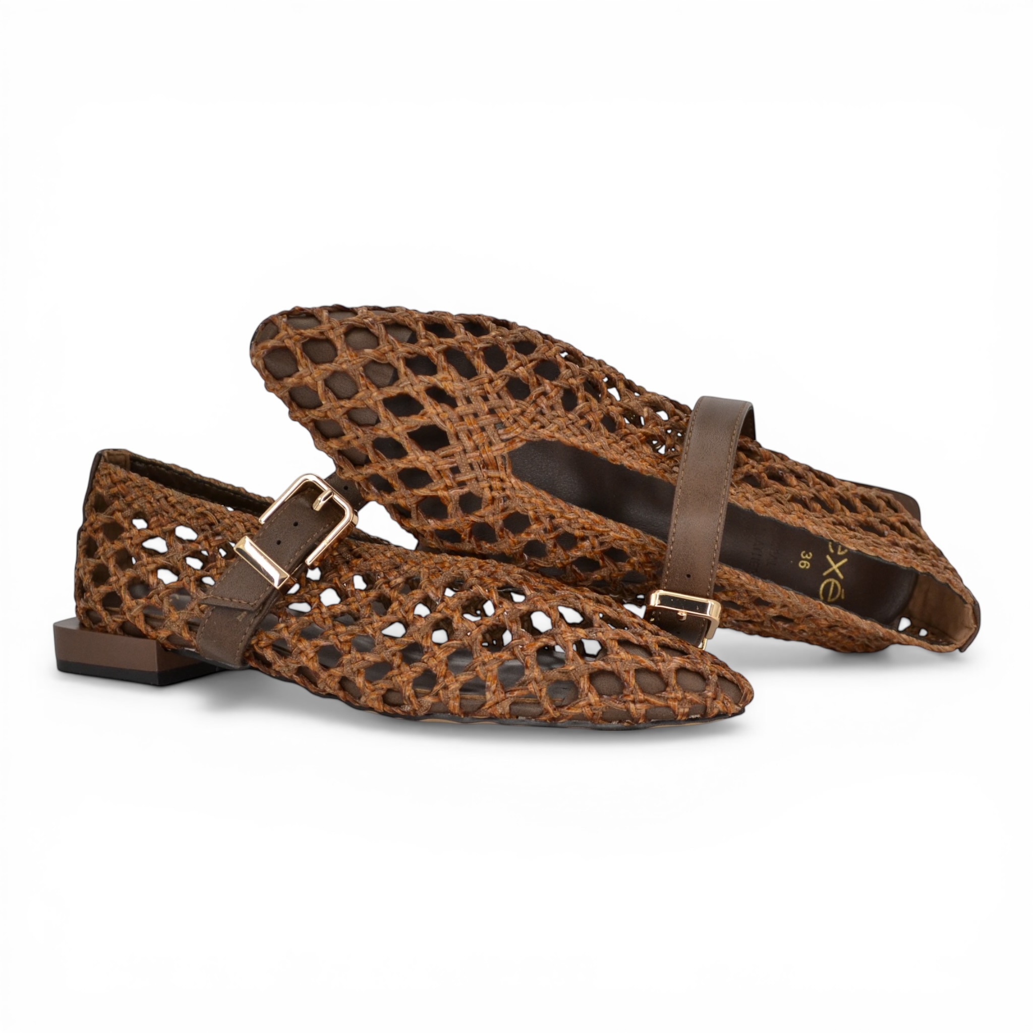 Ballerina Exè intrecciata colore marrone.