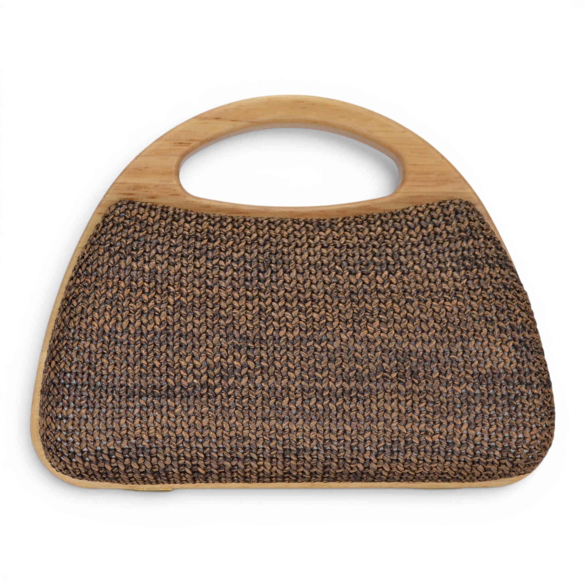 Borsa in rafia,manici in legno con chiusura a calamita, tracollina a catenina dorata, fodera interna in tessuto,