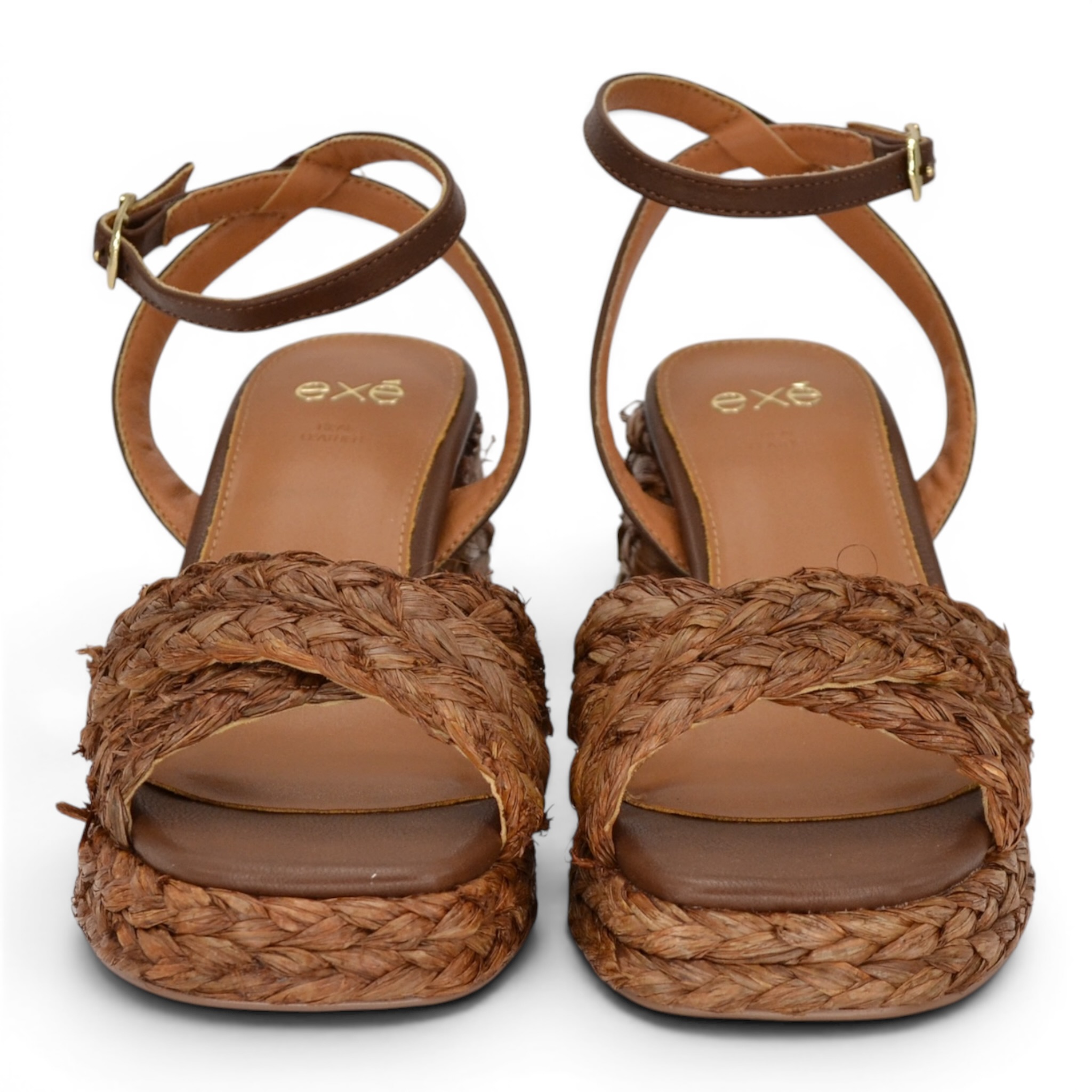 Sandalo donna Exè in rafia colore cuoio.