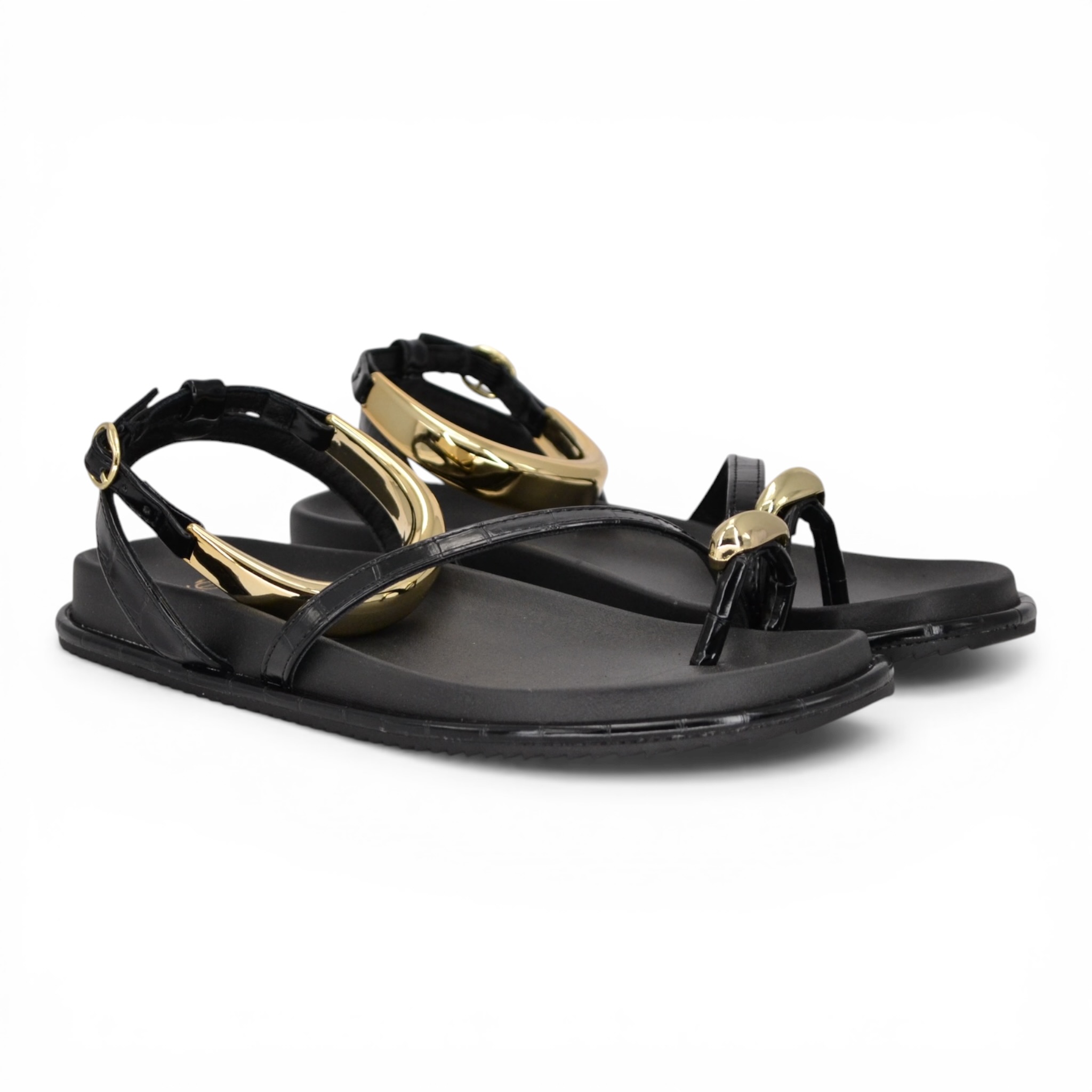 Sandalo donna in pelle colore nero.