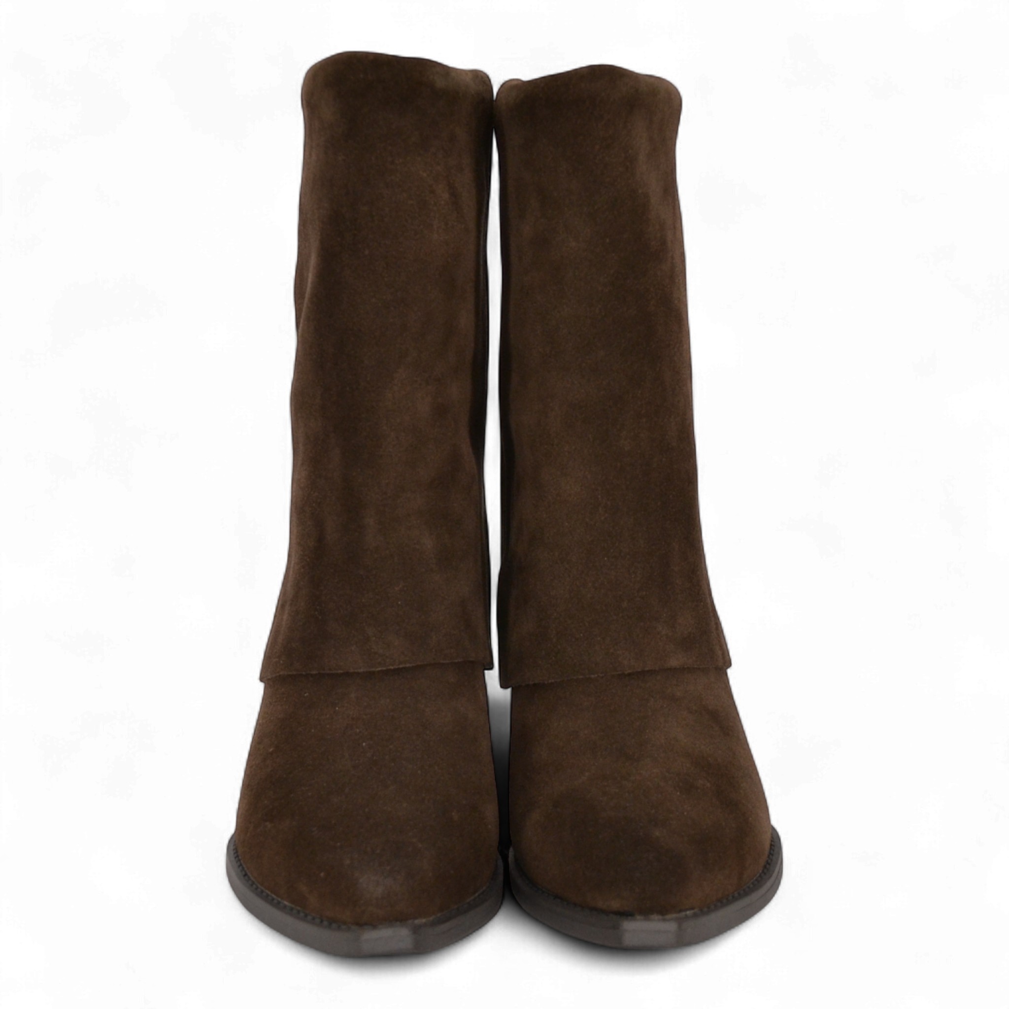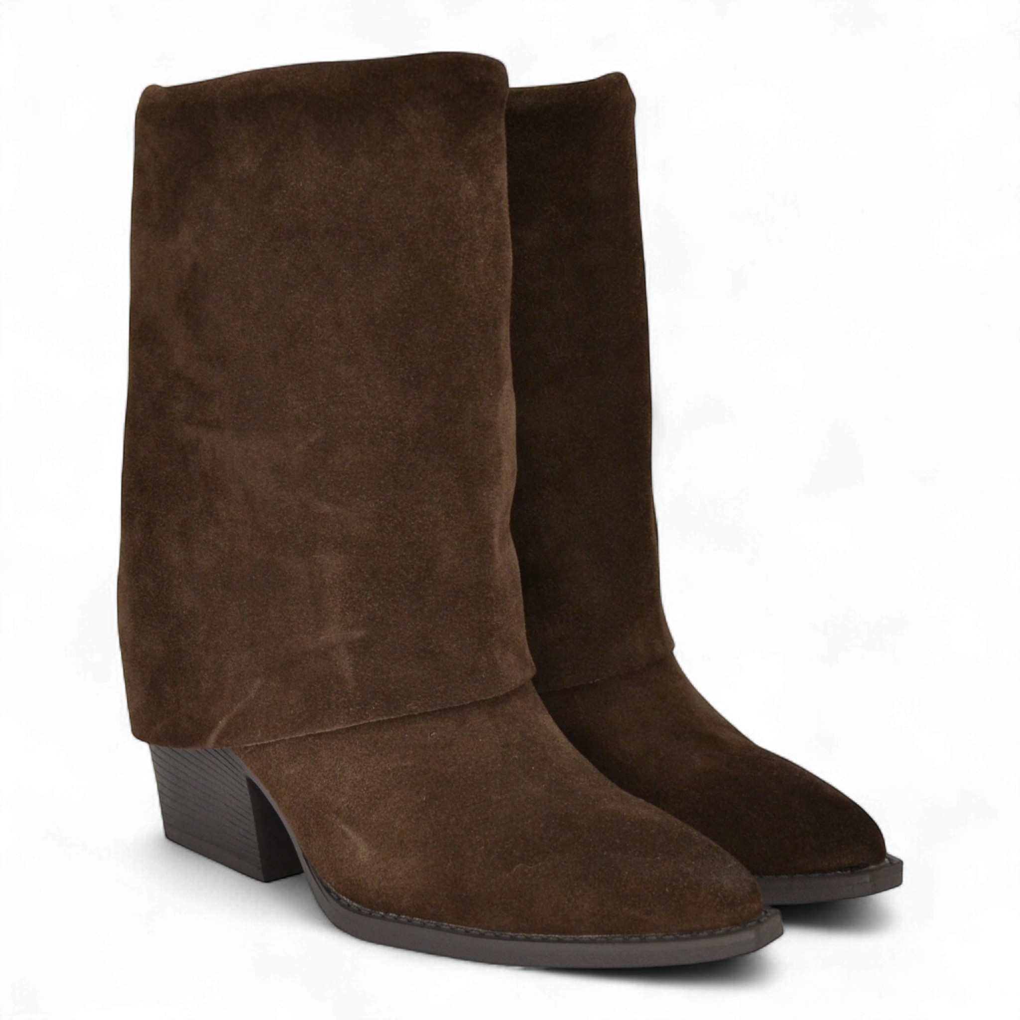 Tomaia in camoscio, fodera interna e sottopiede in camoscio, suola in gomma, altezza tacco cm.7.