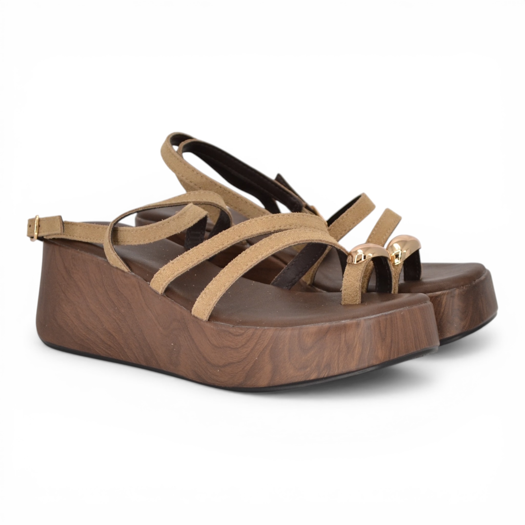 Zatterone fascette in camoscio colore fango.