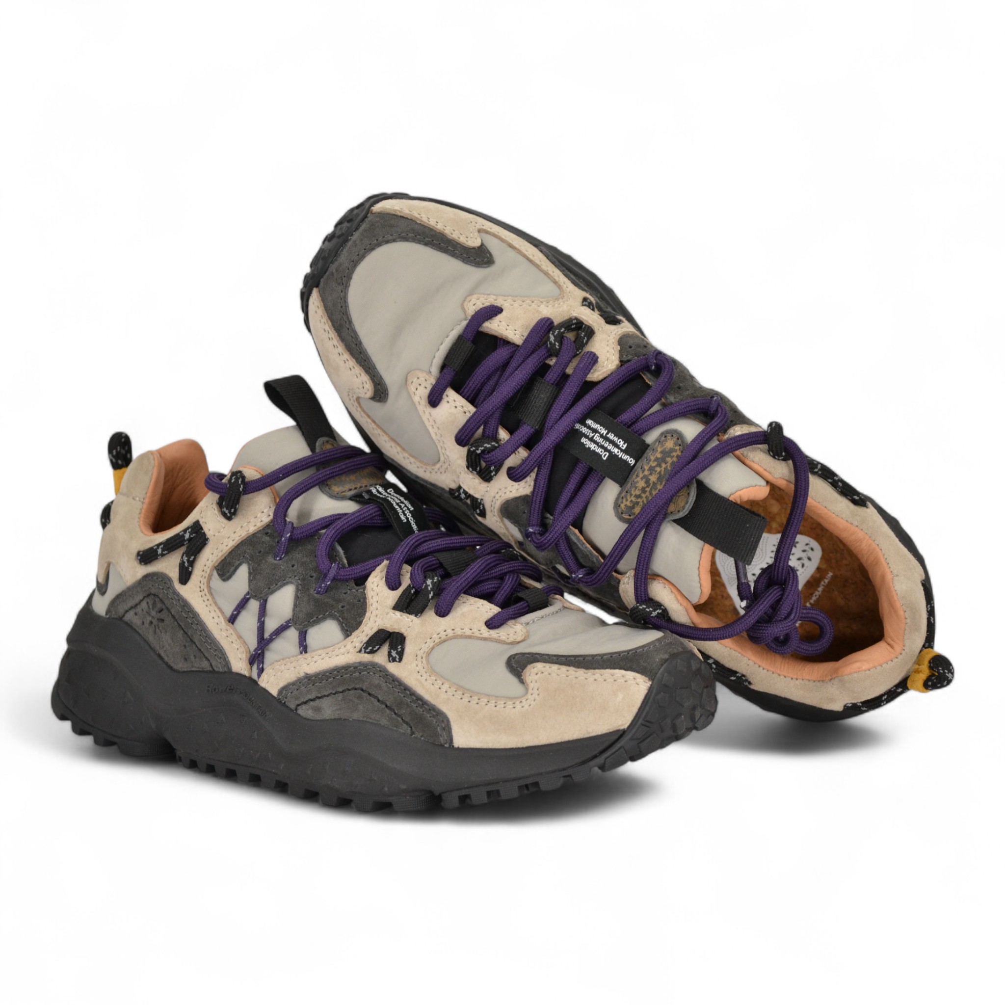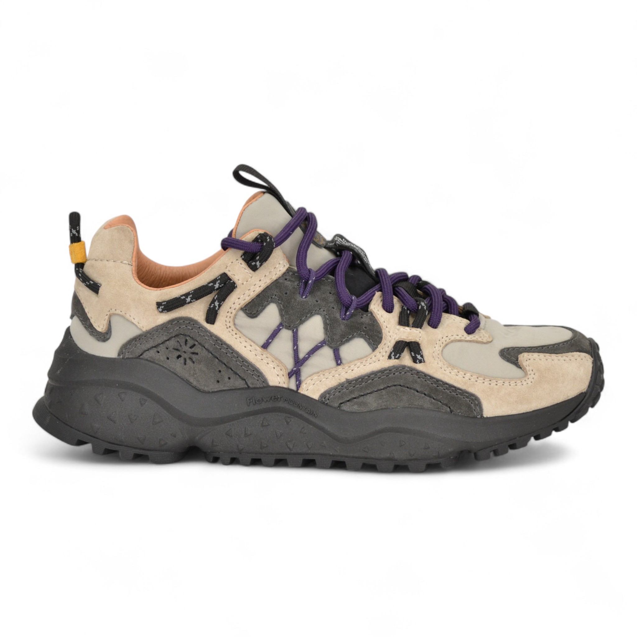 Sneaker in tessuto tecnico con inserti in suede multicolor. Occhielli rinforzati e lacci trek. Soletta interna in sughero naturale antibatterico, fondo in gomma ultra leggera con battistrada dentellato.