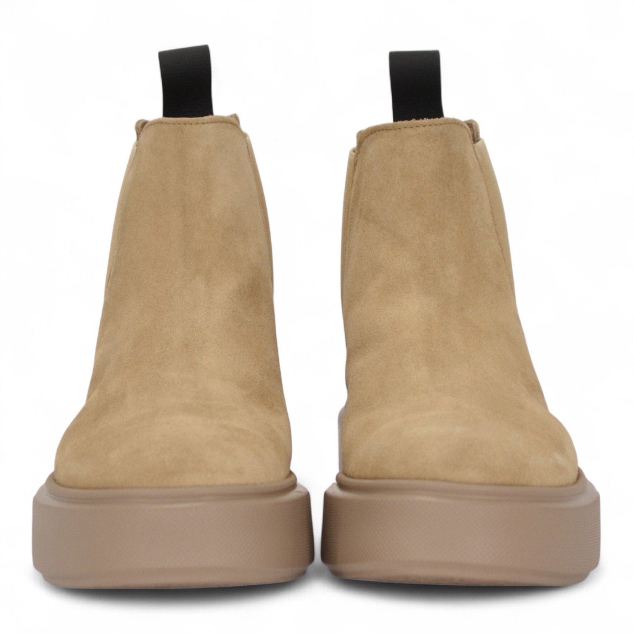 Tomaia in camoscio, fodera interna in tessuto, suoletta interna estraibile, fondo in gomma, altezza tacco cm.4.