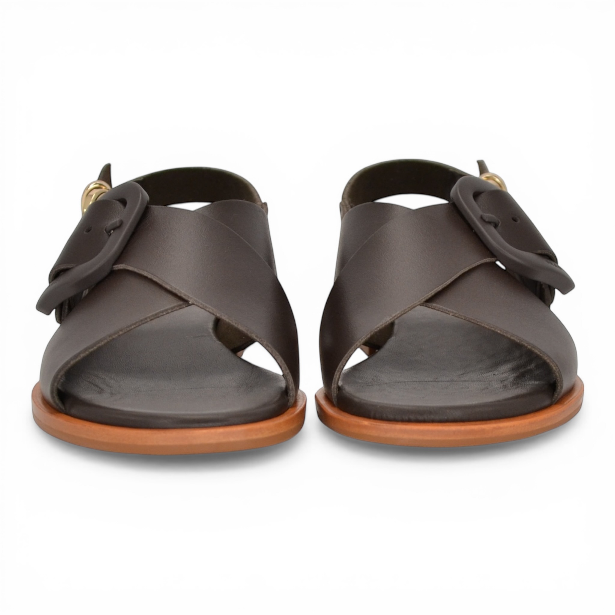 Tomaia in pelle, sfoderata, sottopiede in pelle imbottito, suola in gomma, altezza tacco cm2,5.