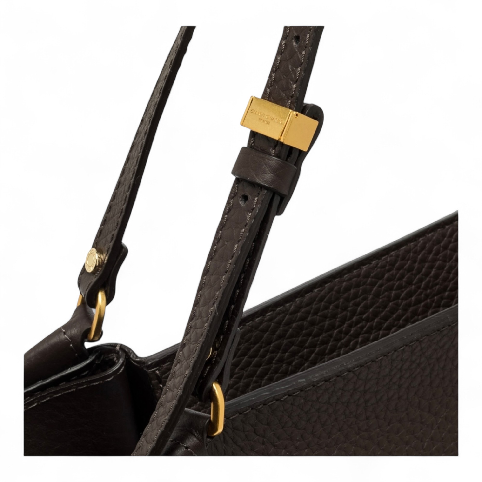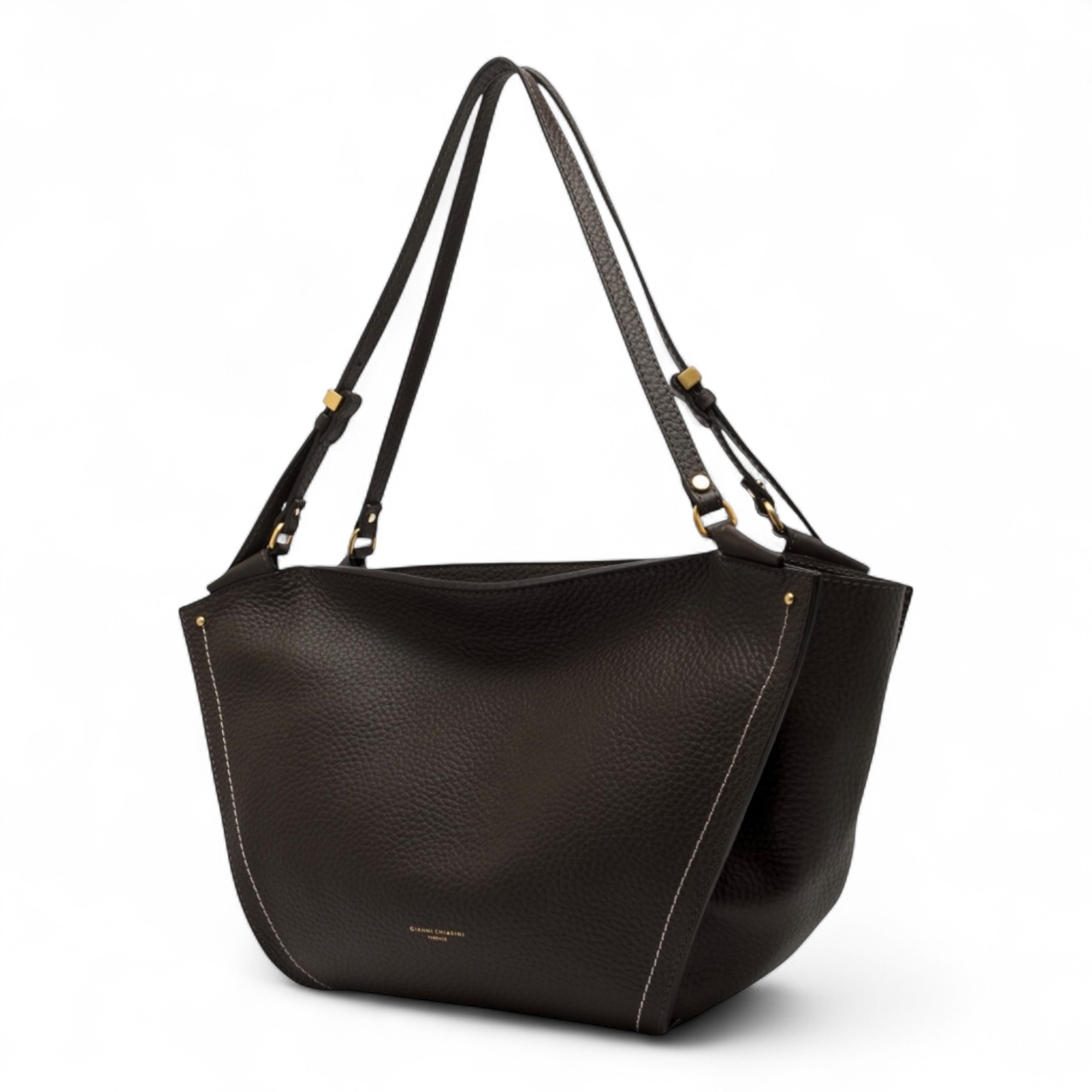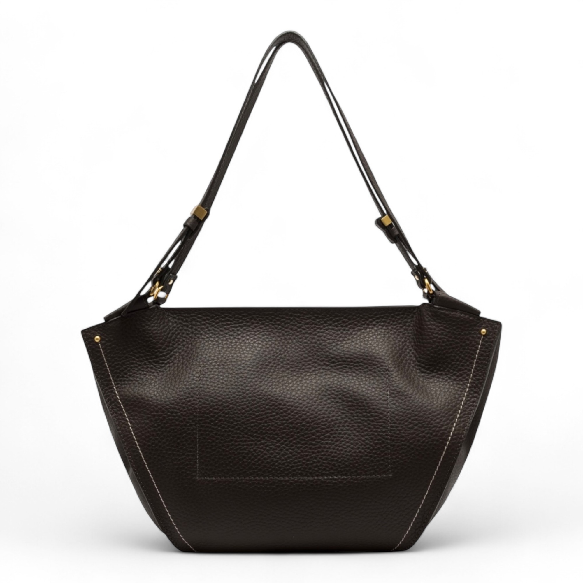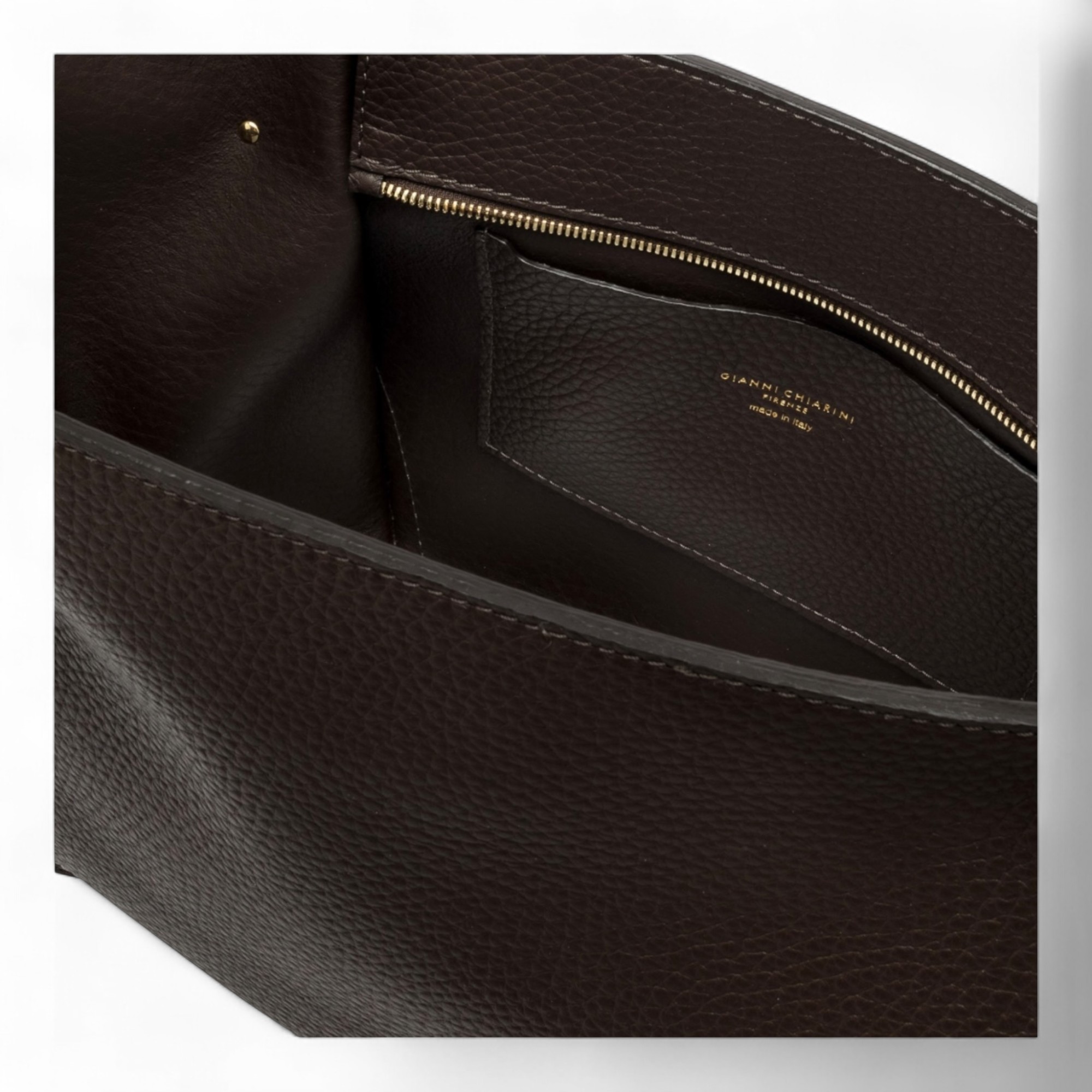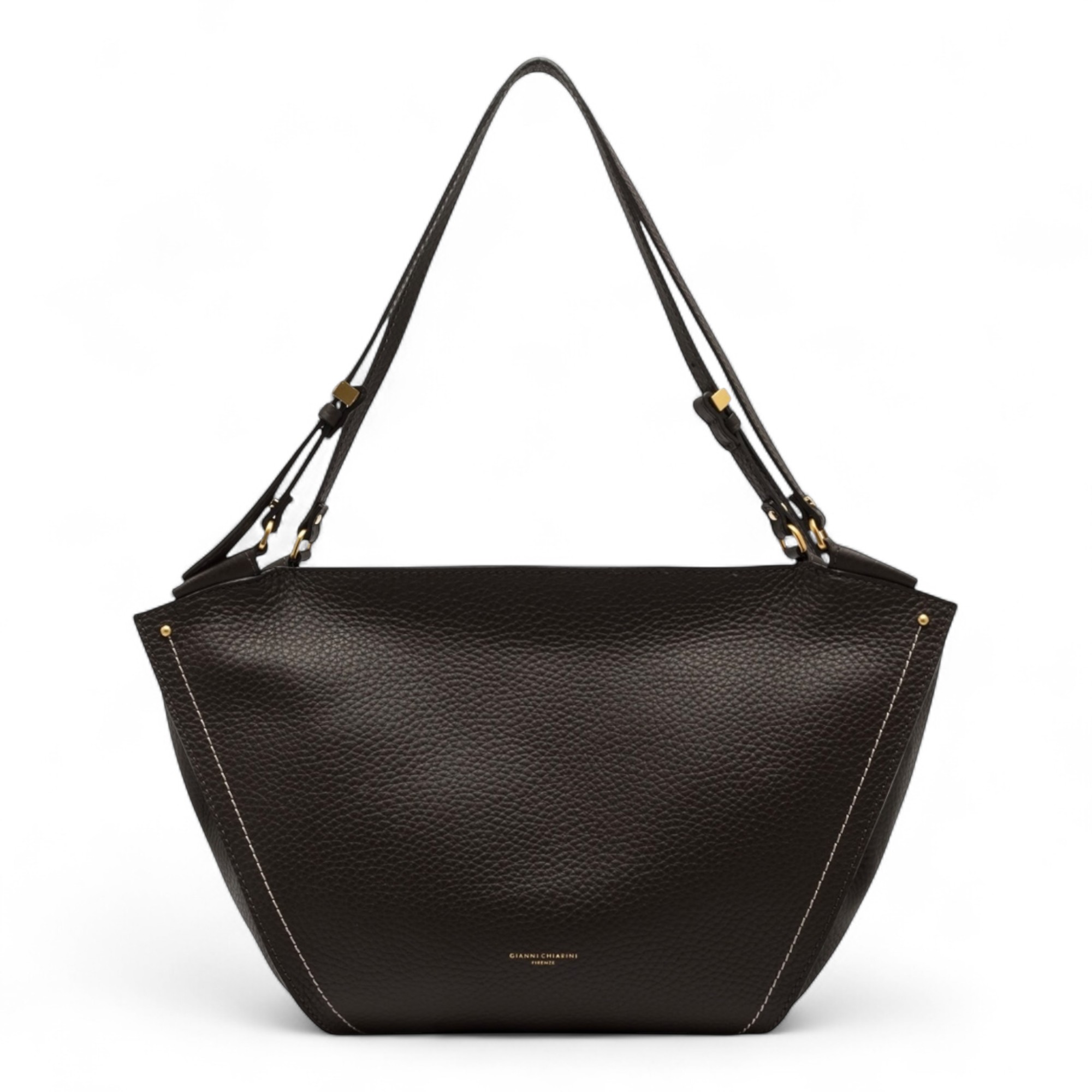 Bloom è la nuova borsa pratica e capiente, caratterizzata da una shape a tulipano. Realizzata in pelle double dalla grana maxi ed impreziosita da una cucitura decorativa a contrasto. L'accessorio è arricchito da elementi in metallo che donano alla borsa un tocco di lucentezza. Dimensioni: 50x27x18 cm.