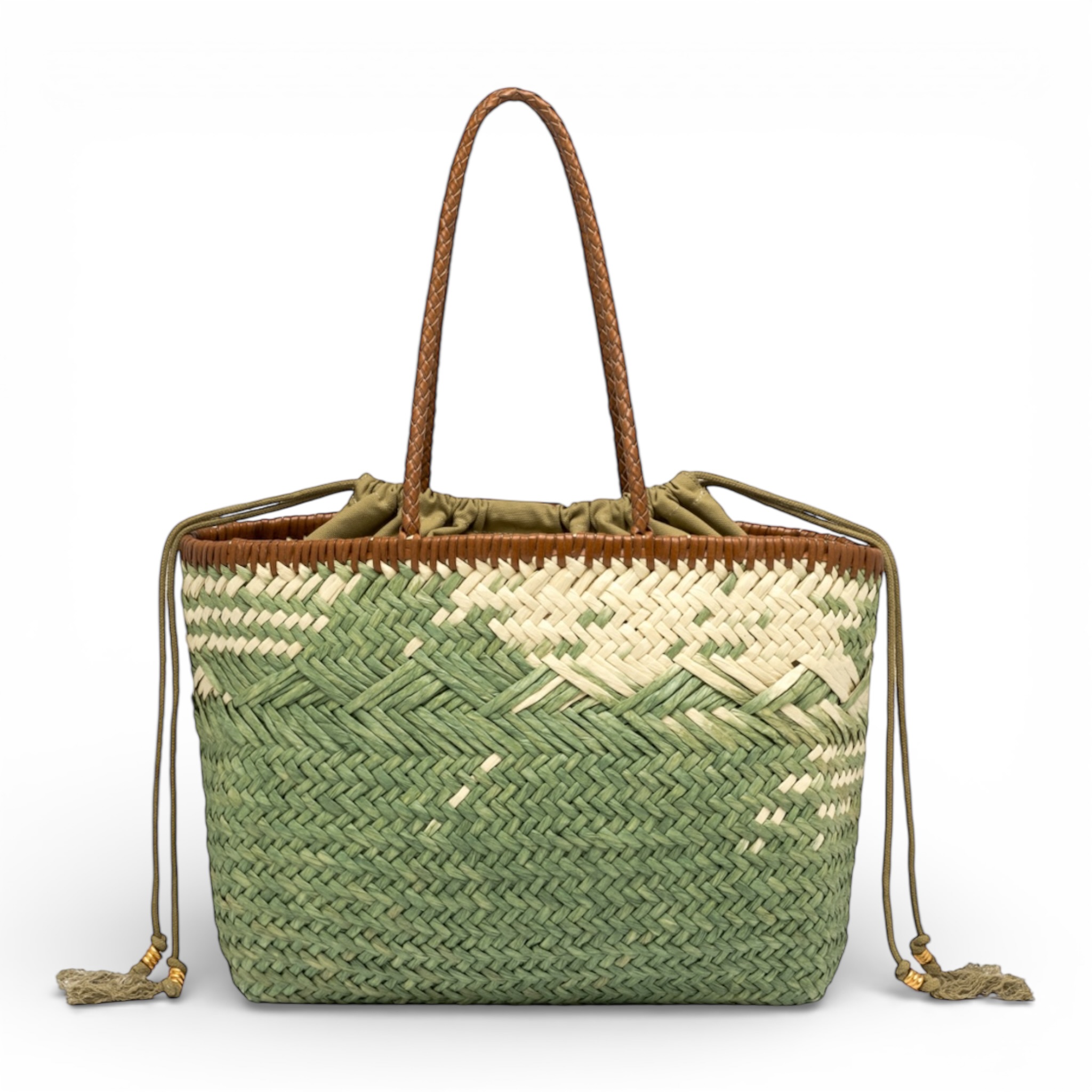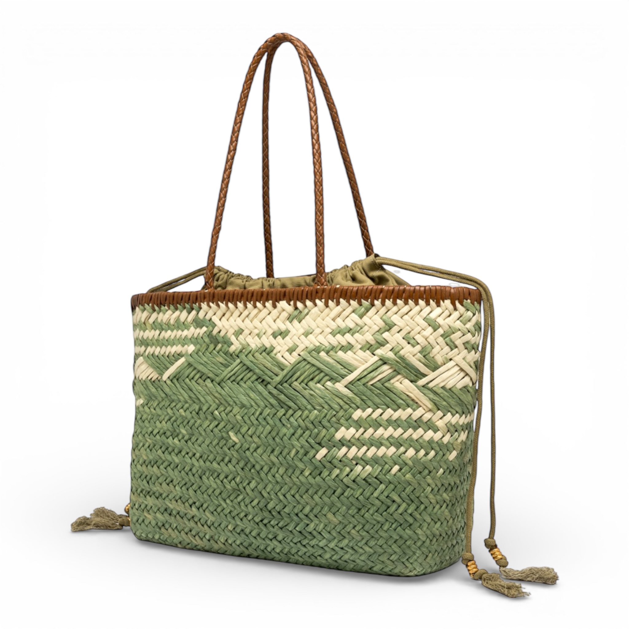 Borsa Gianni Chiarini in paglia intrecciata naturale pistacchio.