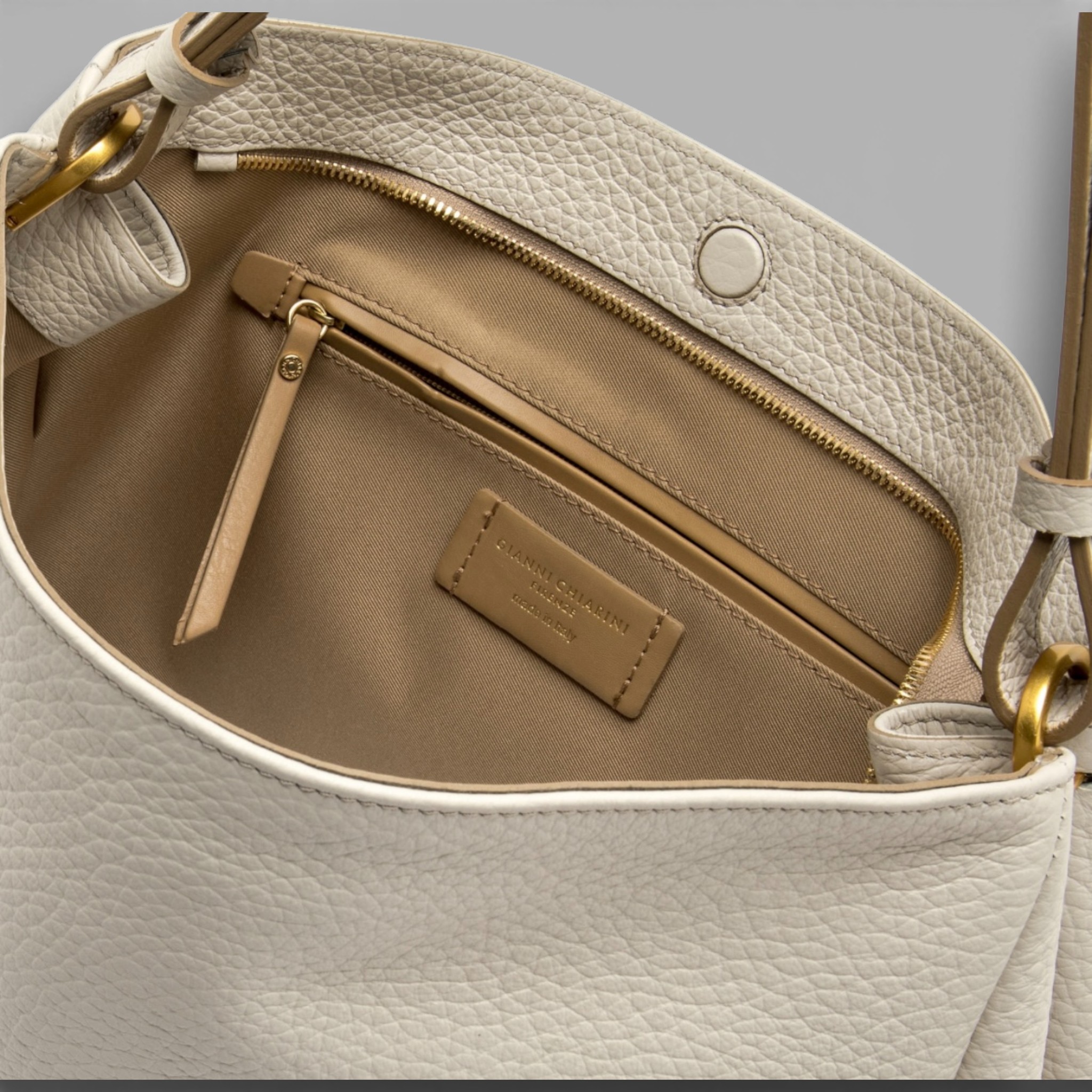 Cecile by Gianni Chiarini Firenze si distingue per il suo design minimalista e le linee essenziali. Realizzata in pelle grana maxi, presenta una silhouette a cartella, perfetta per donne dinamiche che desiderano combinare funzionalità e stile. È dotata di un manico superiore regolabile per diverse opzioni di portabilità. L'interno ampio include un scomparto principale e una chiusura superiore con patta e bottone magnetico. Dimensioni: 38x28x14 cm.