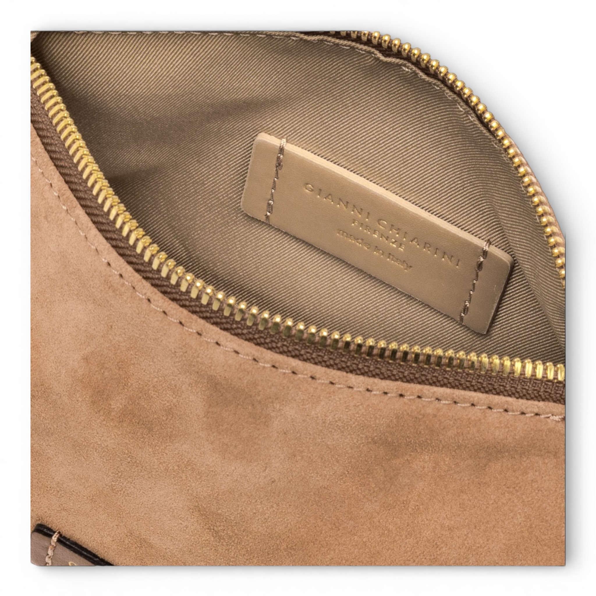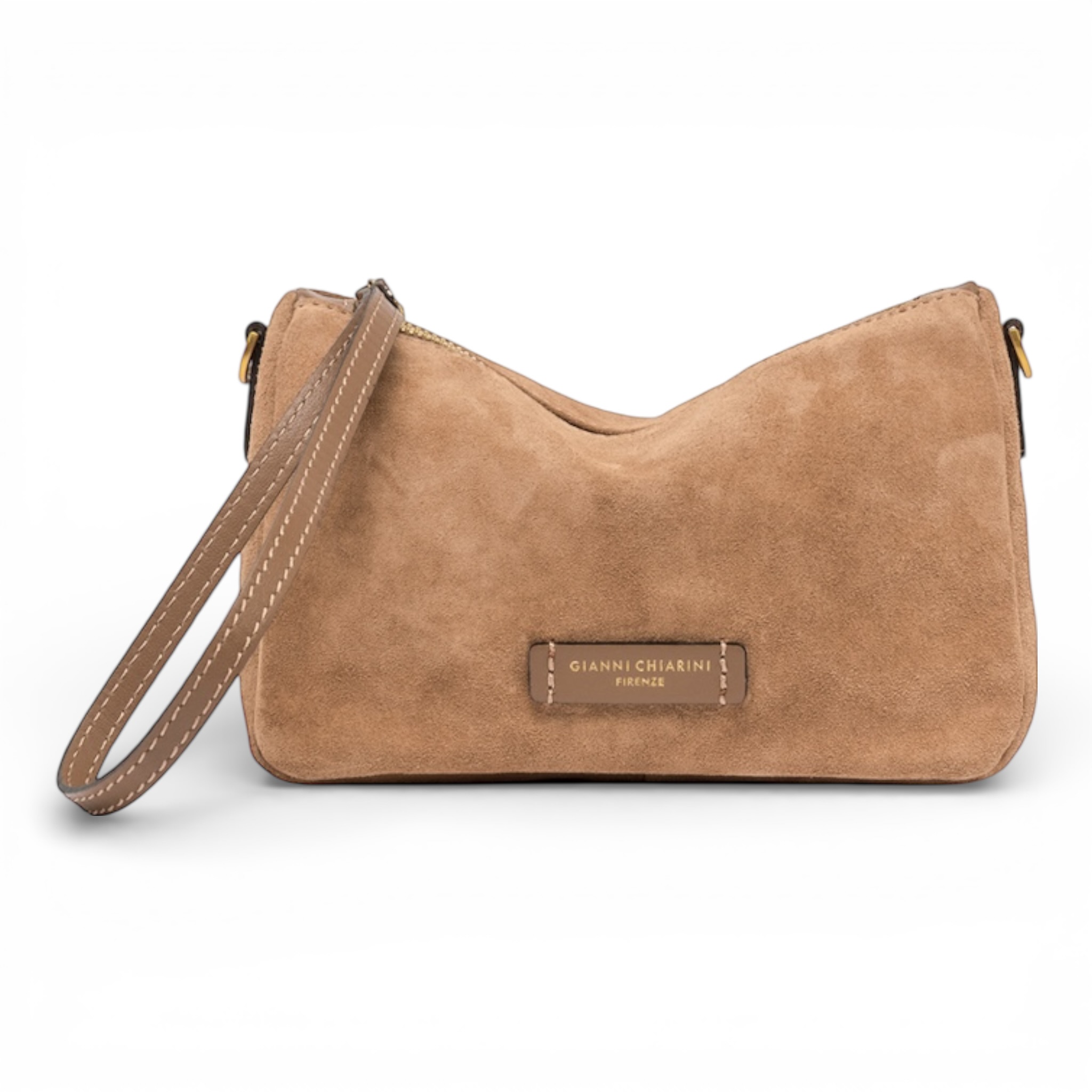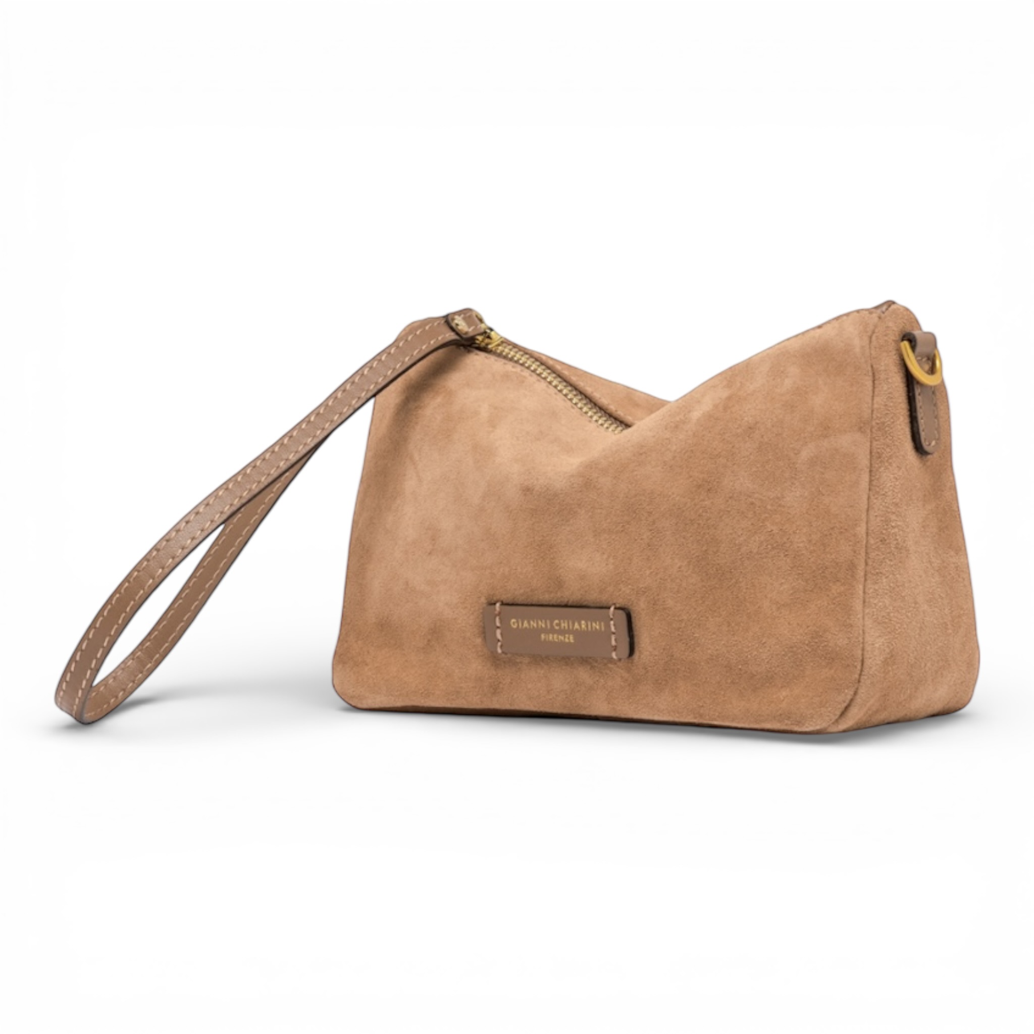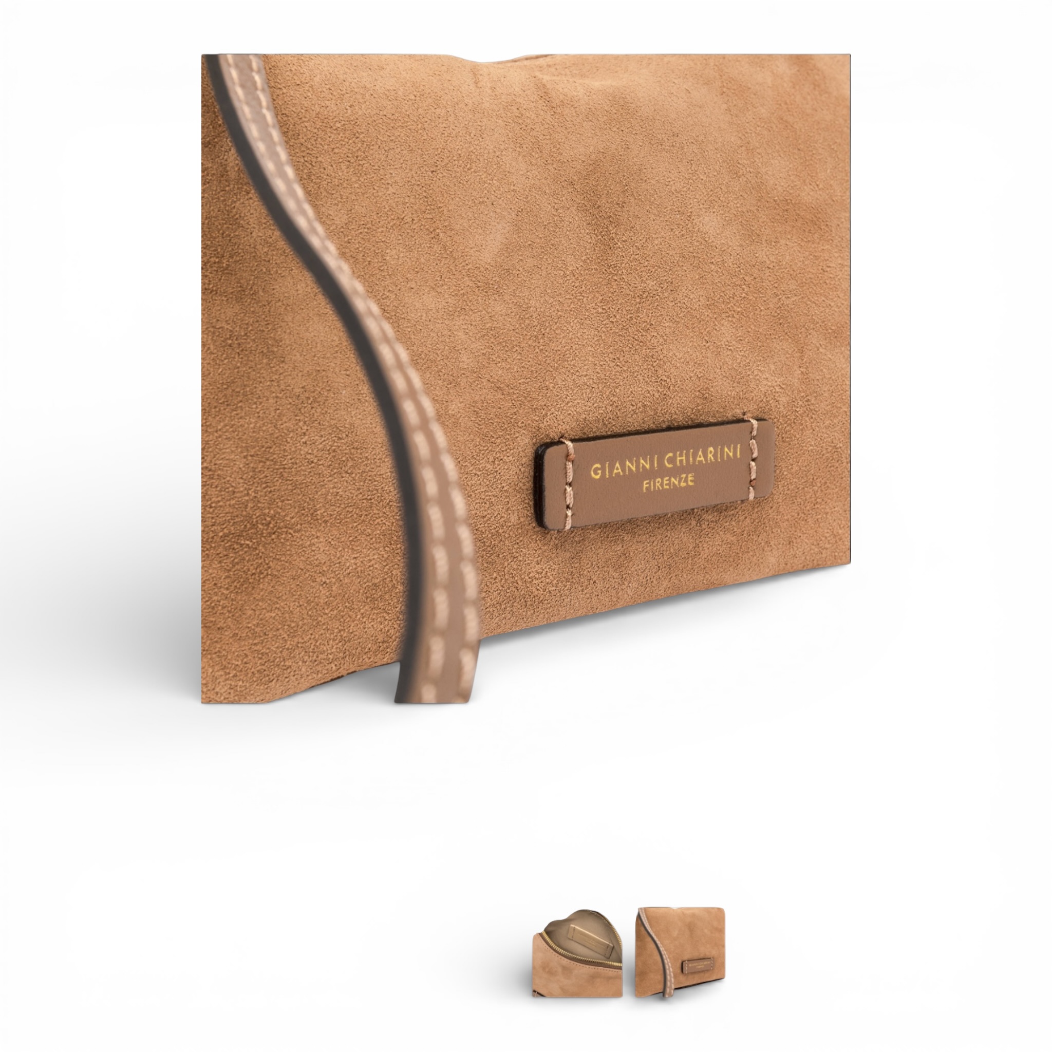 Pochette Gianni Chiarini in camoscio colore caramello.