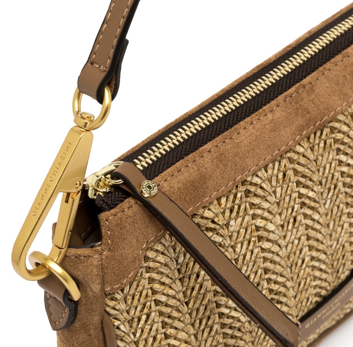 Tracolla Gianni Chiarini in paglia intrcciata colore cuoio.