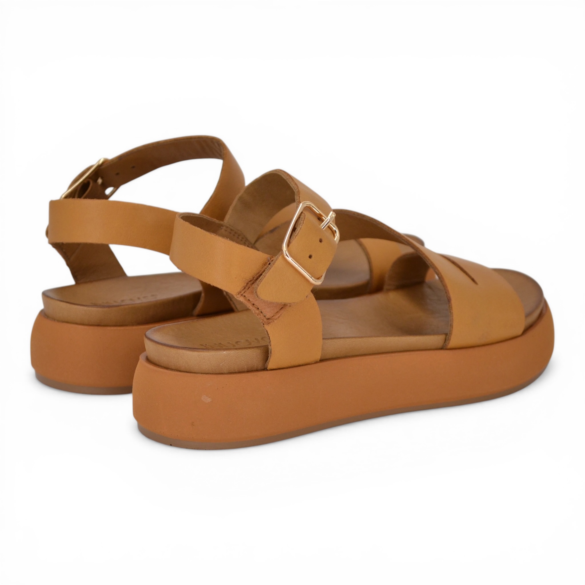 Sandalo donna Inuovo in pele colore cuoio.