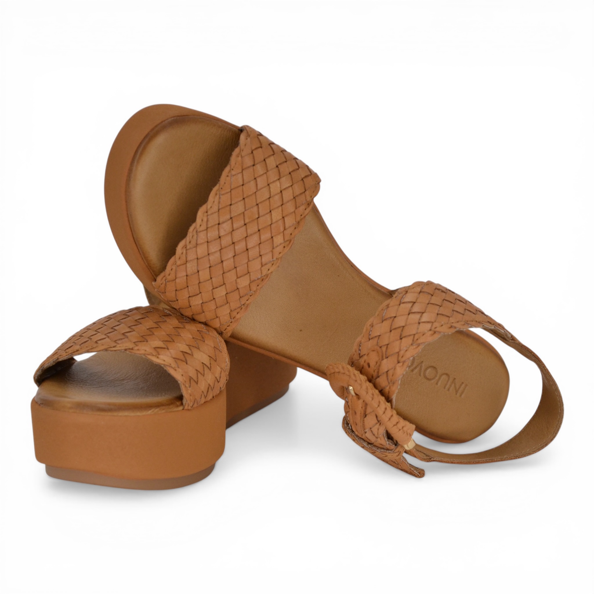 Sandalo donna Inuovo in pelle colore cuoio.