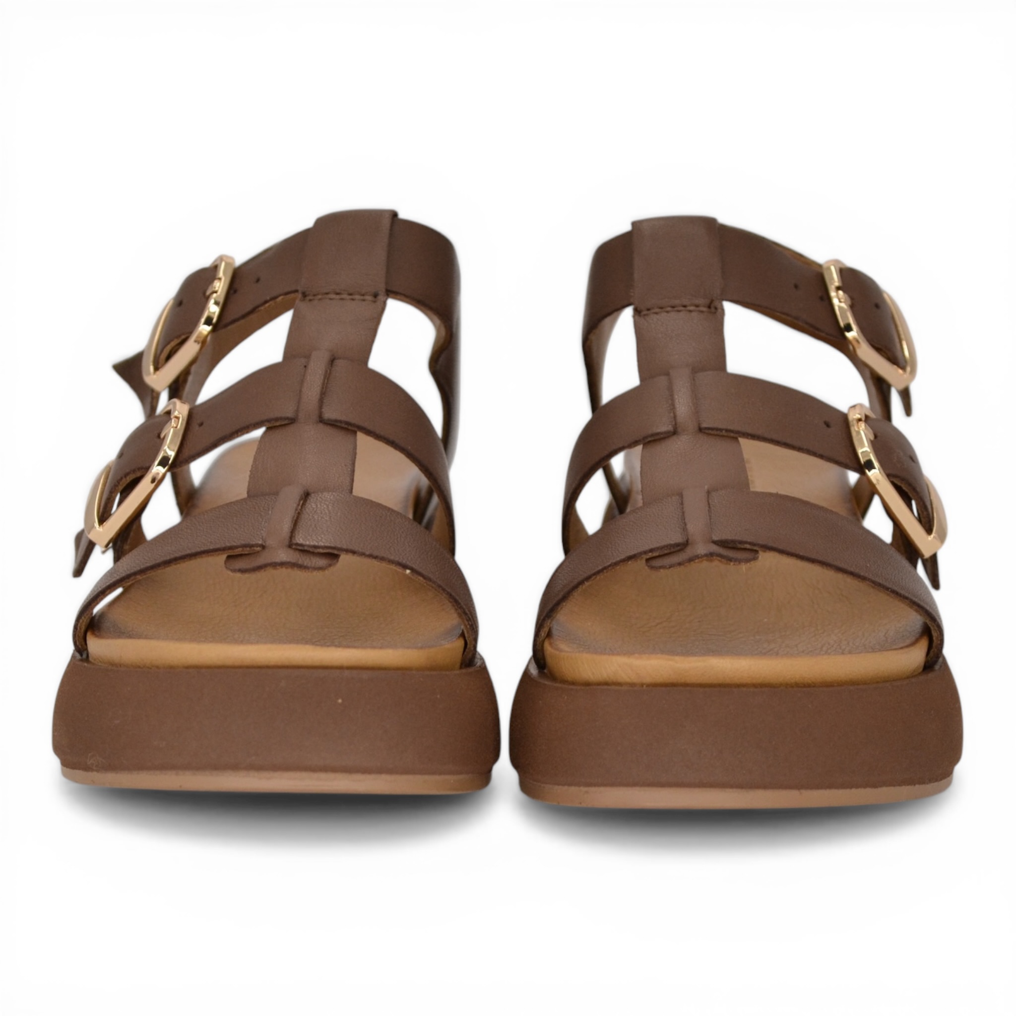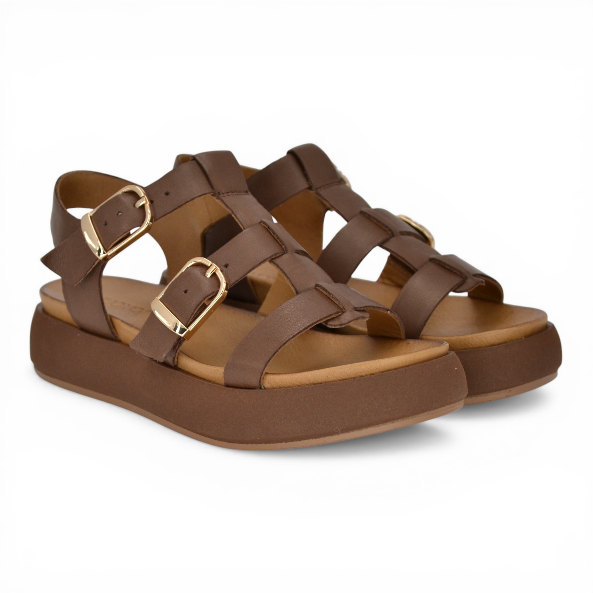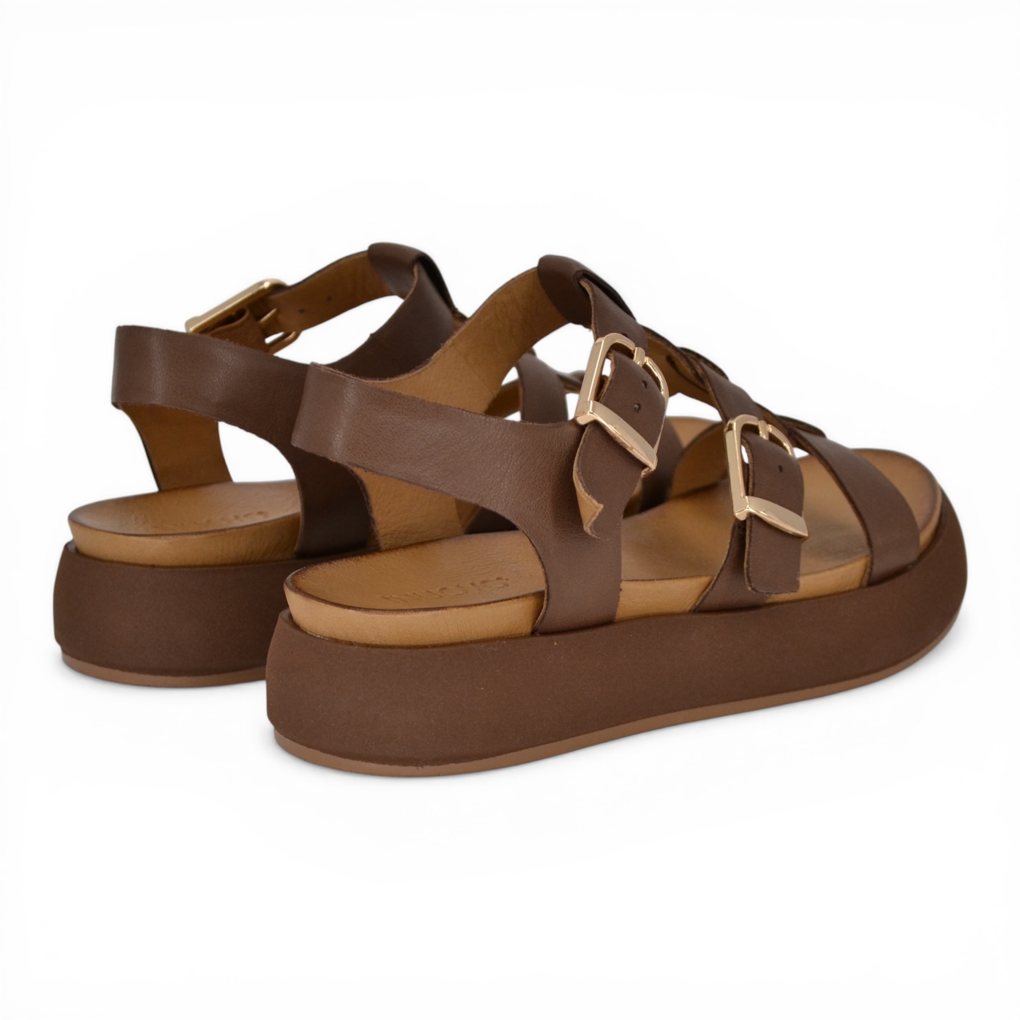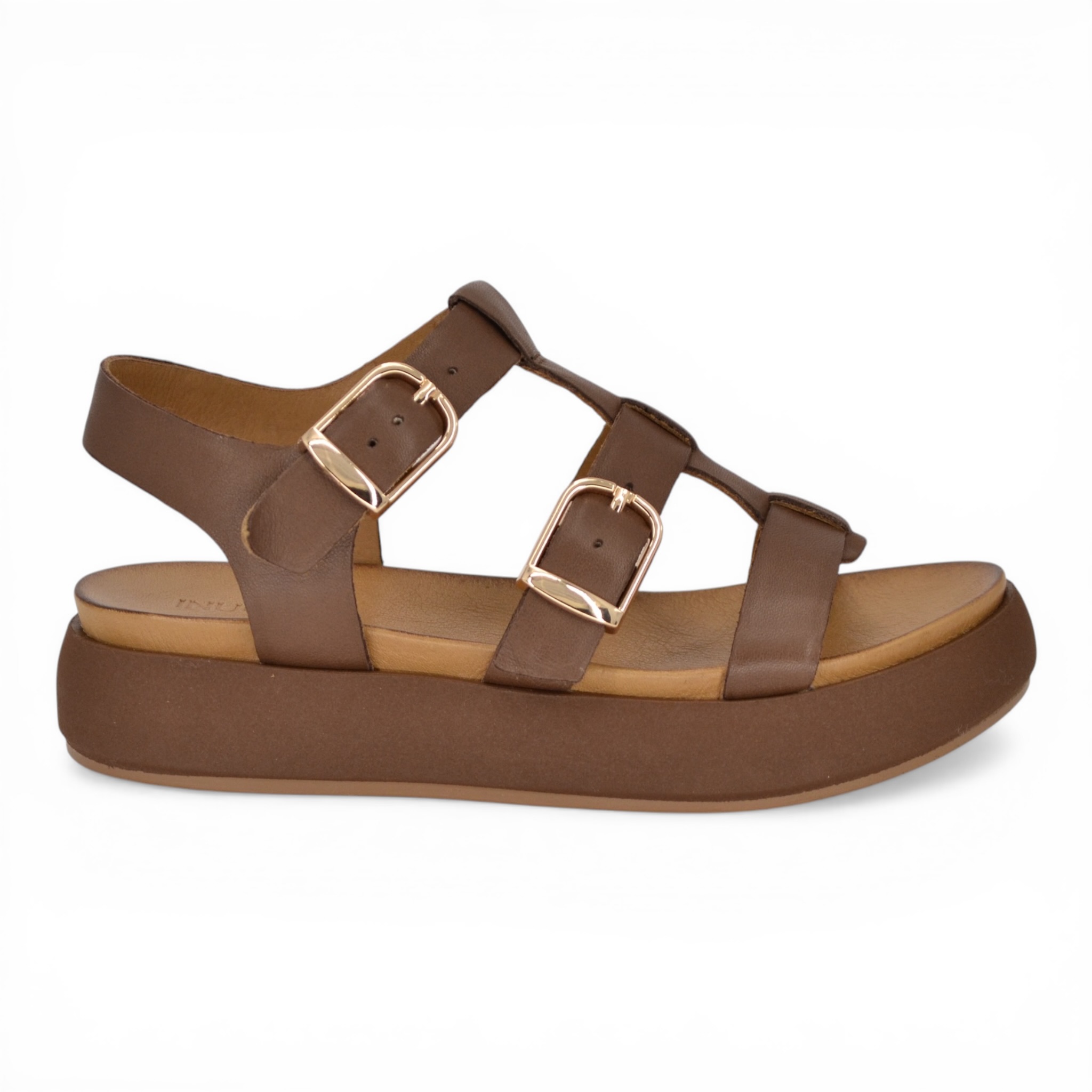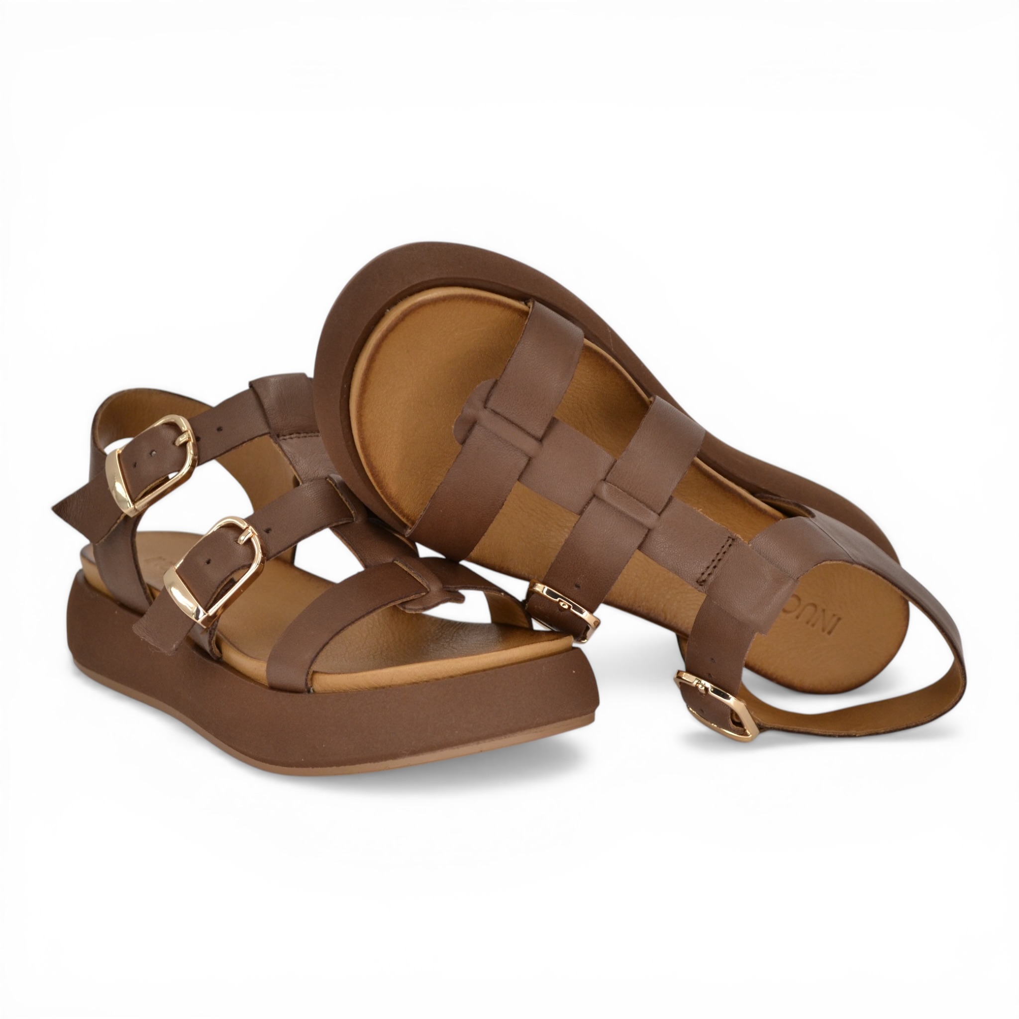 Sandalo donna Inuovo in pelle colore marrone.