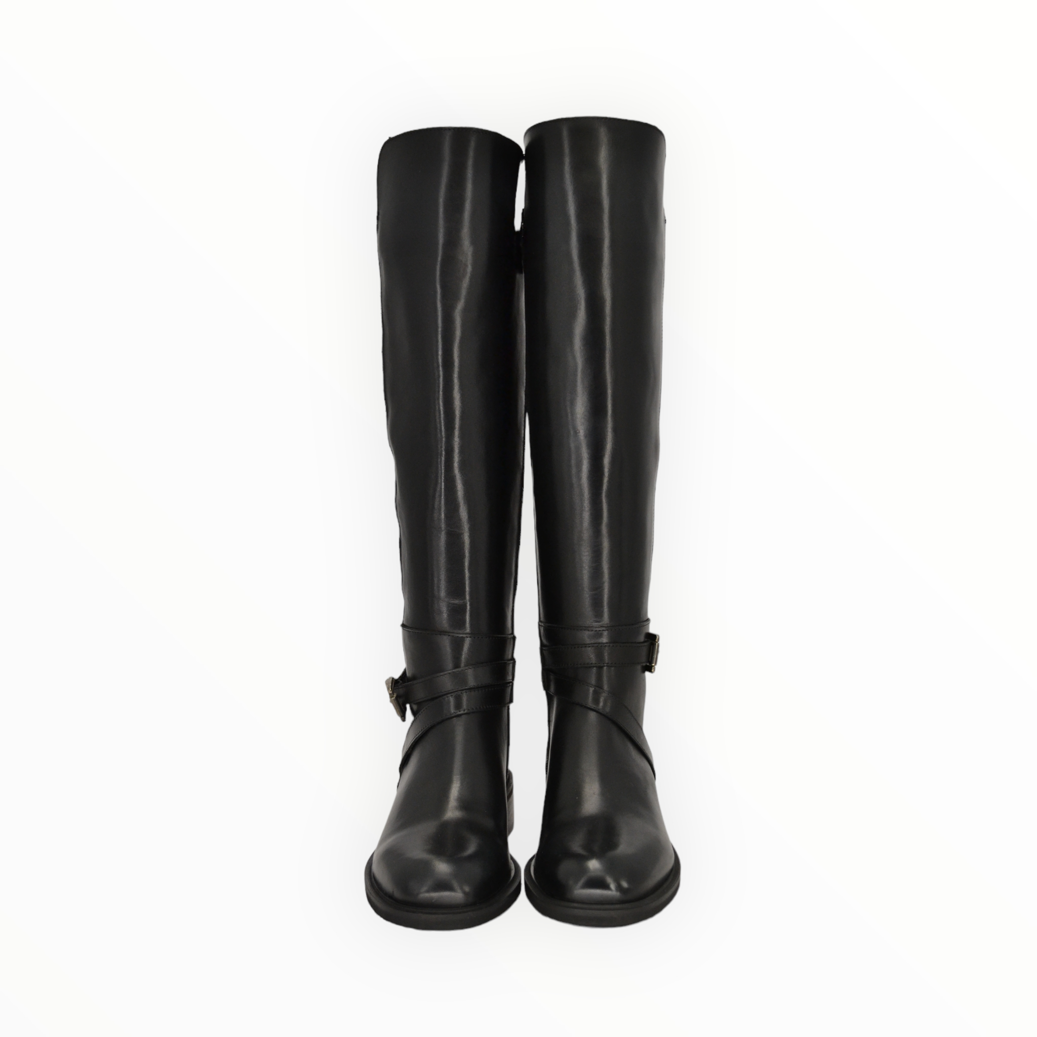 Tomaia in pelle, cintine alla caviglia, fodera interna e sottopiede in pelle, fondo in gomma, altezza tacco cm.4.