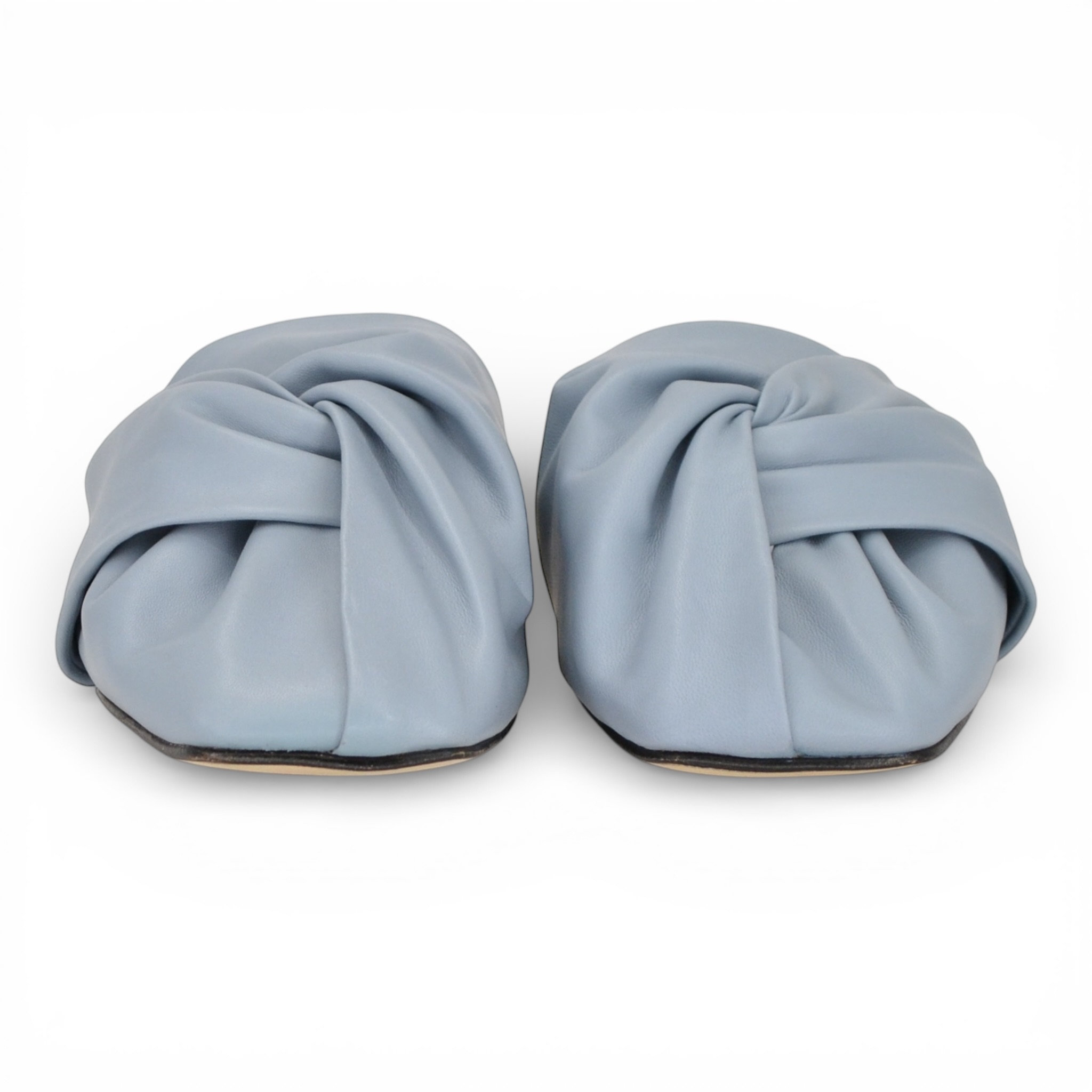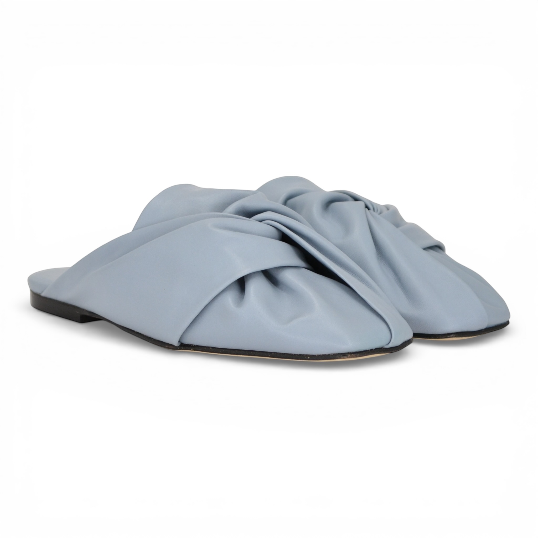 Tomaia in pelle intrecciata, fodera interna in pelle, morbido sottopiede in pelle imbottito, suola in cuoio, altezza tacco cm.2,5.