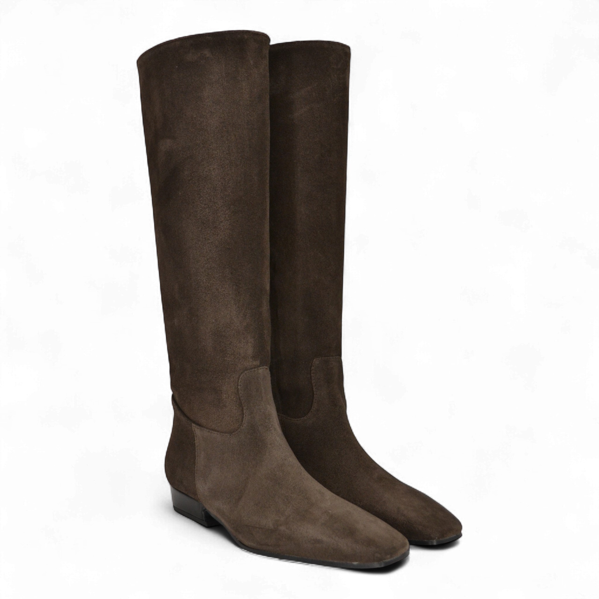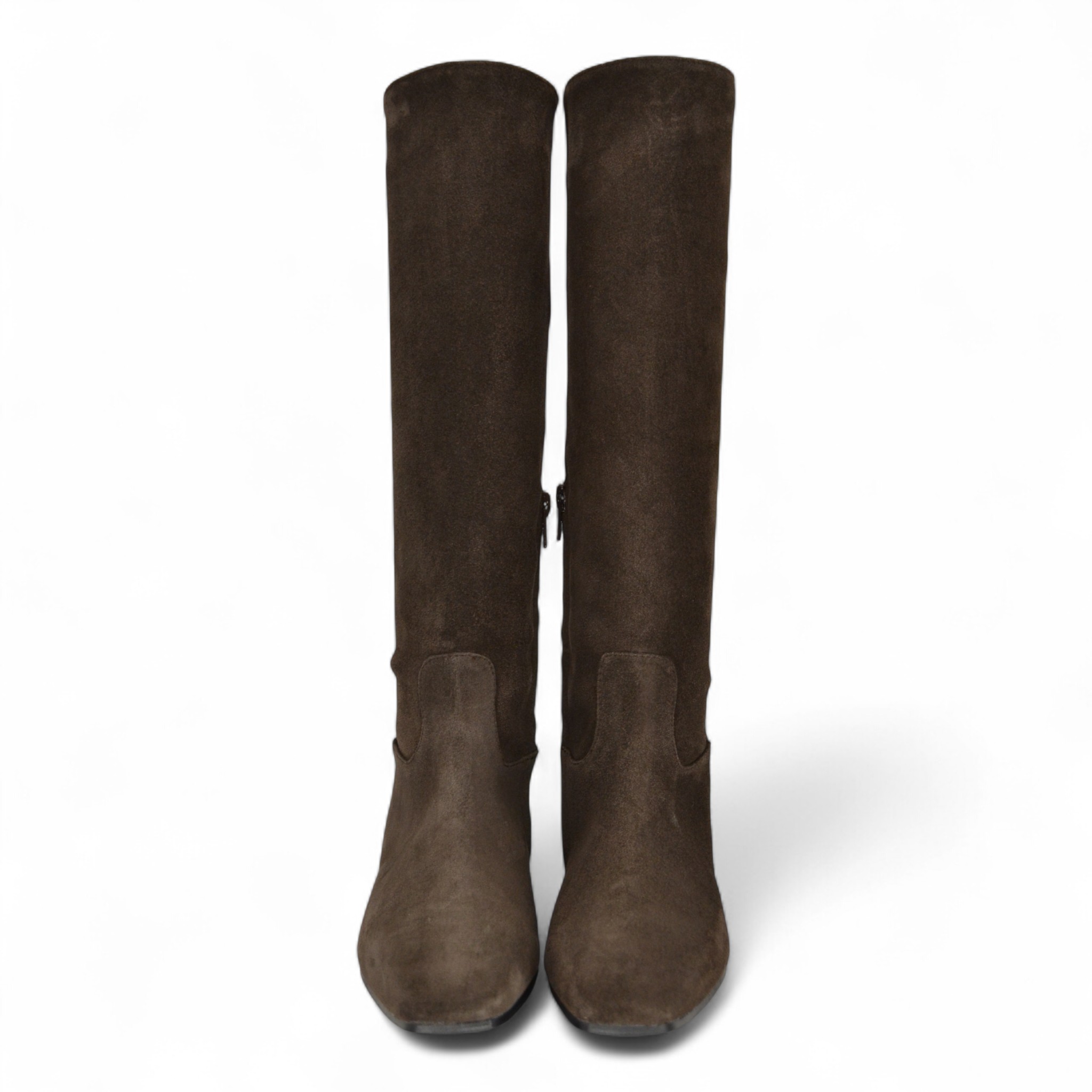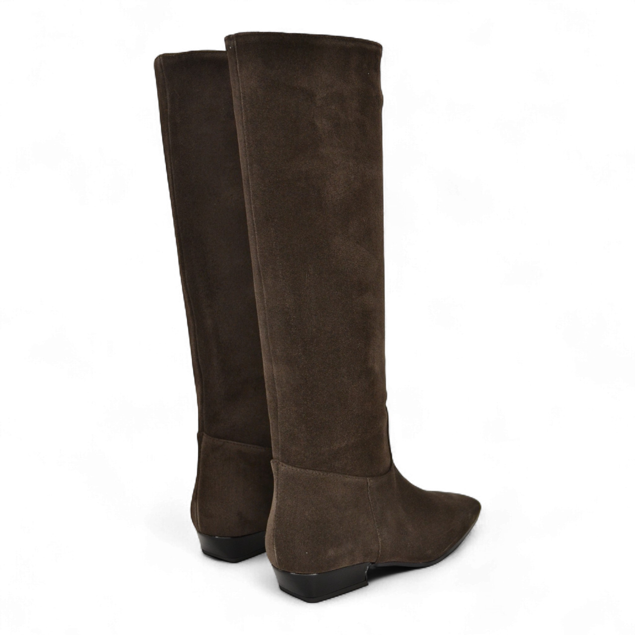 Tomaia in camoscio, fodera interna e sottopiede in pelle, suola in gomma, altezza tacco cm.2.
