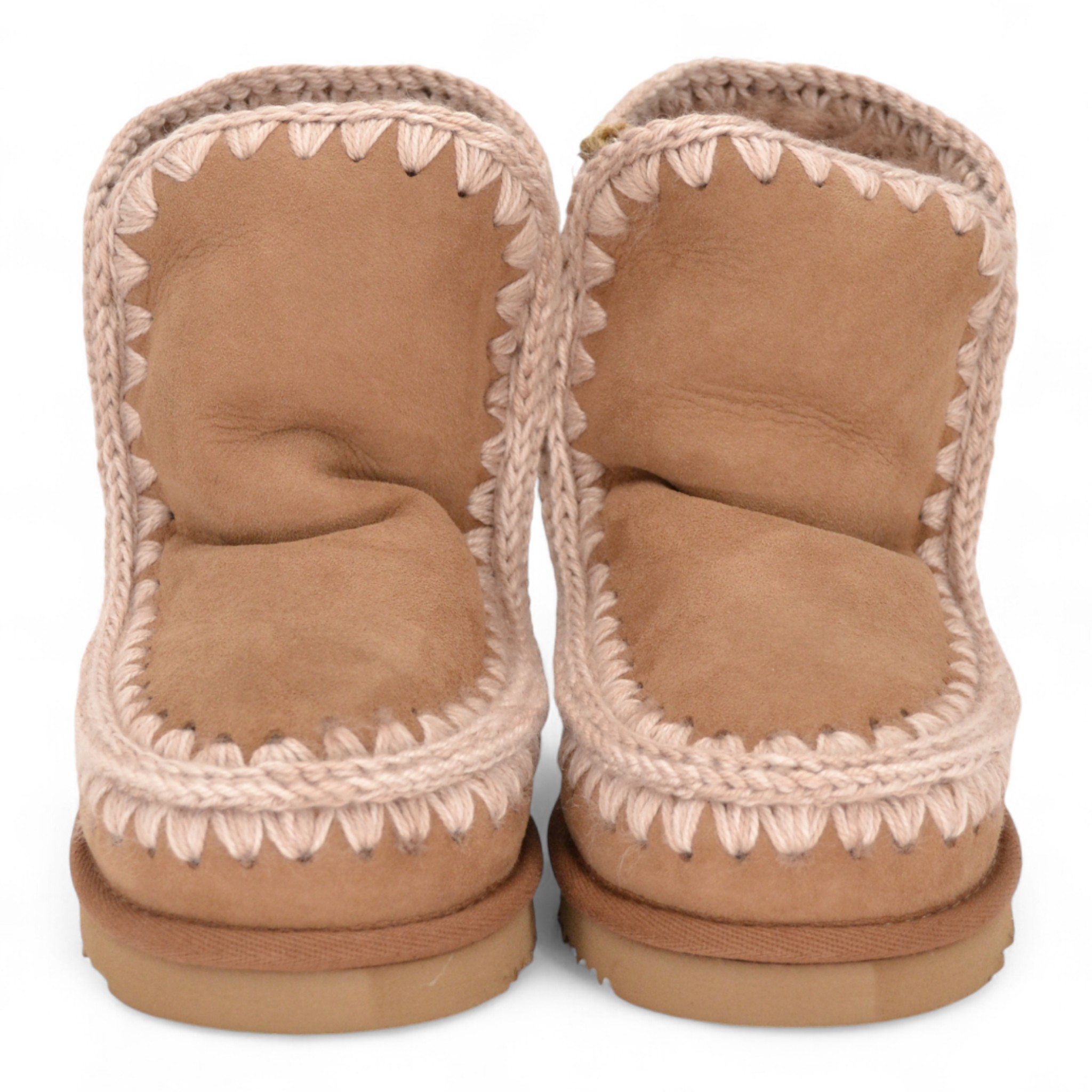 Tomaia in splendido e caldo montone double-face, con cuciture in lana lavorate all'uncinetto, tallone rinforzato e una resistente suola esterna in EVA e gomma.