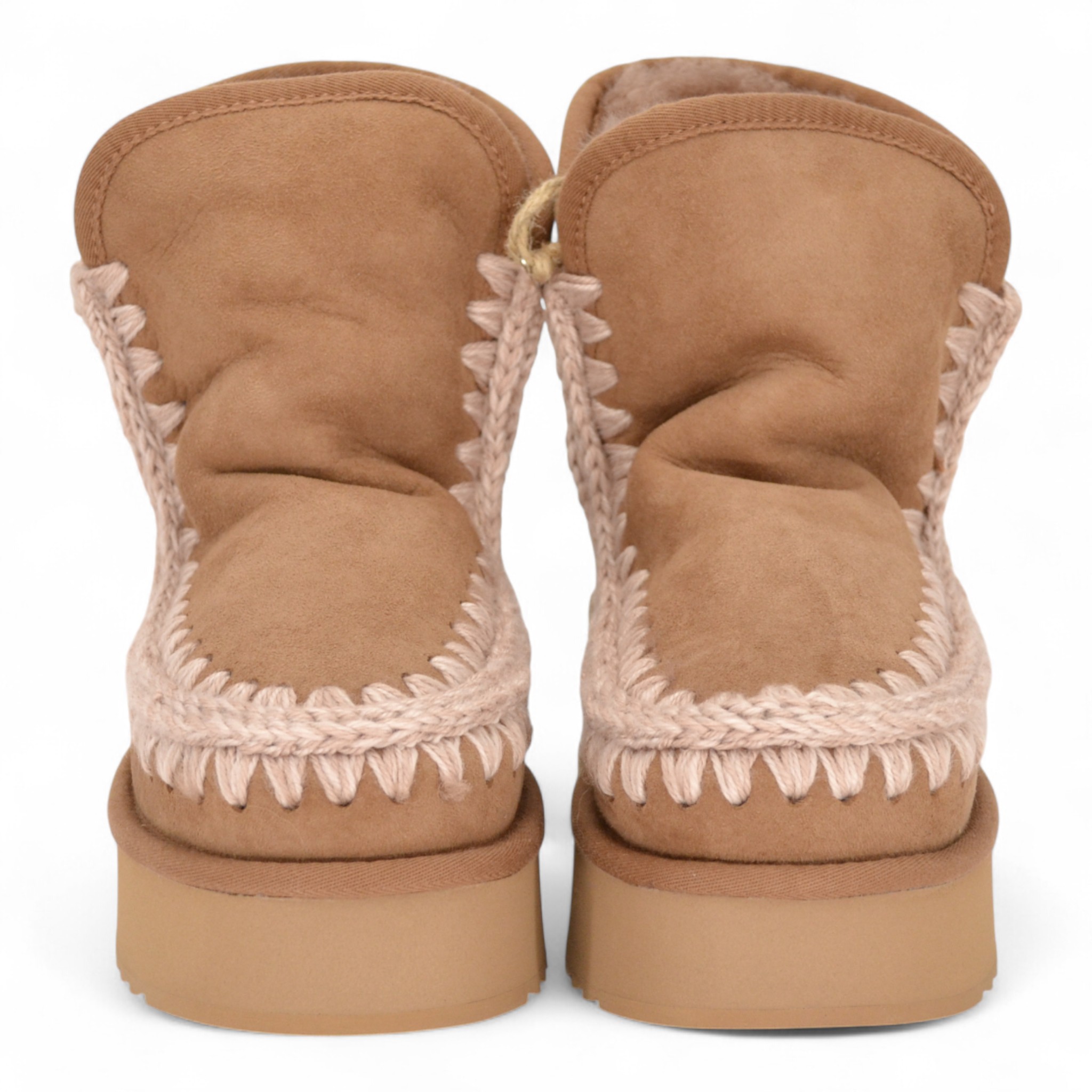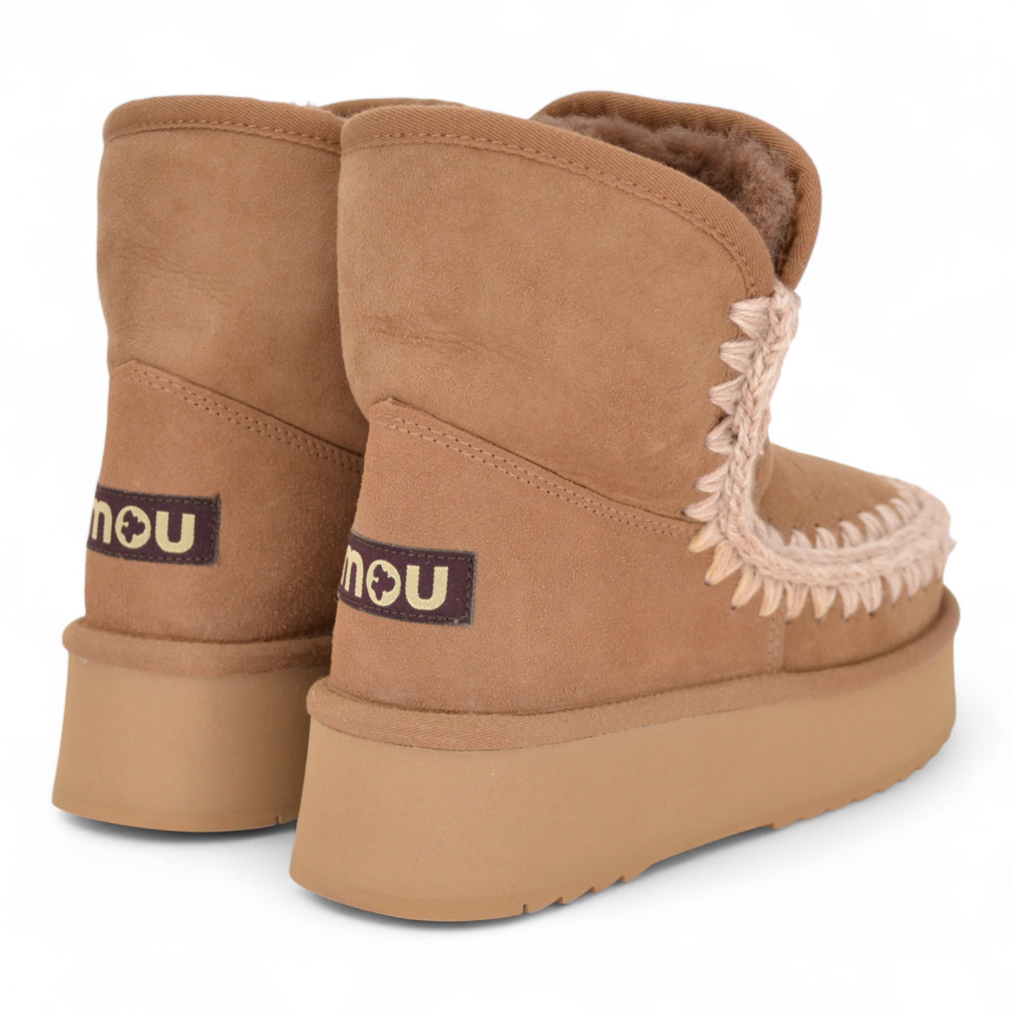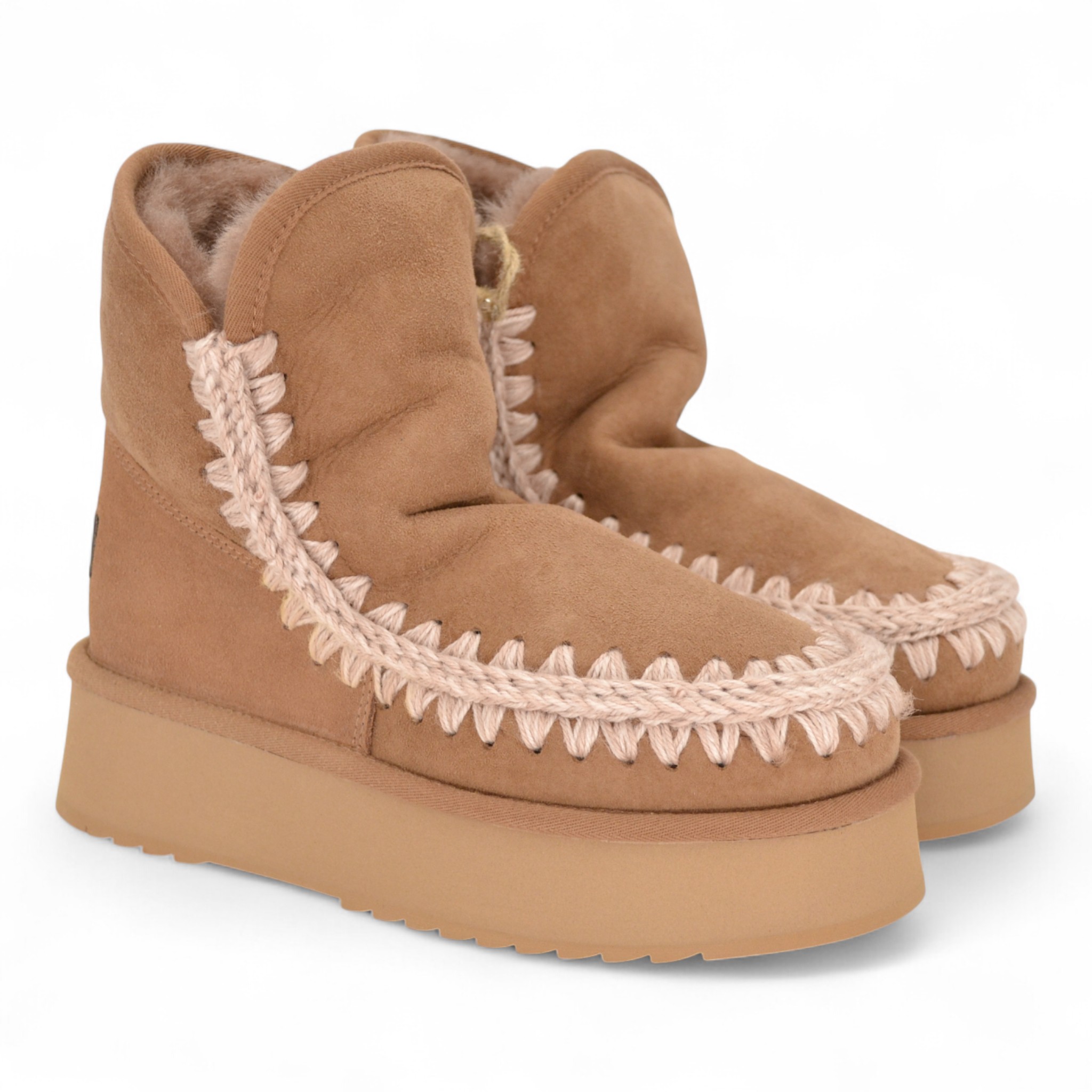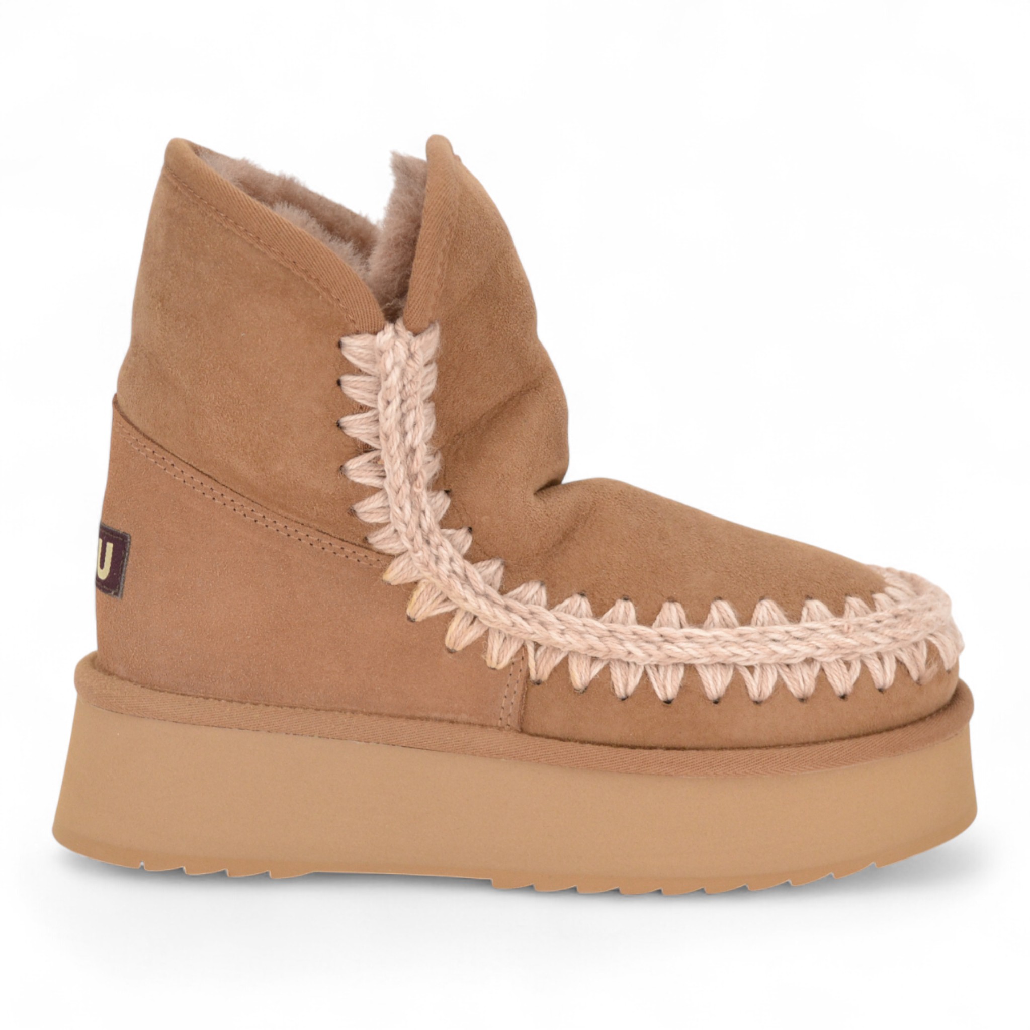 Tomaia in splendido e caldo montone double-face, con cuciture in lana lavorate all'uncinetto, tallone rinforzato e una resistente suola esterna in EVA e gomma.
