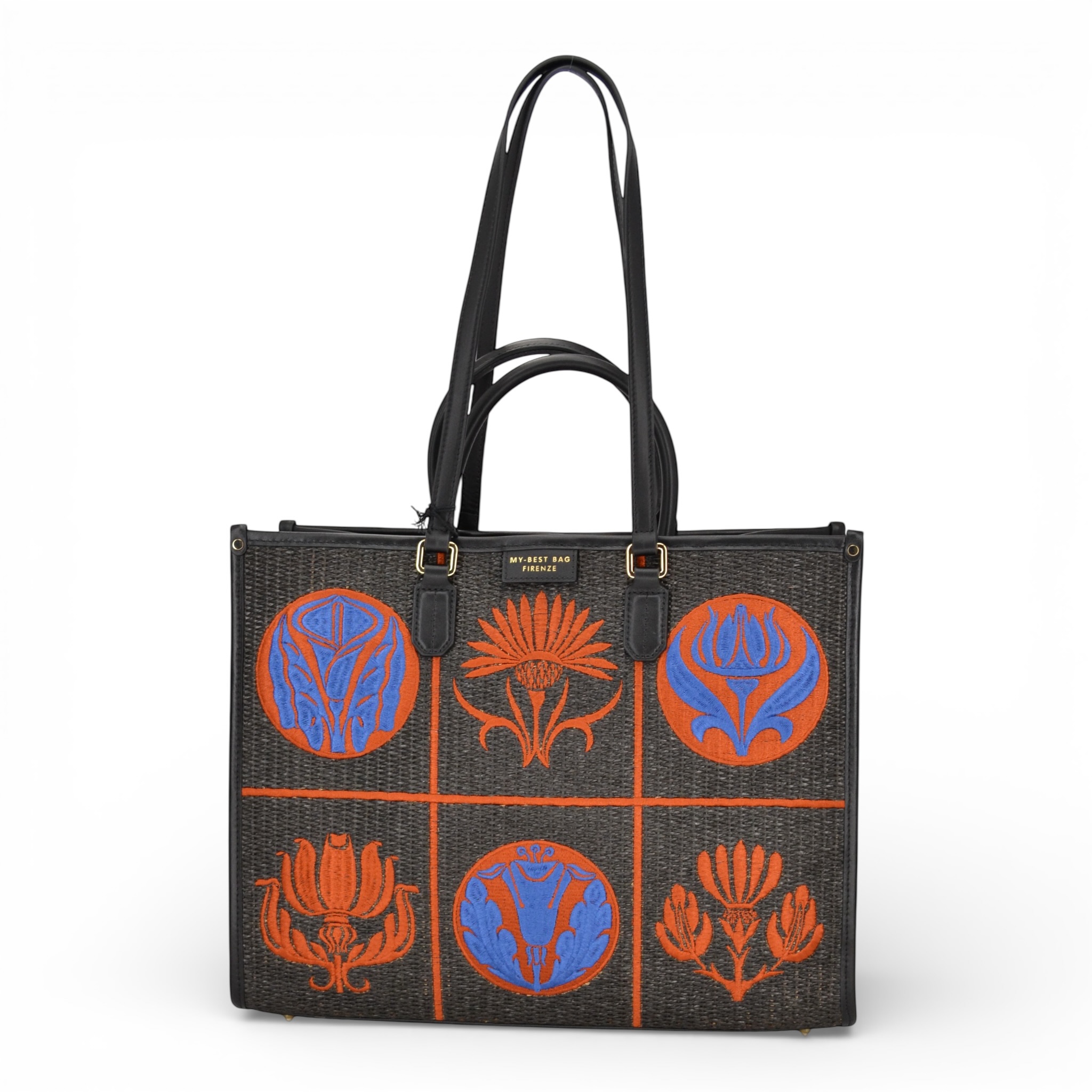Borsa My Best Bag in paglia intrecciata fantasia.