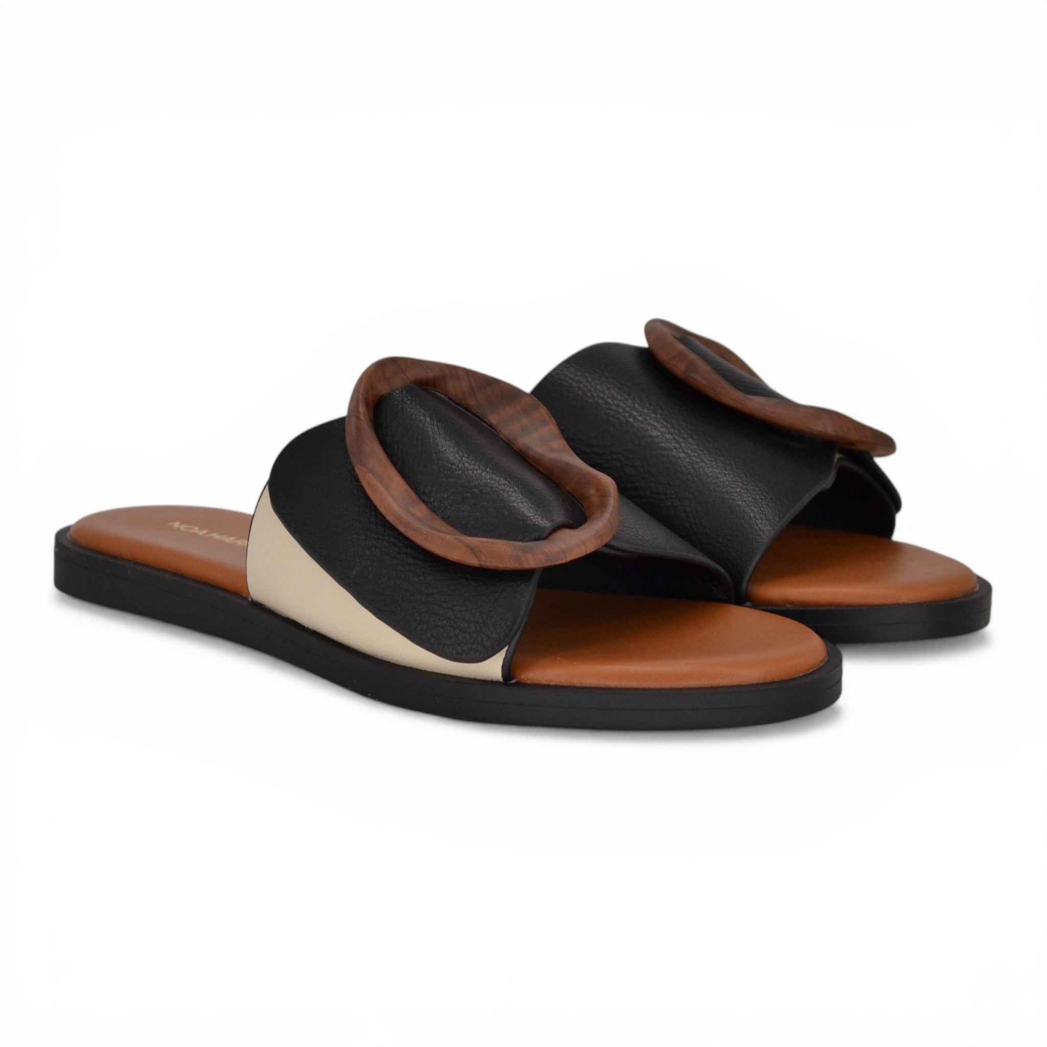 Ciabatta donna Noa Harmon in pelle colore nero e panna.