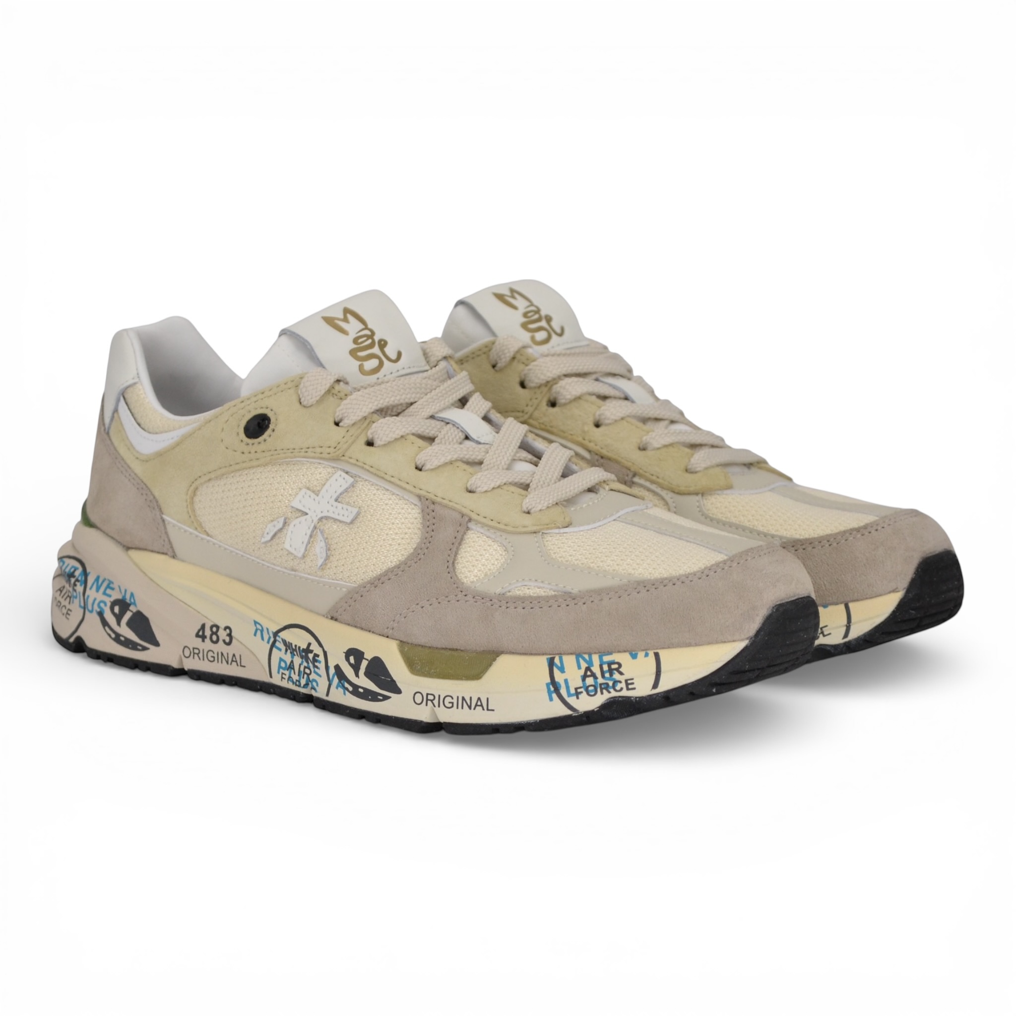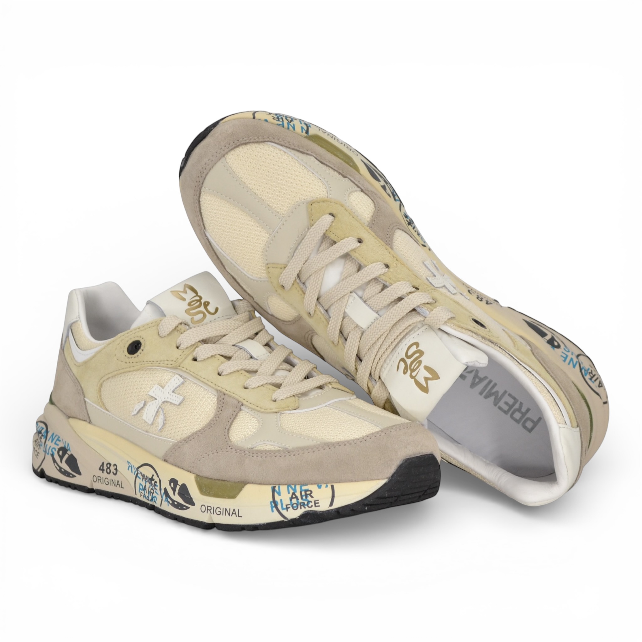 Sneaker Premiata uomo in nylon e camoscio colore bianco.