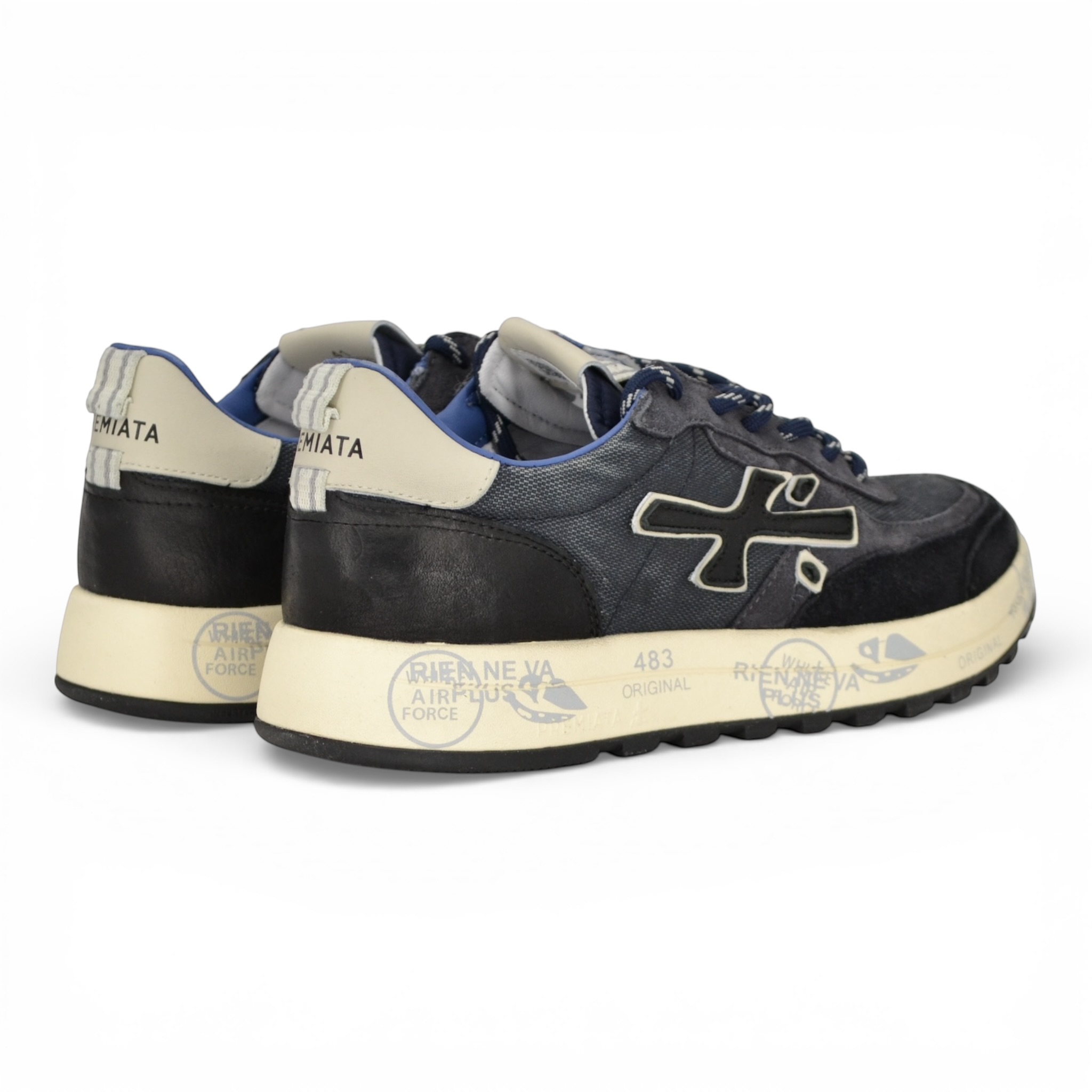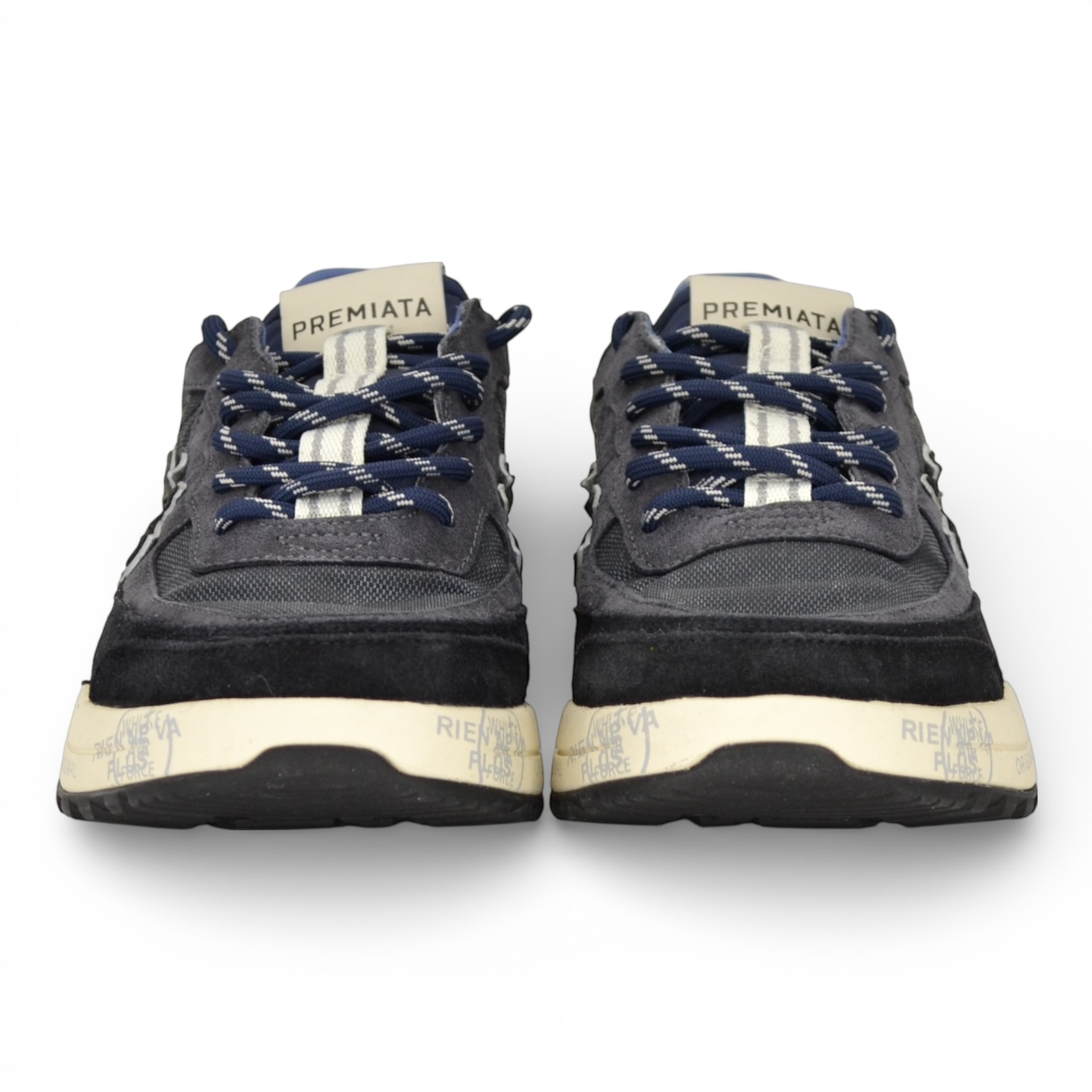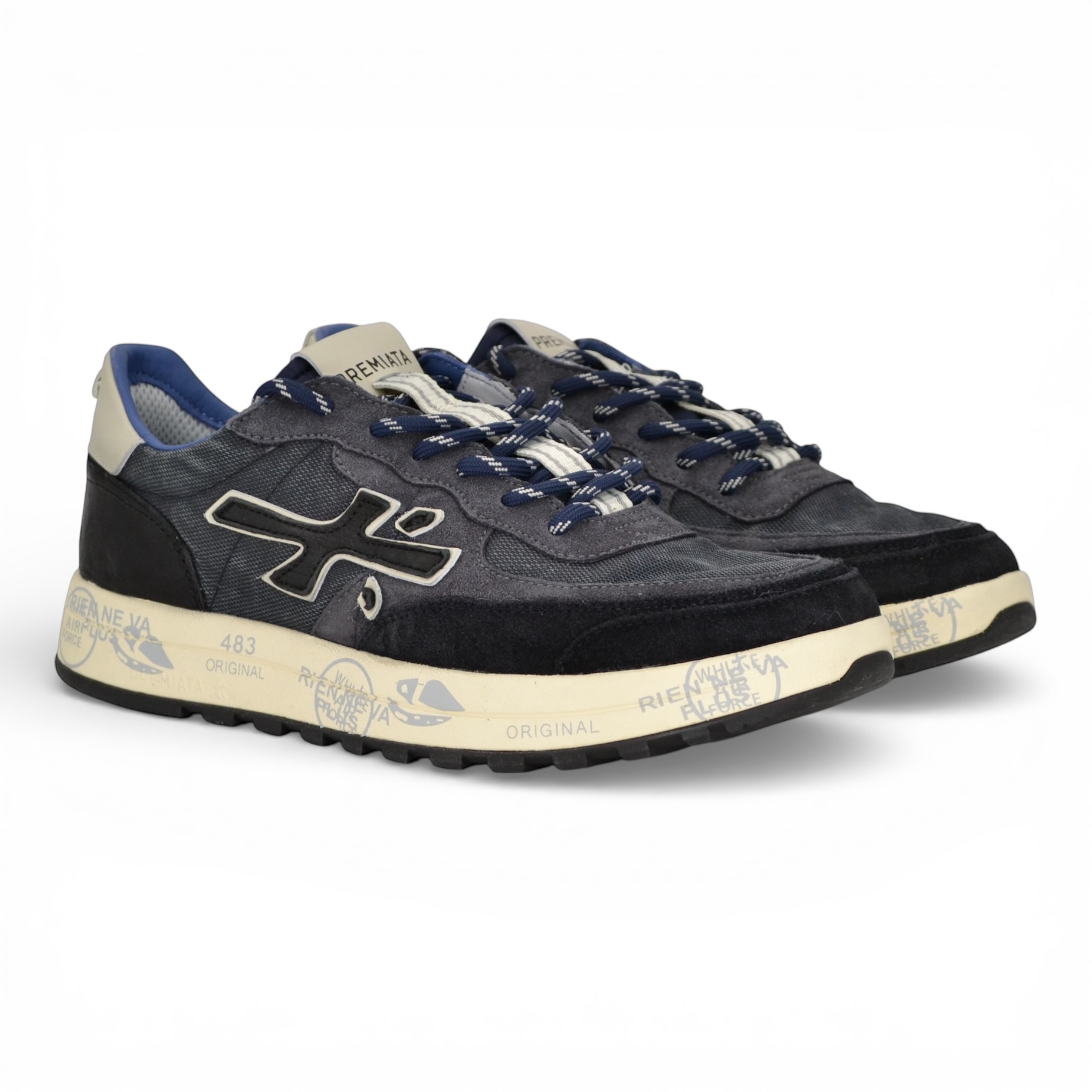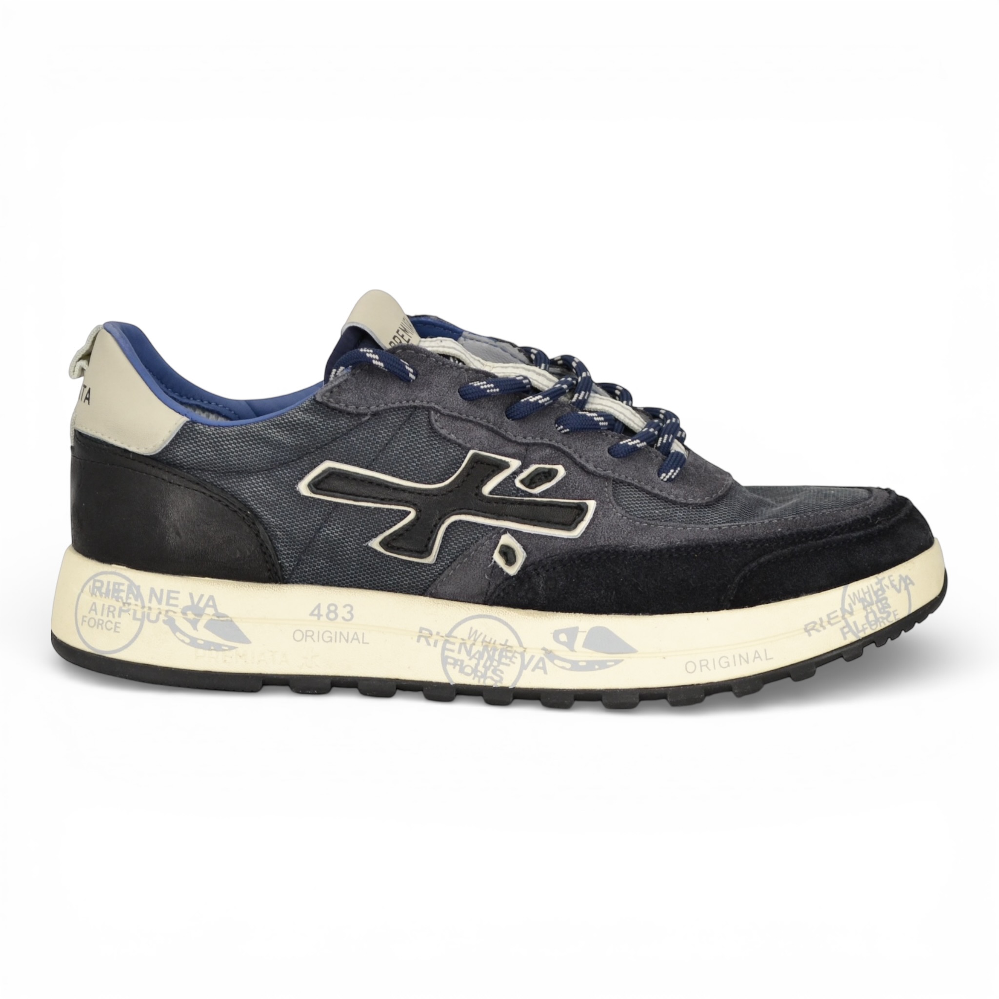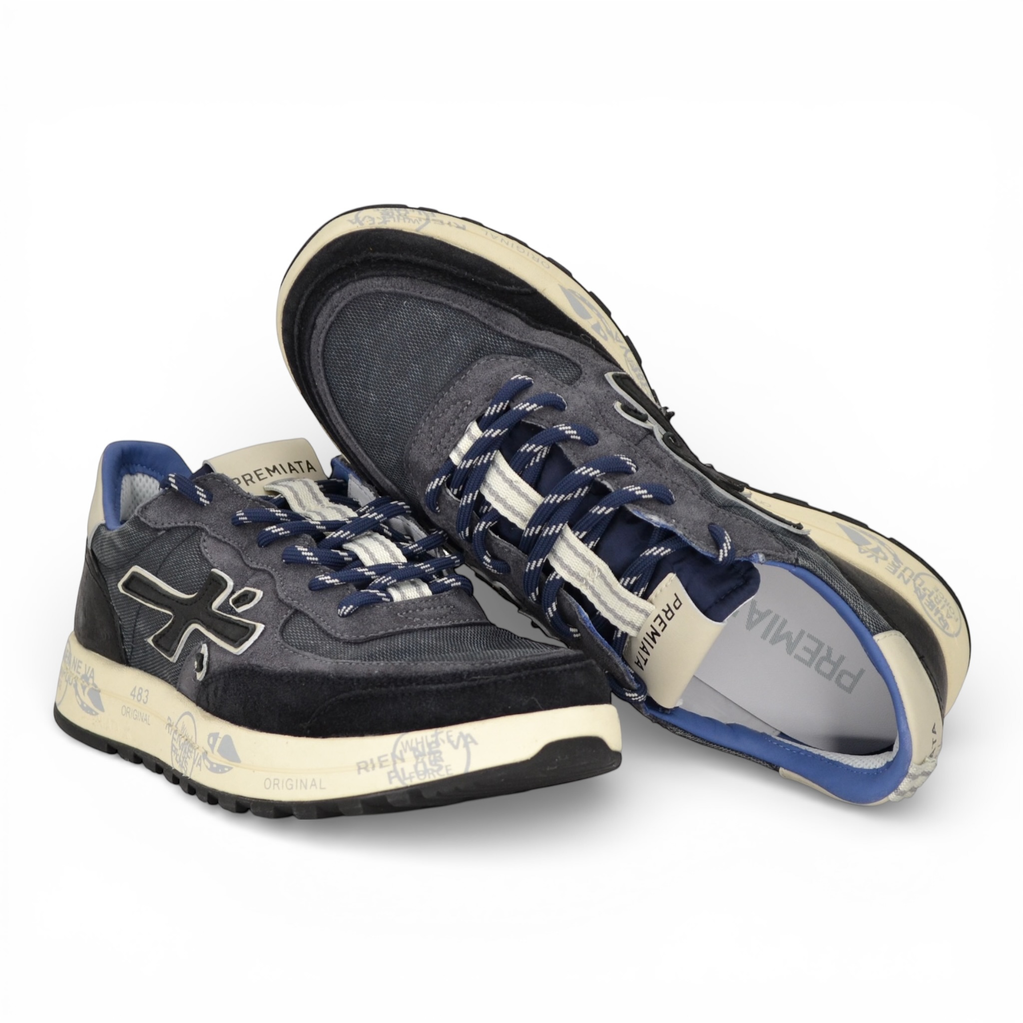 Sneaker Premiata uomo in nylon e camoscio colore blu.