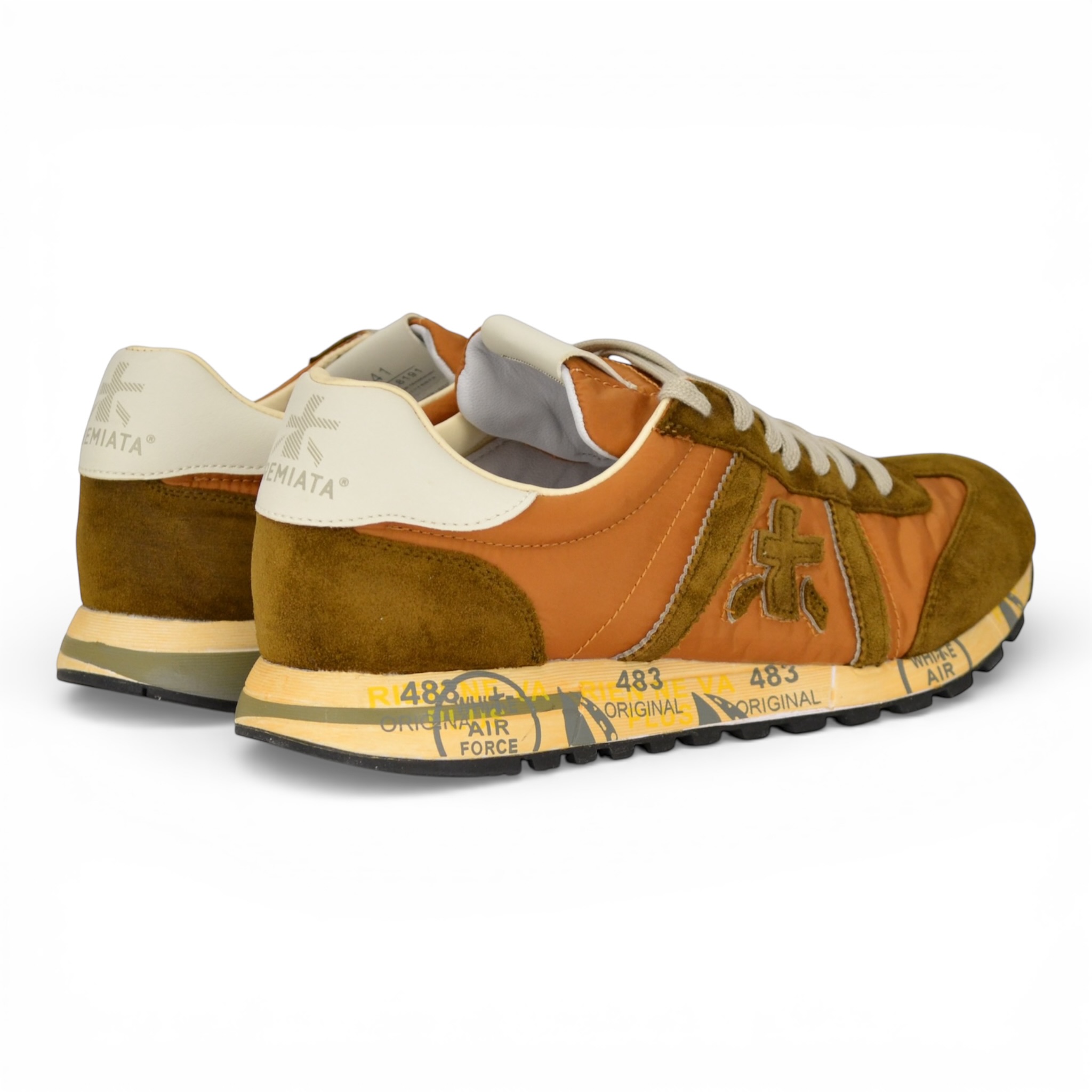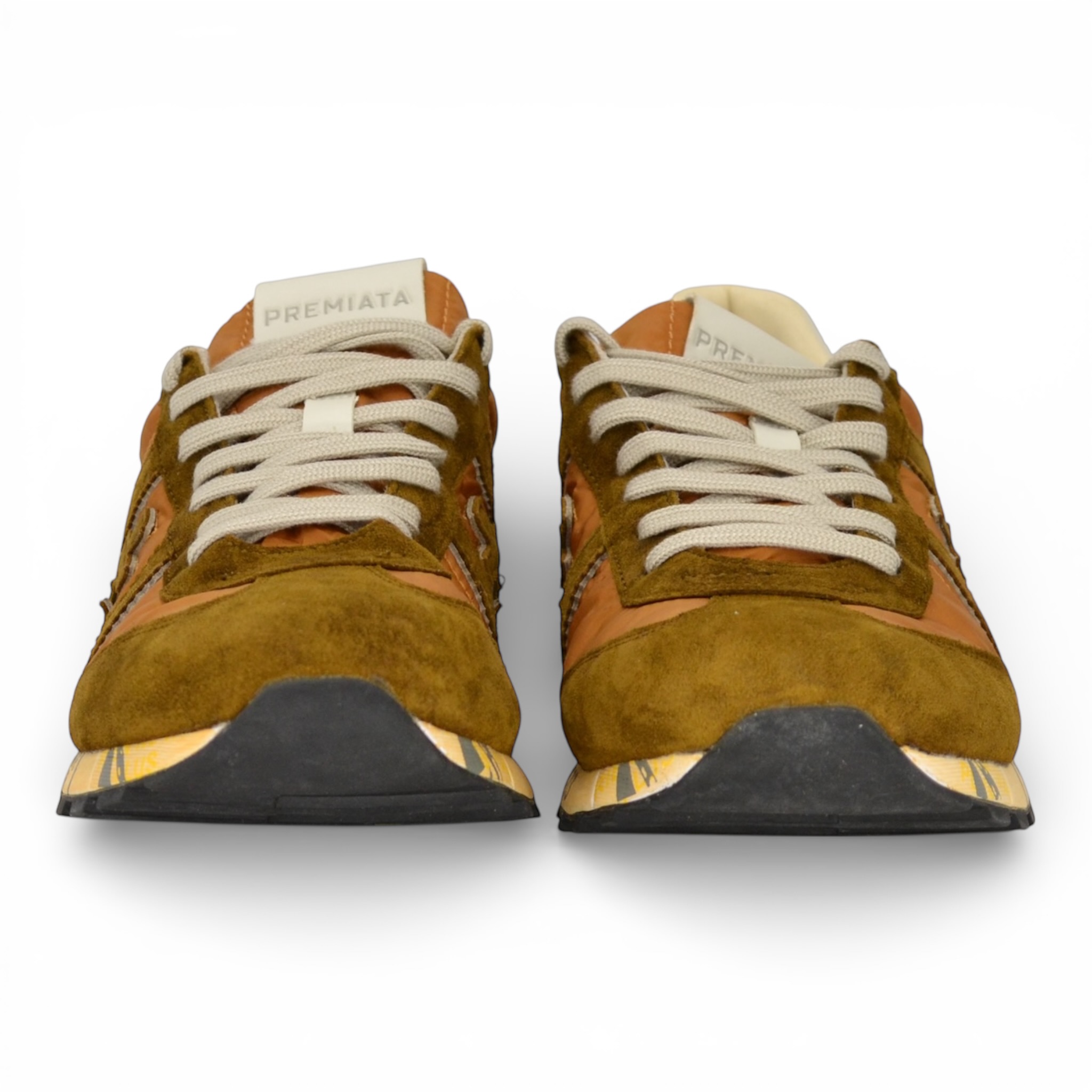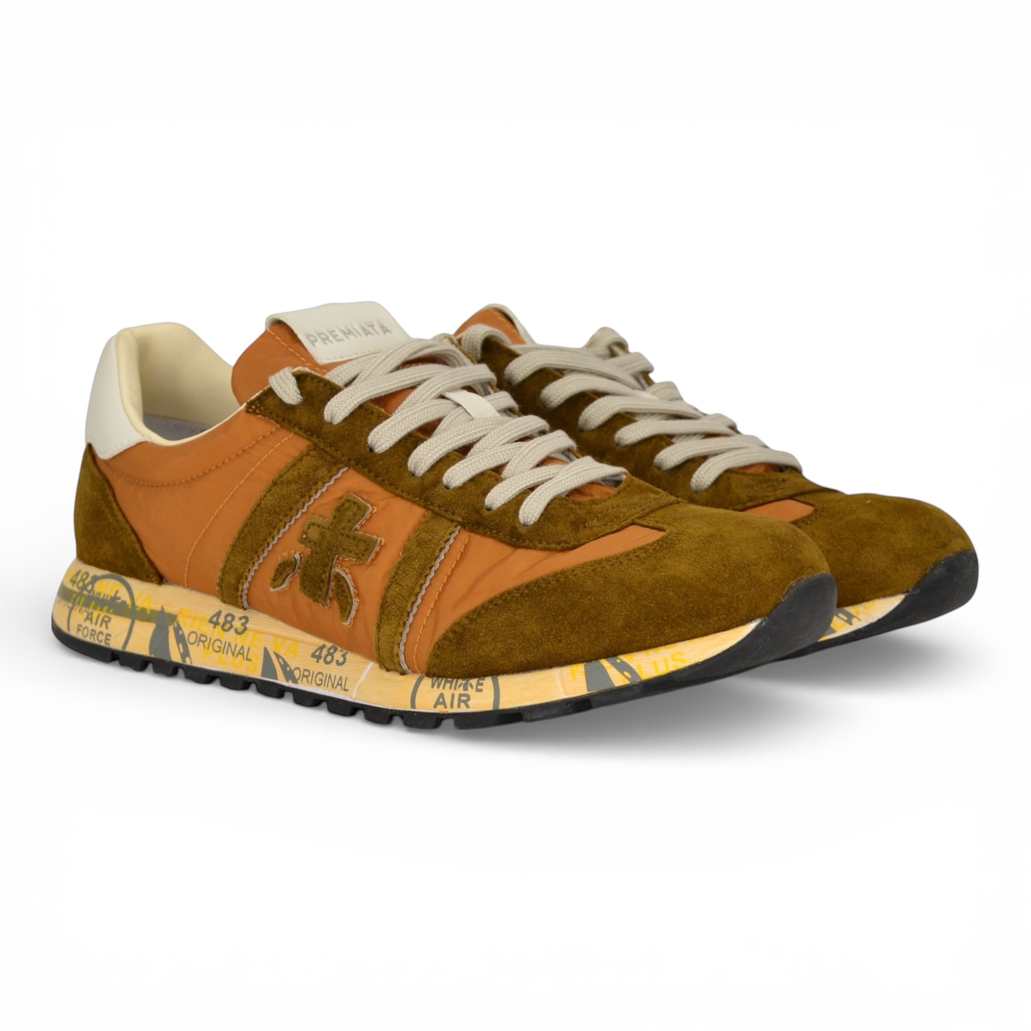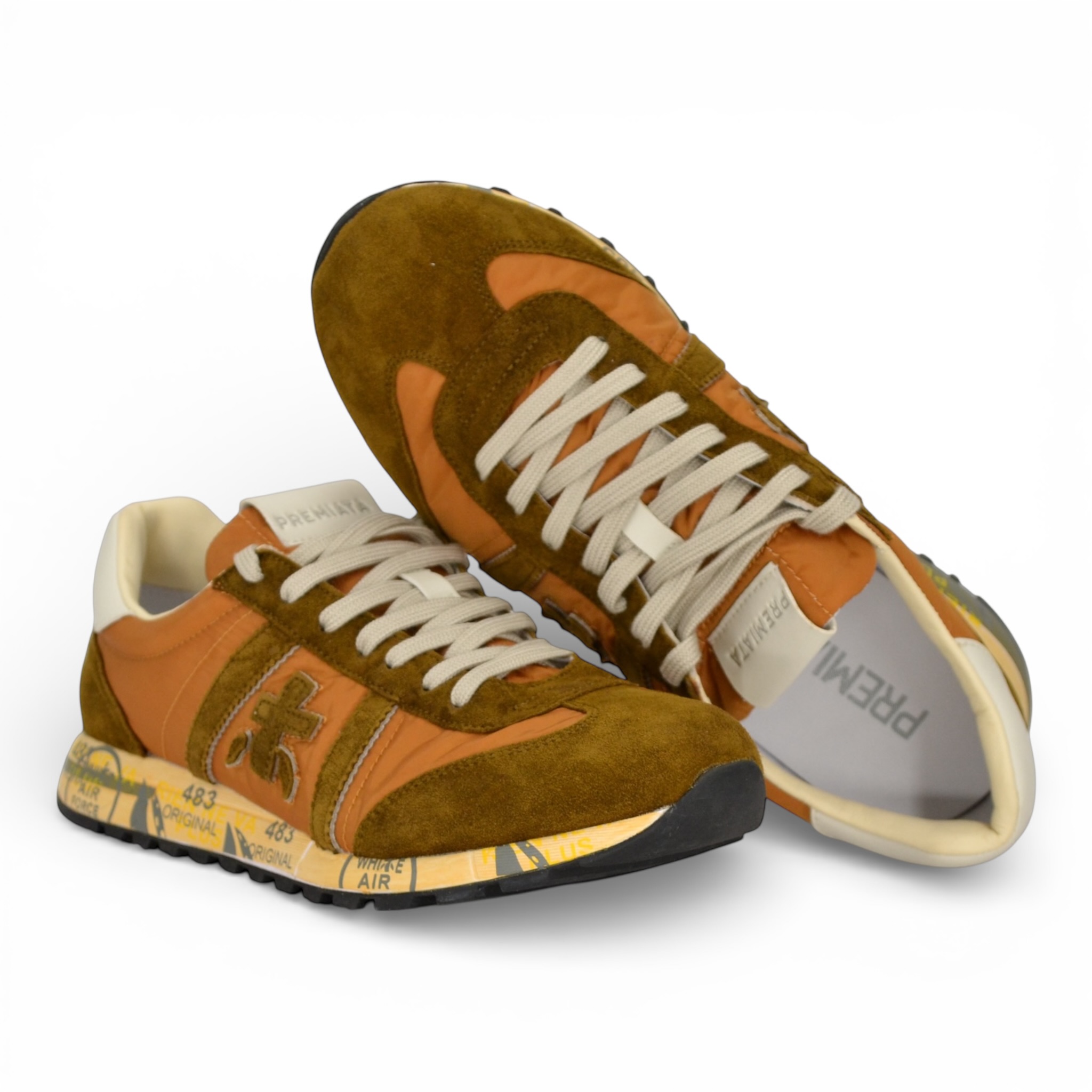 Sneaker Premiata uomo in nylon e camoscio colore cuoio.