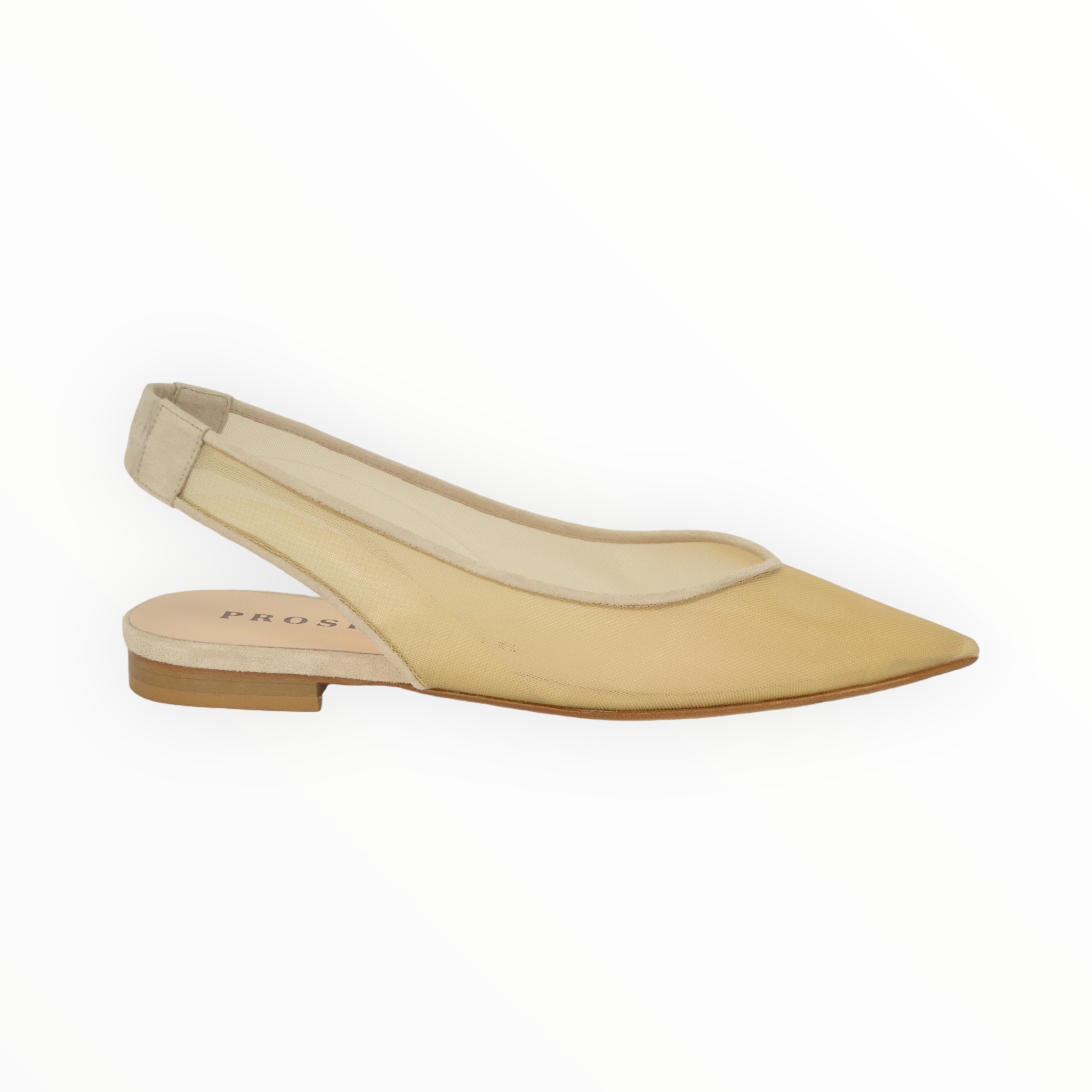 Tomaia in rete, sottopiede in pelle, suola in cuoio, altezza tacco cm.3.