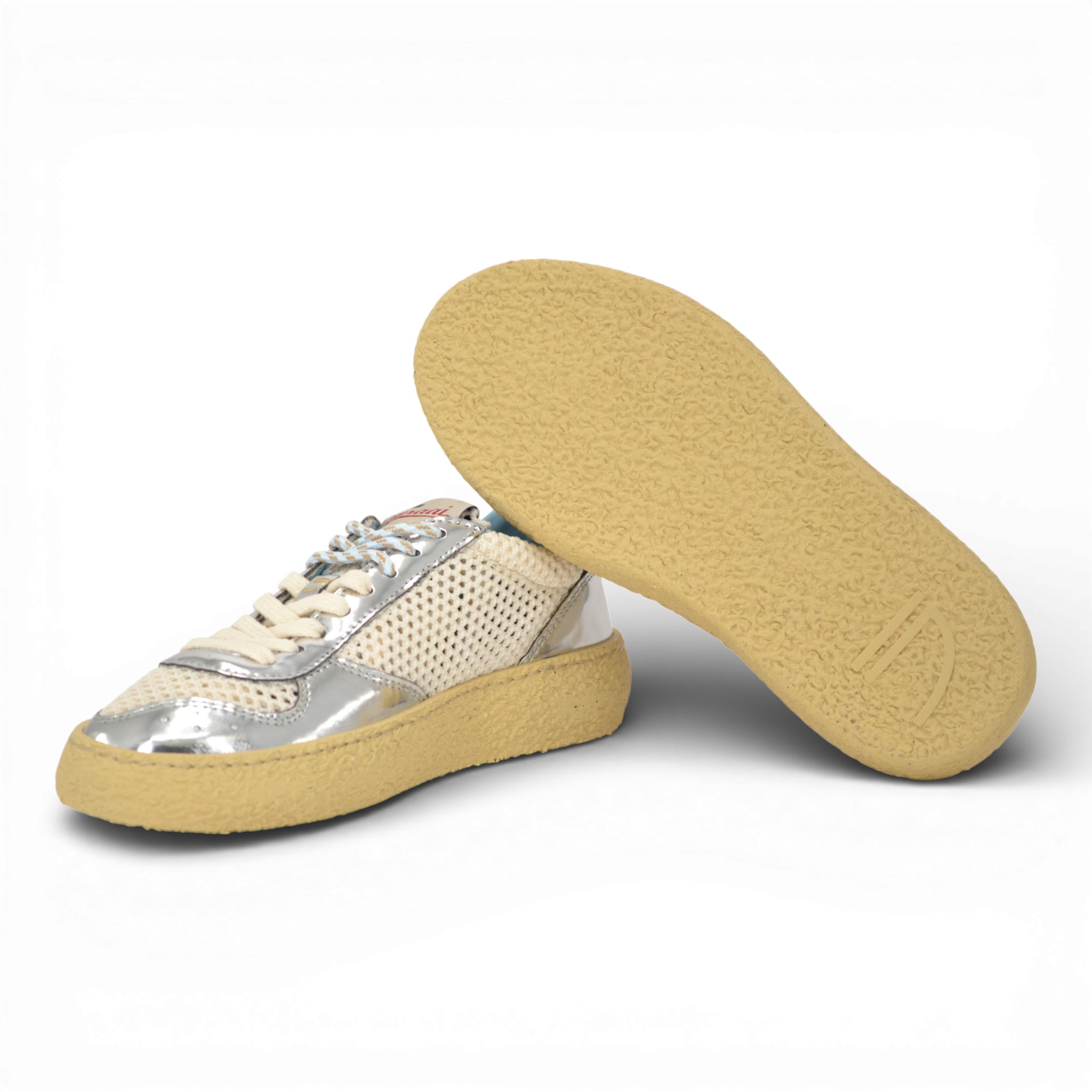 Sneaker Puraai donna in pele laminata e rete colore panna.