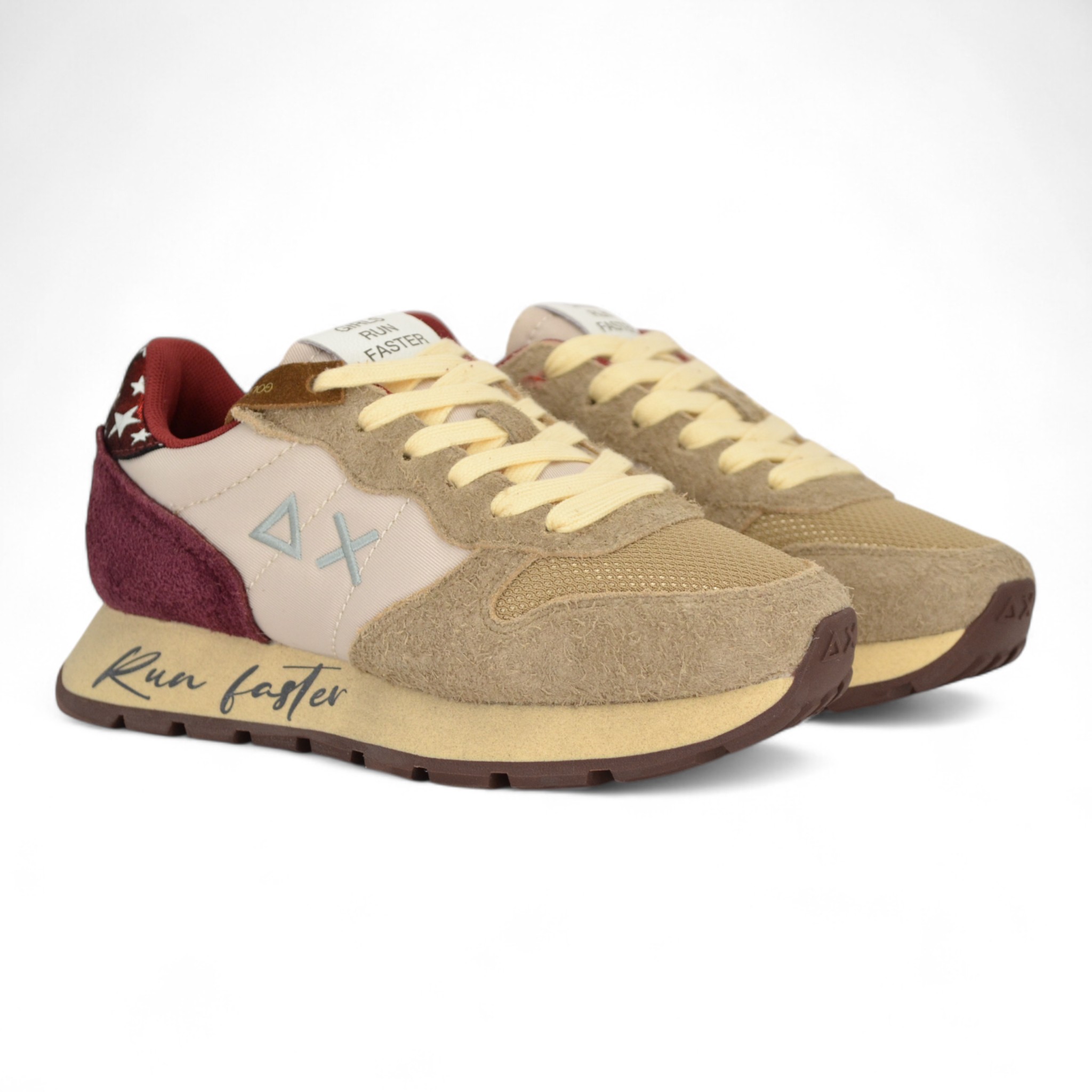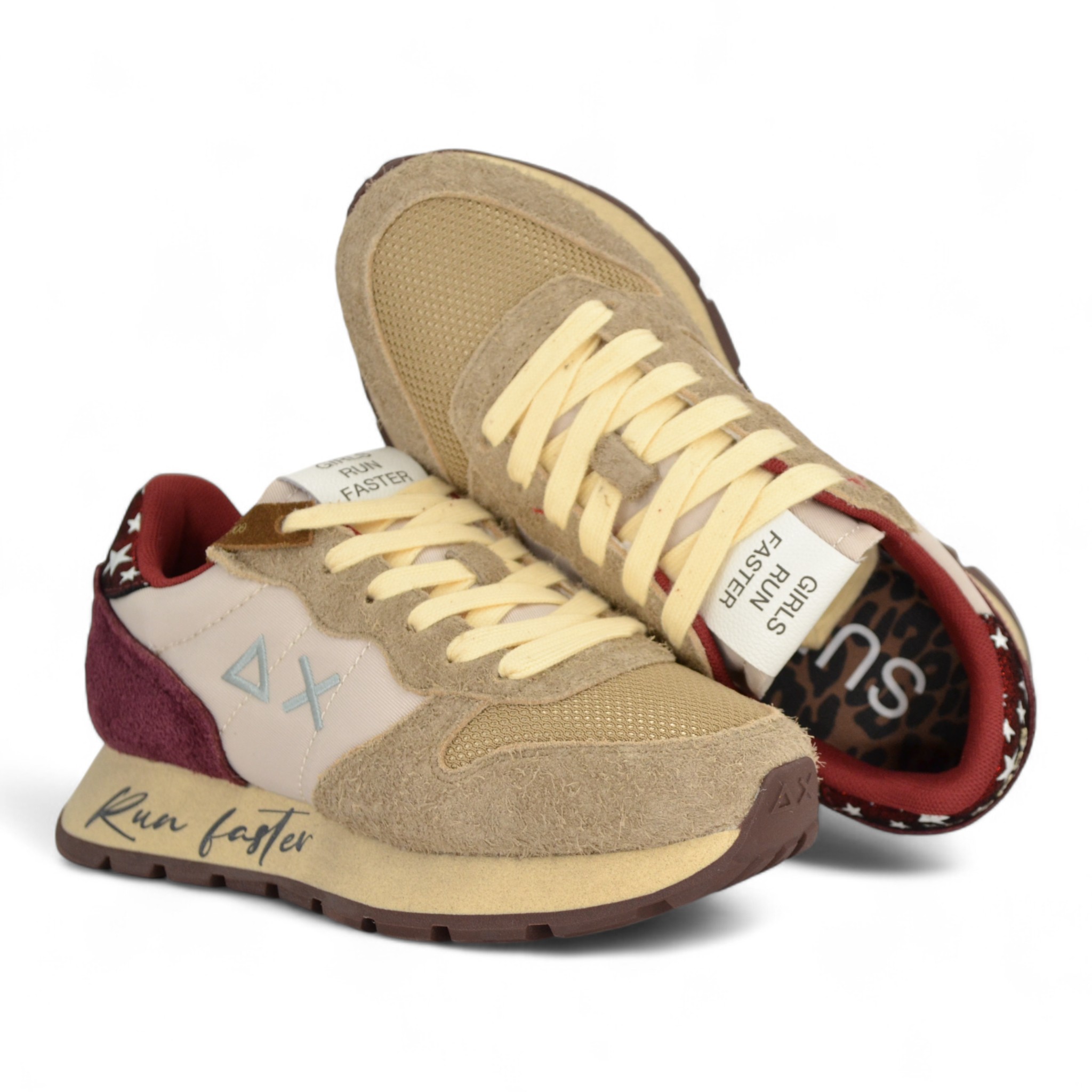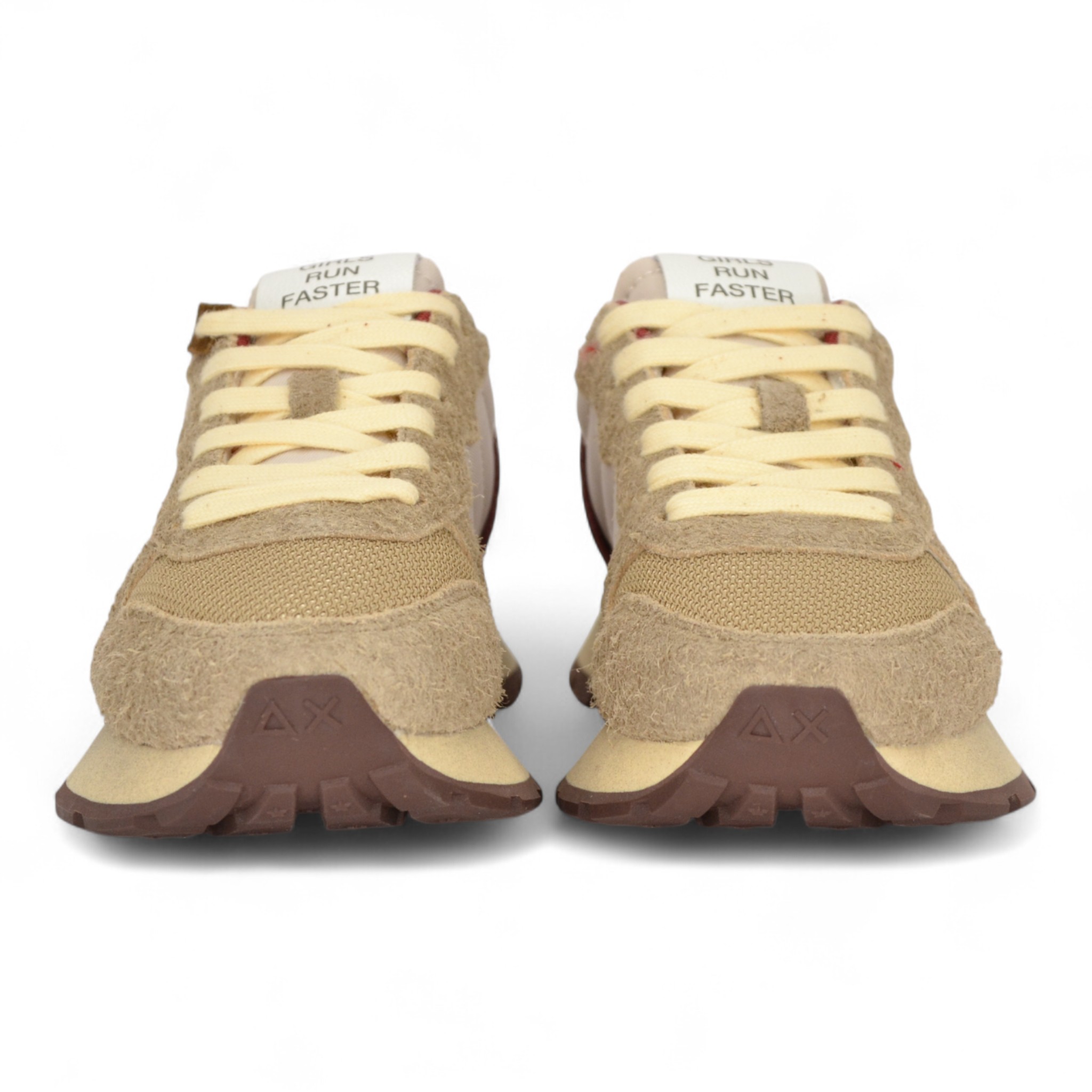 Sneaker donna in camoscio e nylon colore beige.