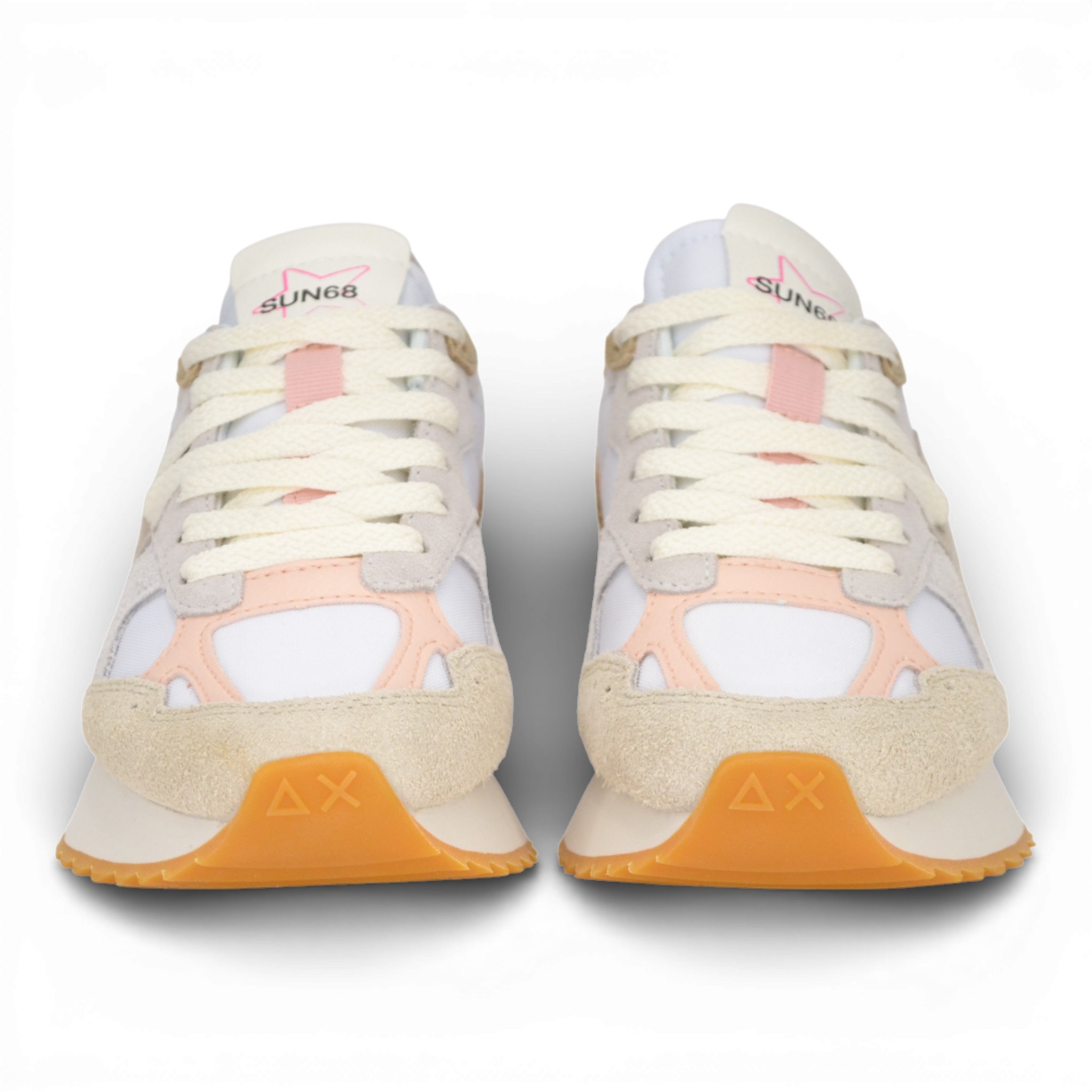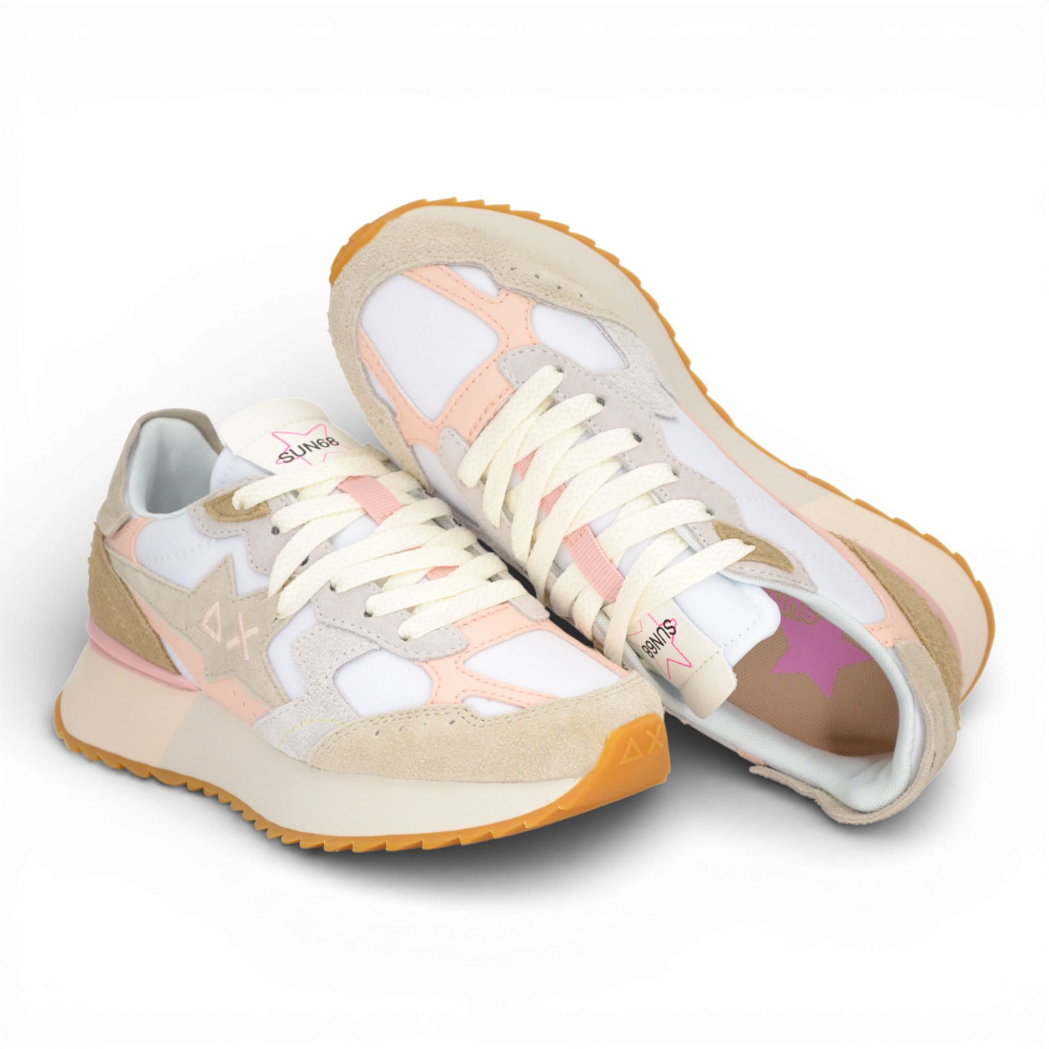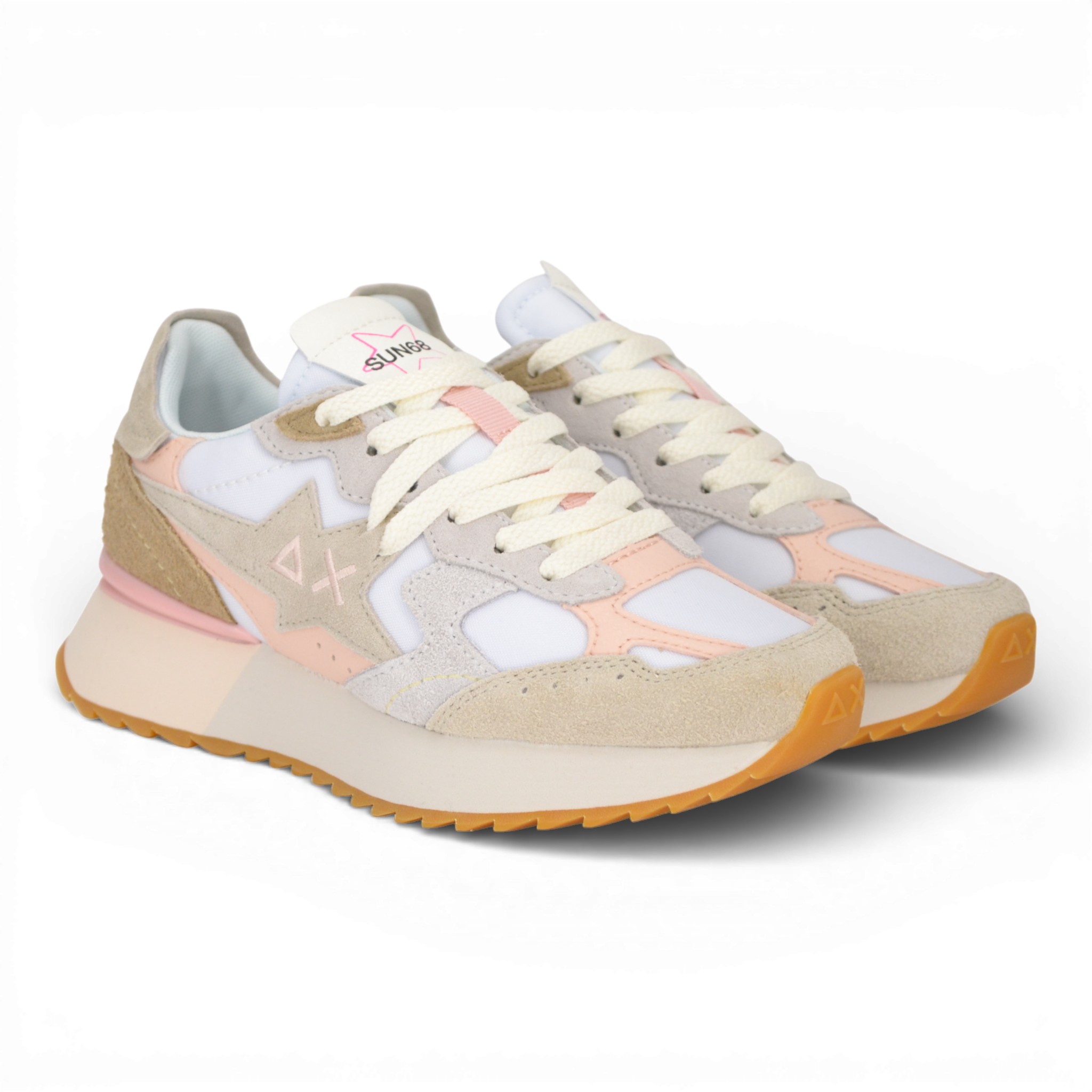 Sneaker donna Sun 68 in tela e camoscio colore bianco.