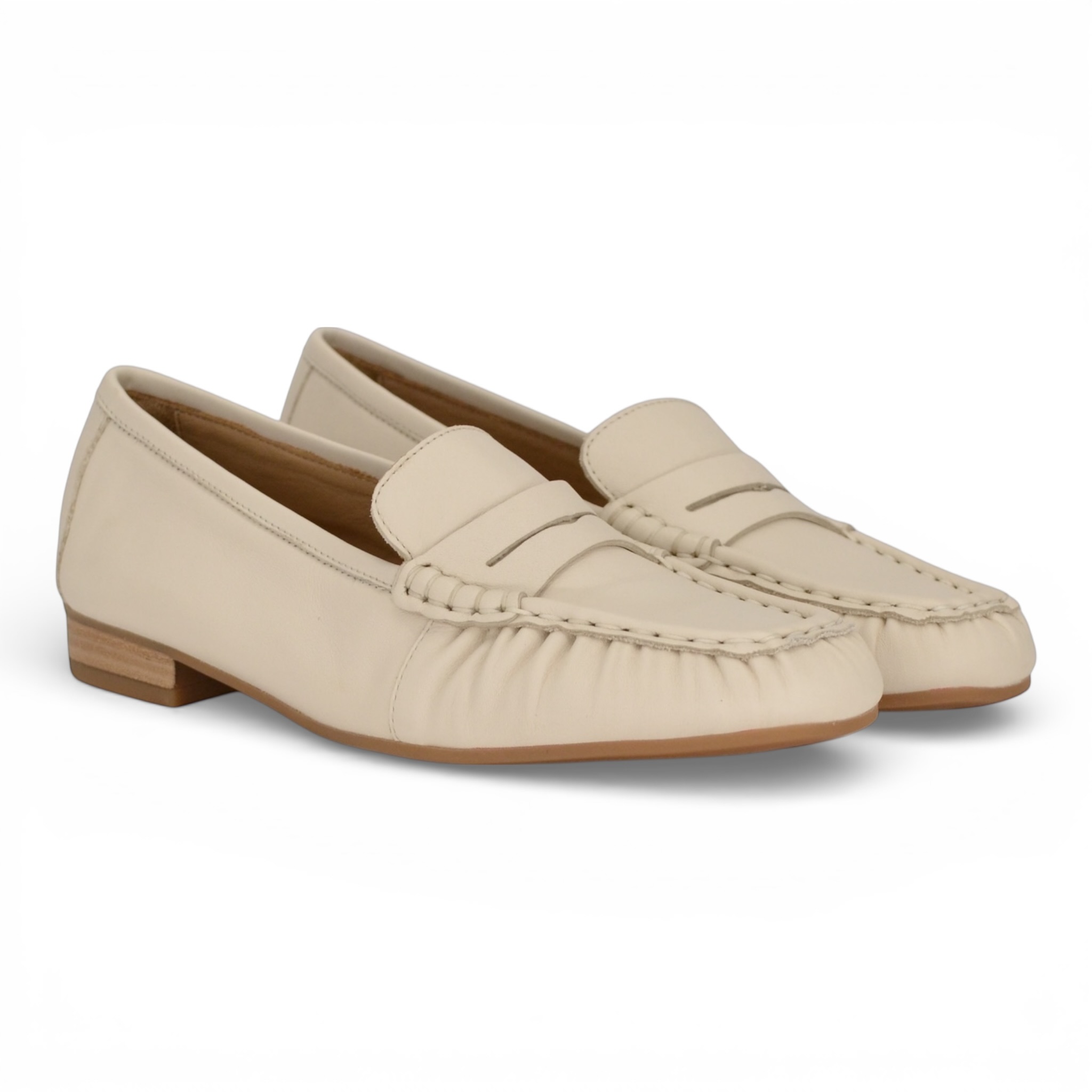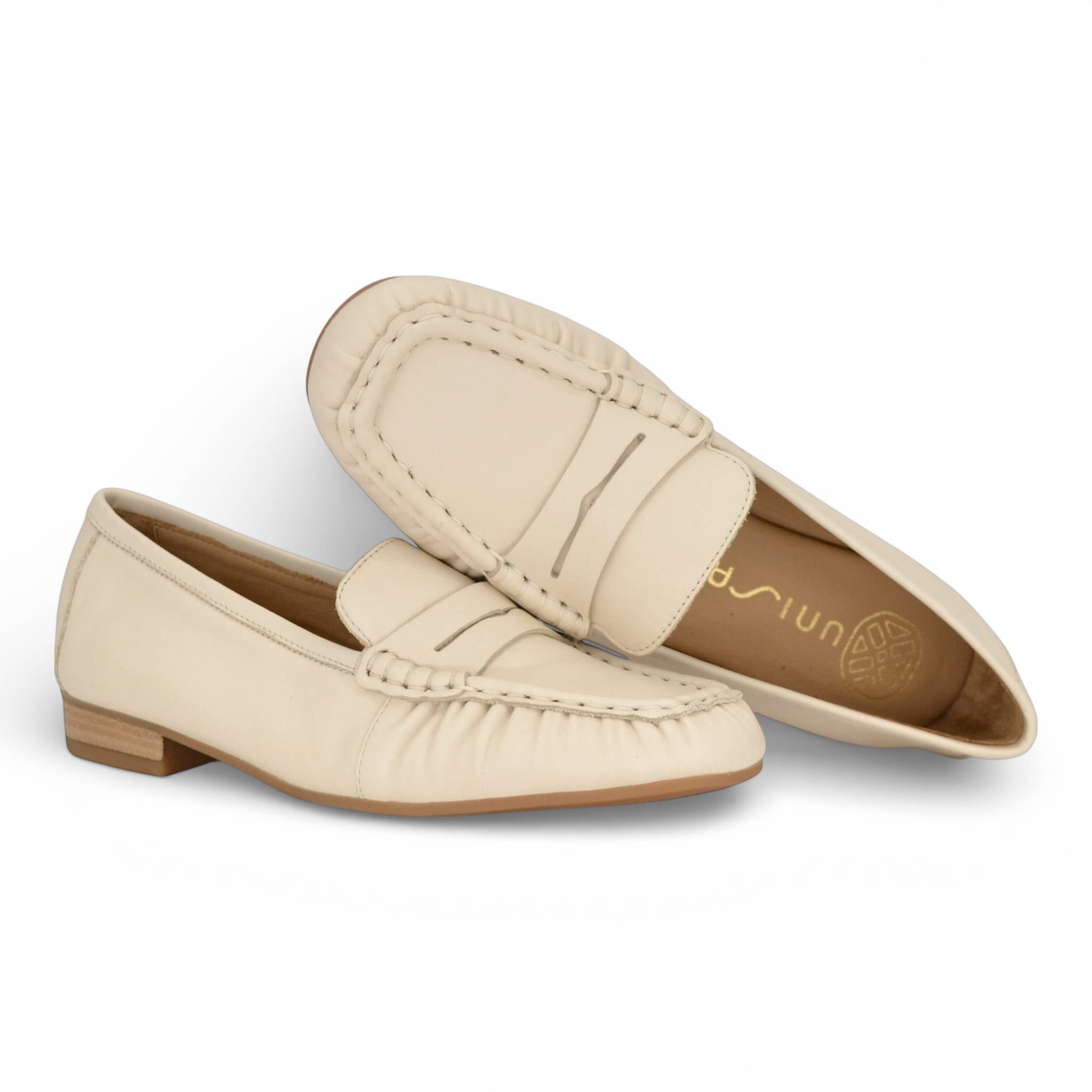 Mocassino donna unisa in pelle colore panna.
