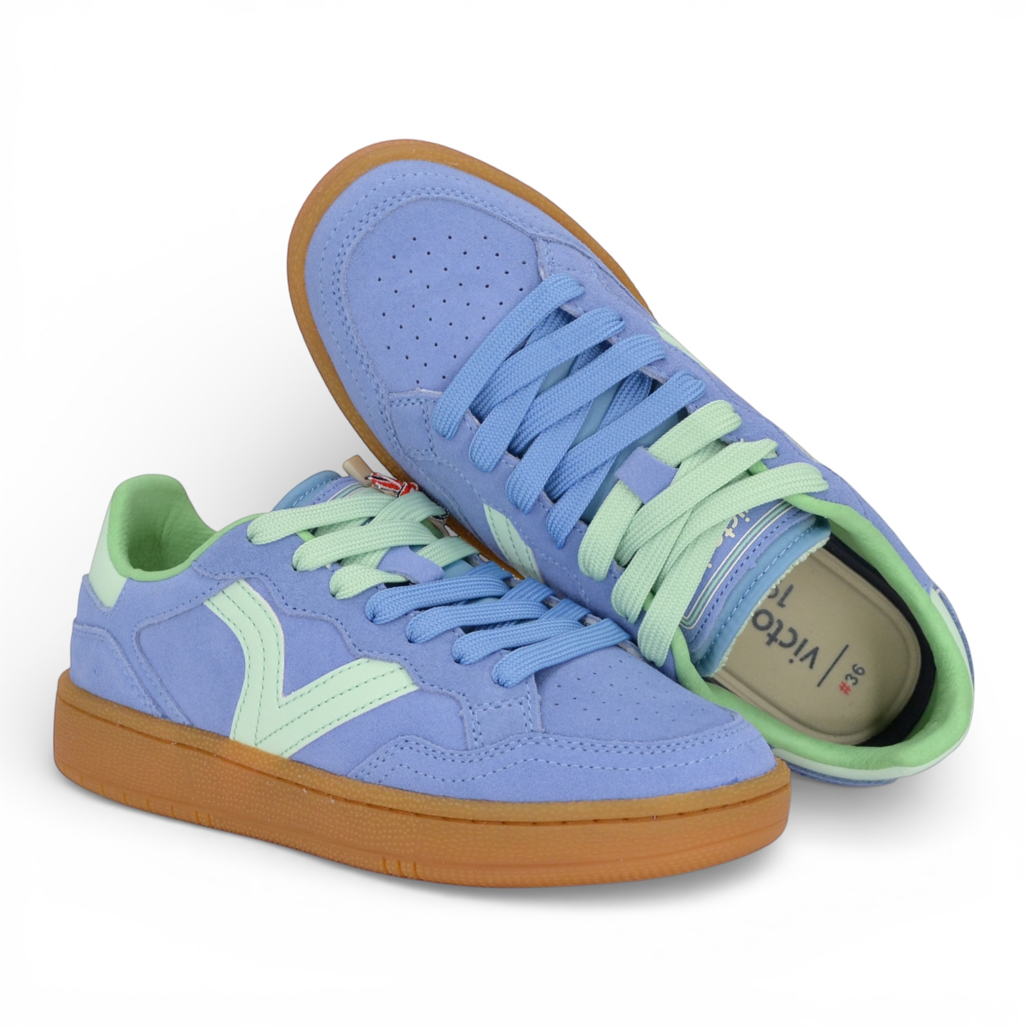 Sneaker donna Victoria in camoscio colore celeste.