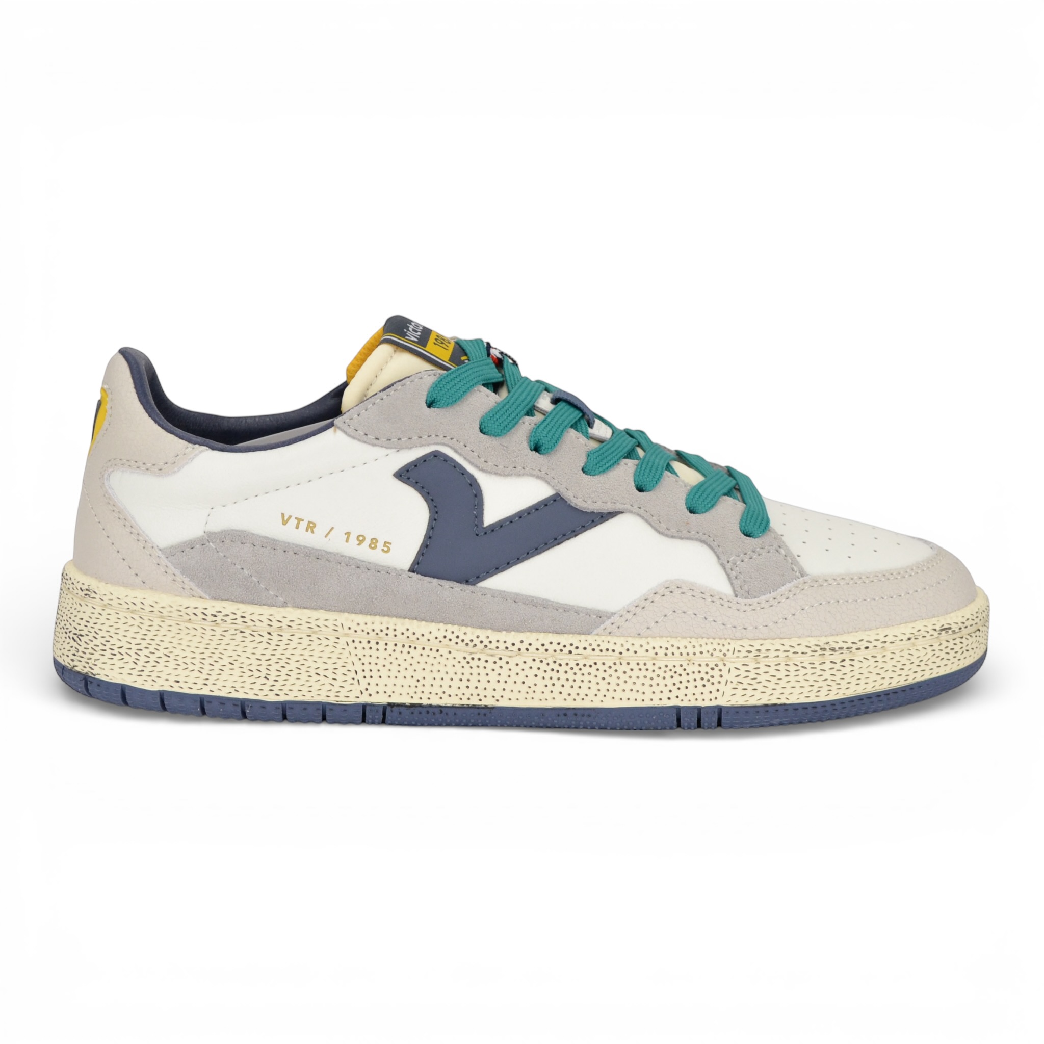 Tomaia in pelle con inserti in camoscio, fodera interna in tessuto plantarino estraibile, suola in gomma, altezza tacco cm.4.