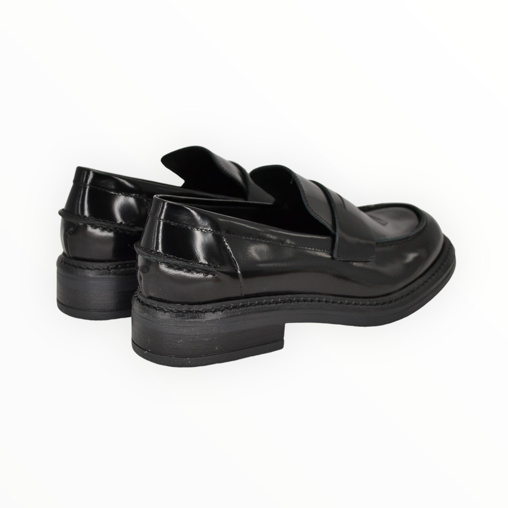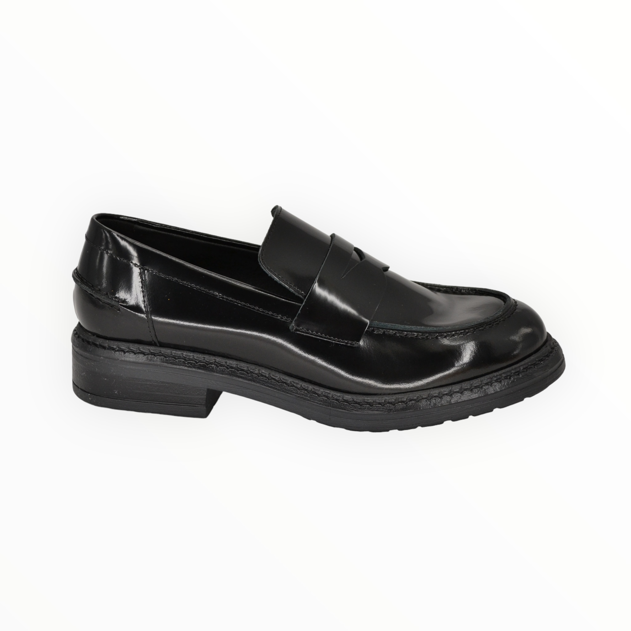 Tomaia in pelle spazzolata, fodera interna e sottopiede in pelle, fondo in gomma, altezza tacco cm.3.
